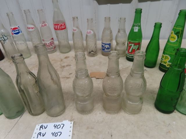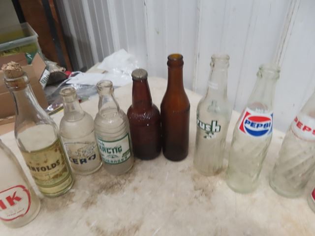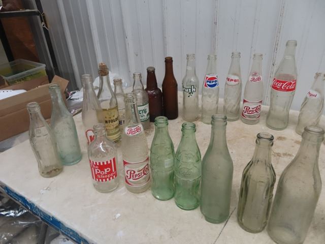 39 Old Pop Bottles; Kik, Zero, Arctic, 7Up, Coke, Pepsi, Crush, plus others