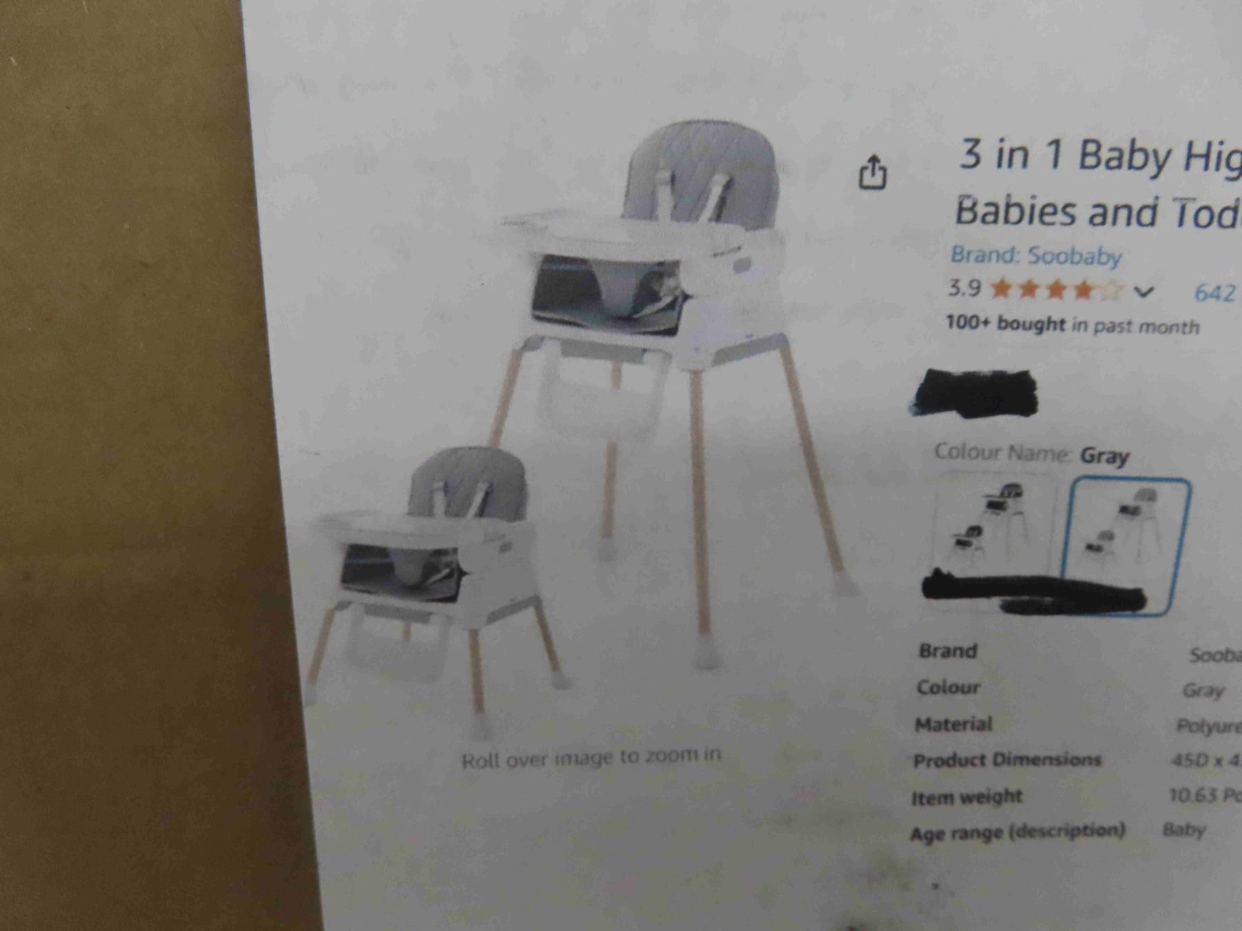 3in1 Baby High Chair Adjustable Convertible Baby High Chairs for Babies and Toddlers (Grey) - New or Store Return