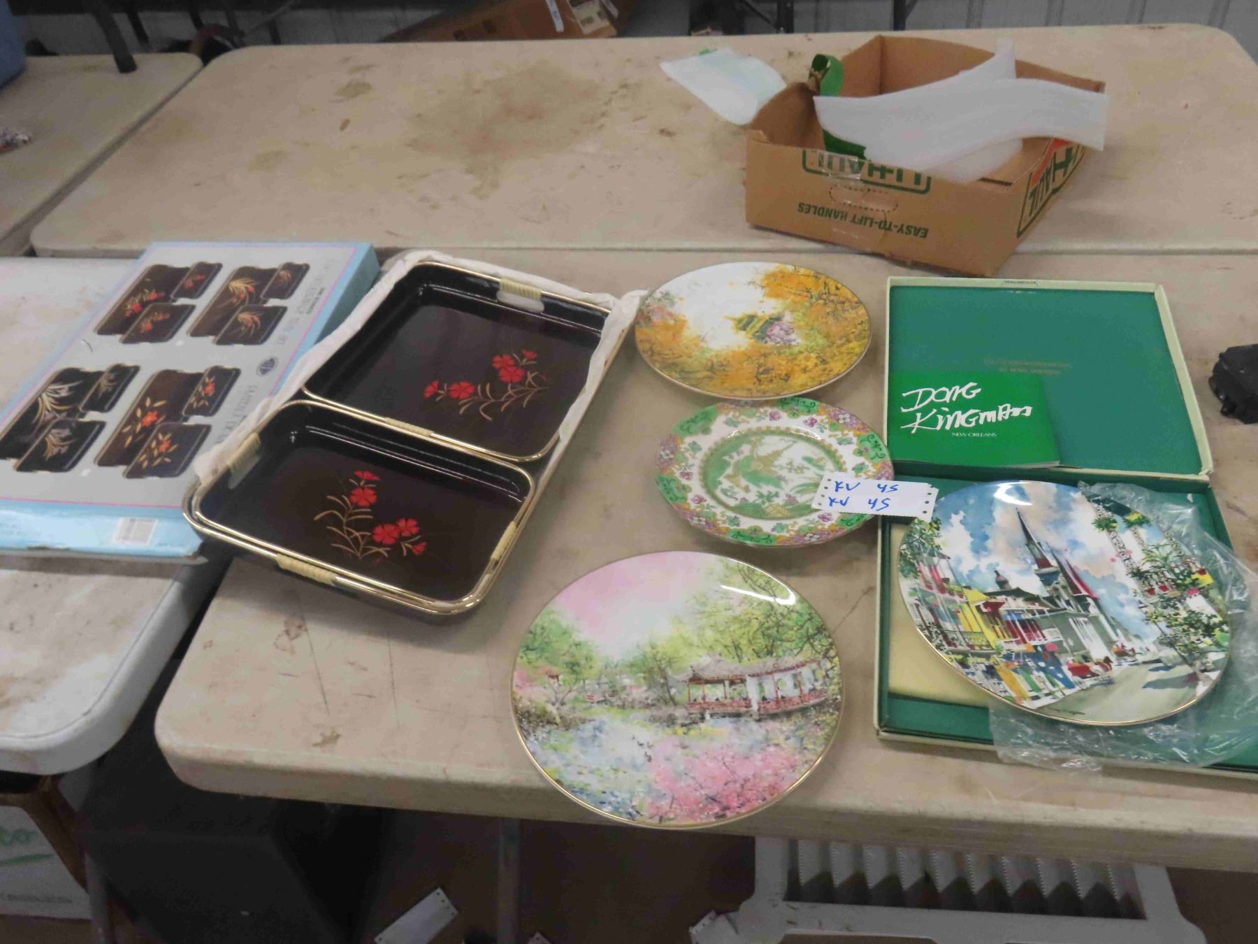 3pc Lacquered Ware Tray Set, 3 Collector Plates, Royal Doulton Plate