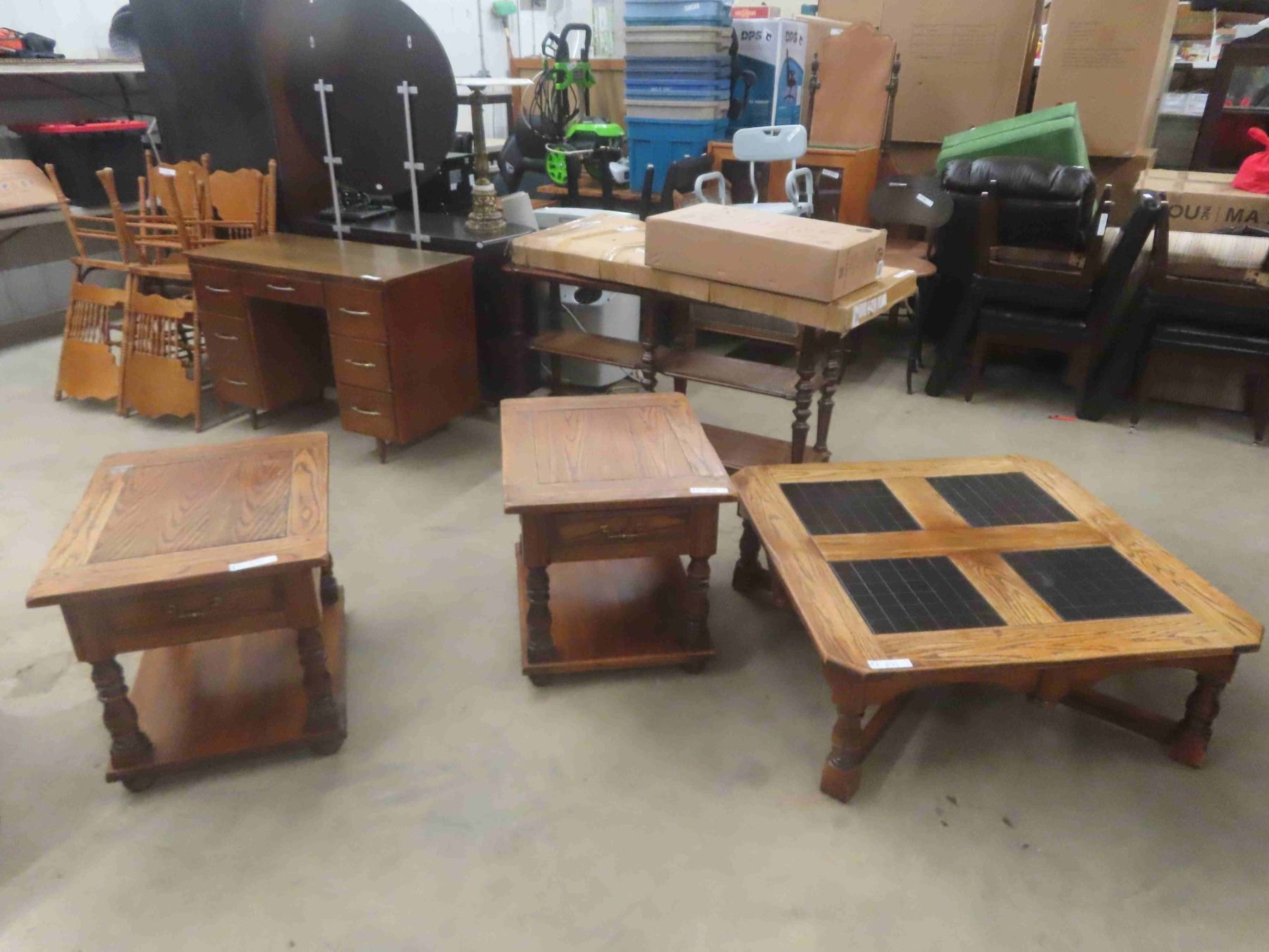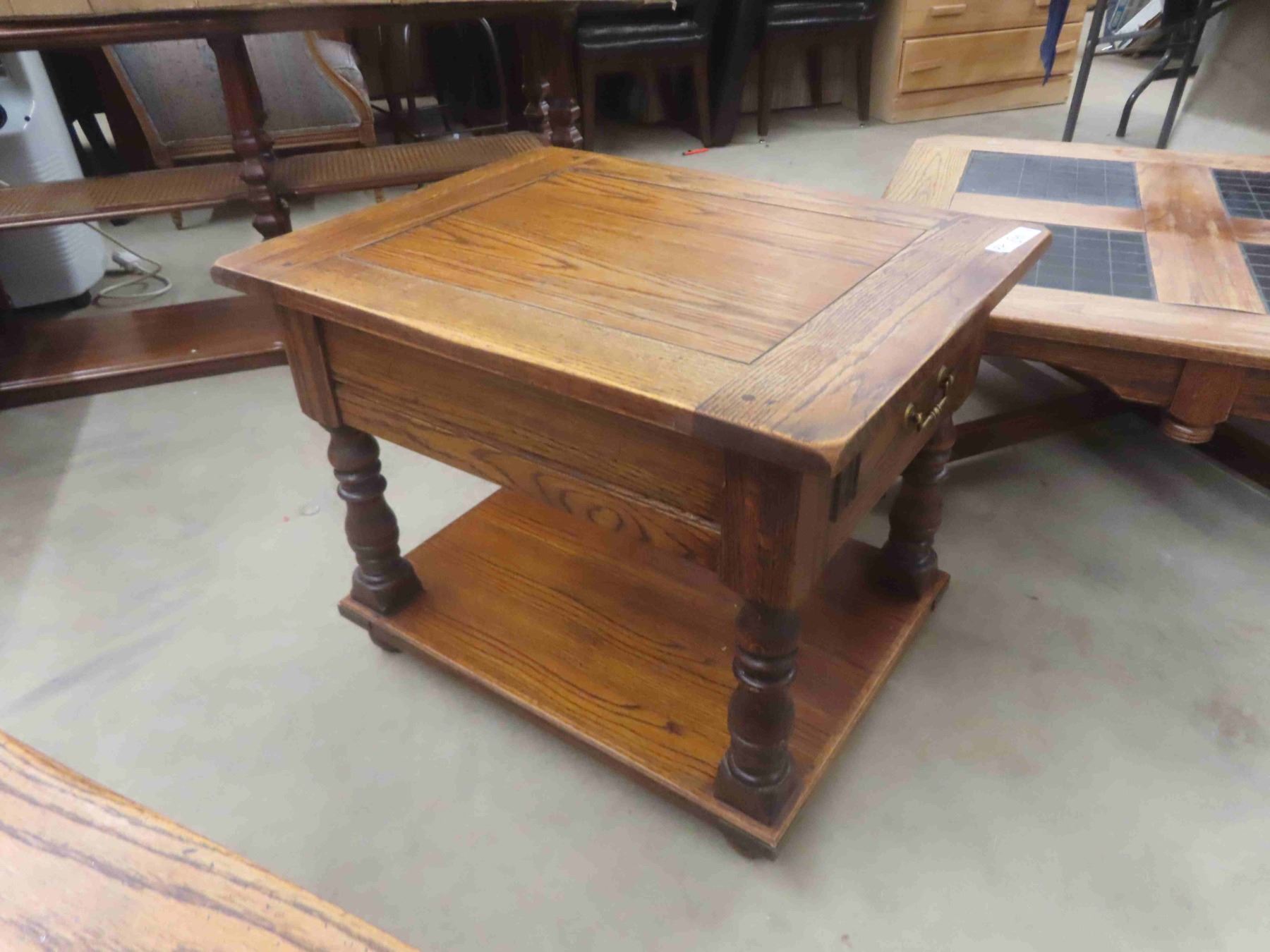 3pc Oak Coffee Table 15" x 40" x 40" & 2 End Tables 22" x 22" x 28"