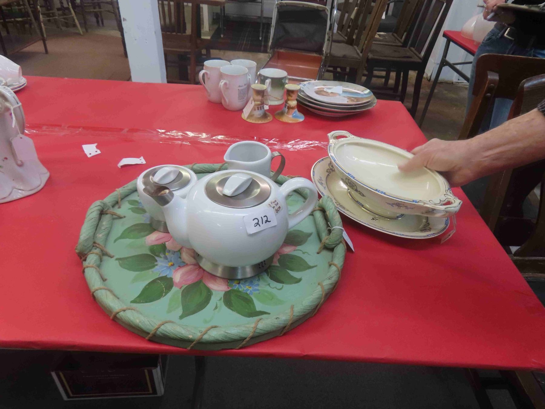 3pc Tea Set + Hand Painted Tray & Platter + Bowl