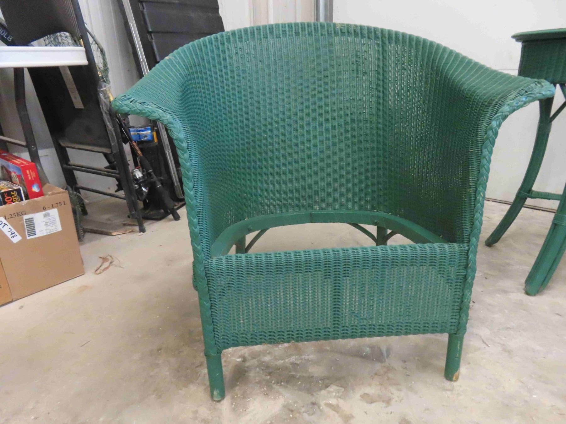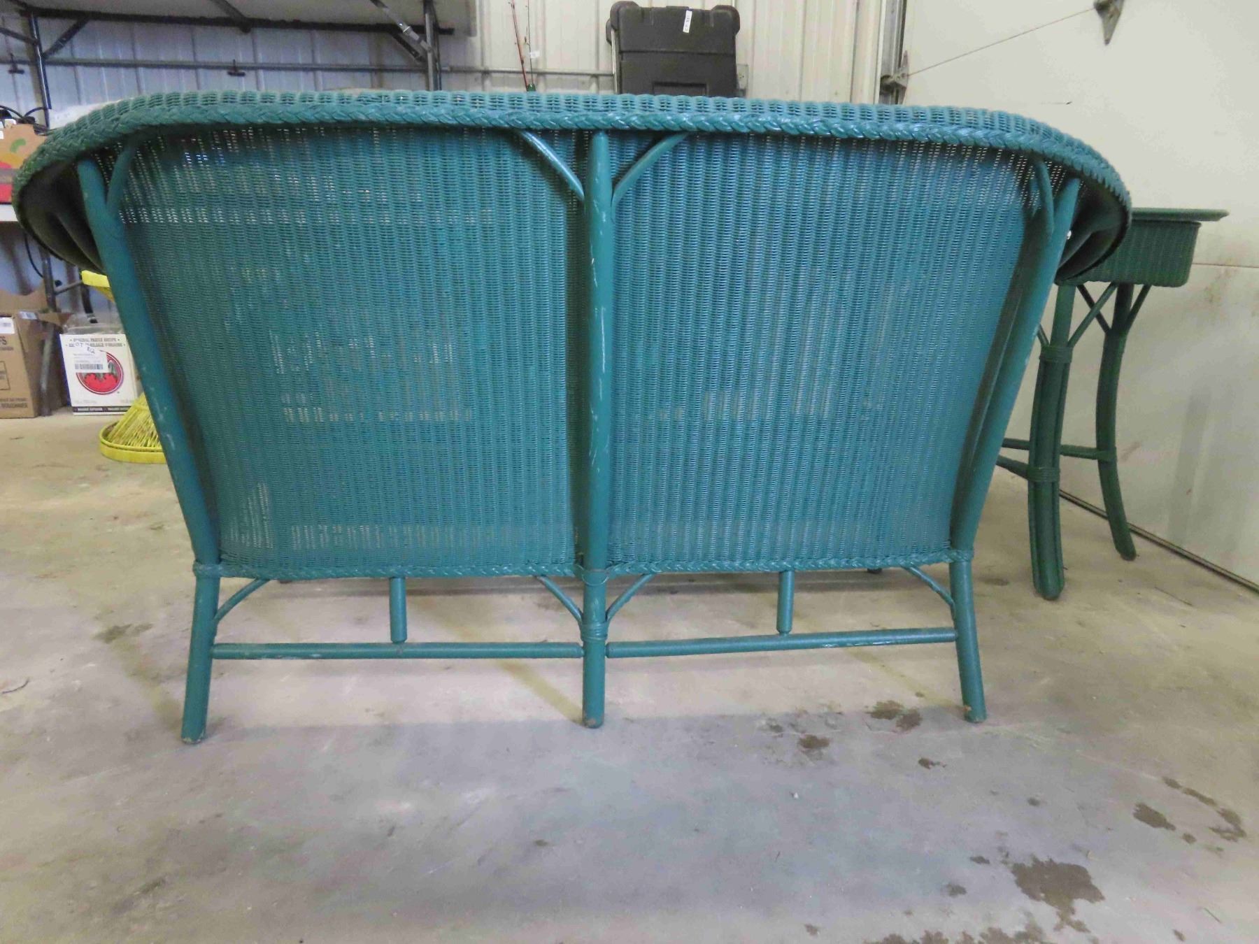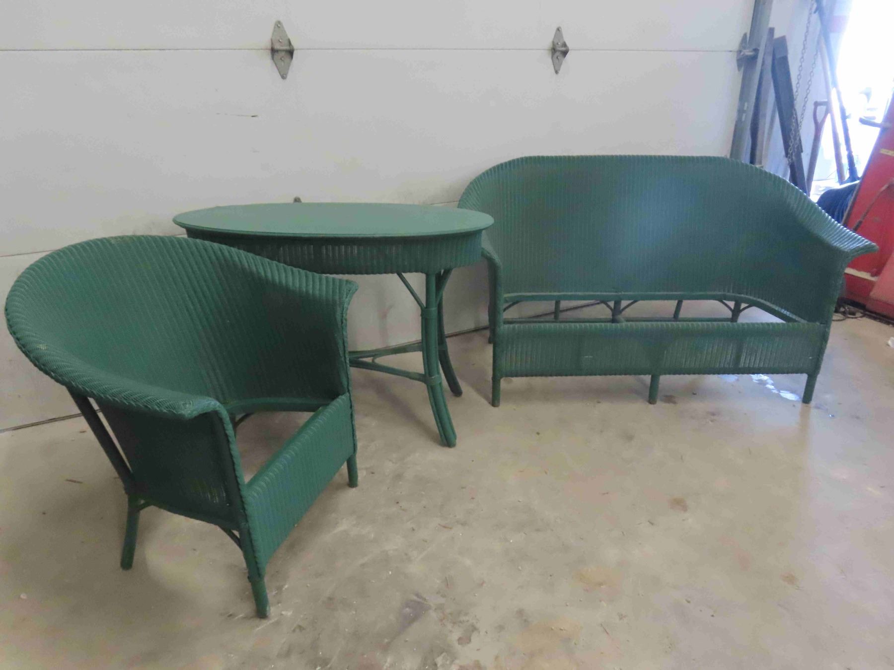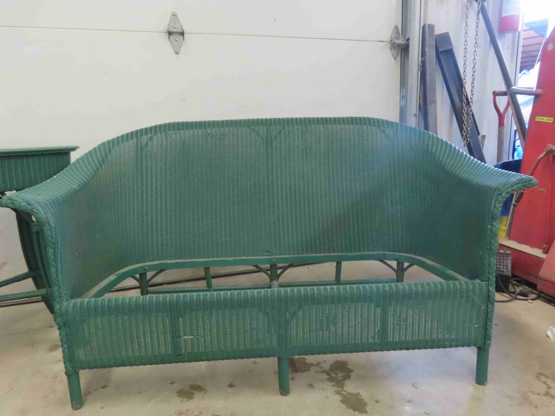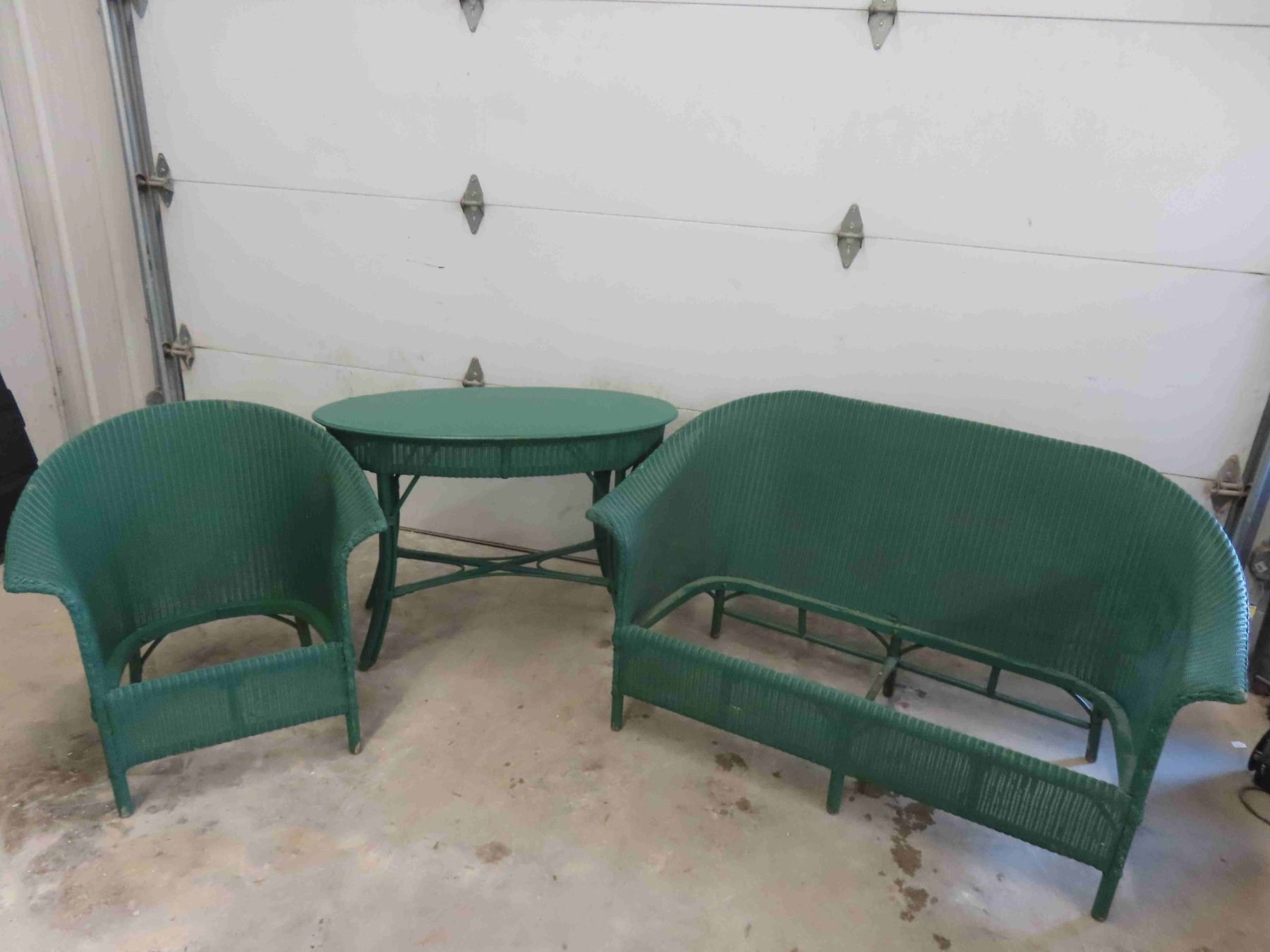 3pc Wicker Set ; Love Seat 29" x 32" x 57"pl, Chair & Sofa Table 18.5" x 29" x 41" - both missing Seat Support + Cushions