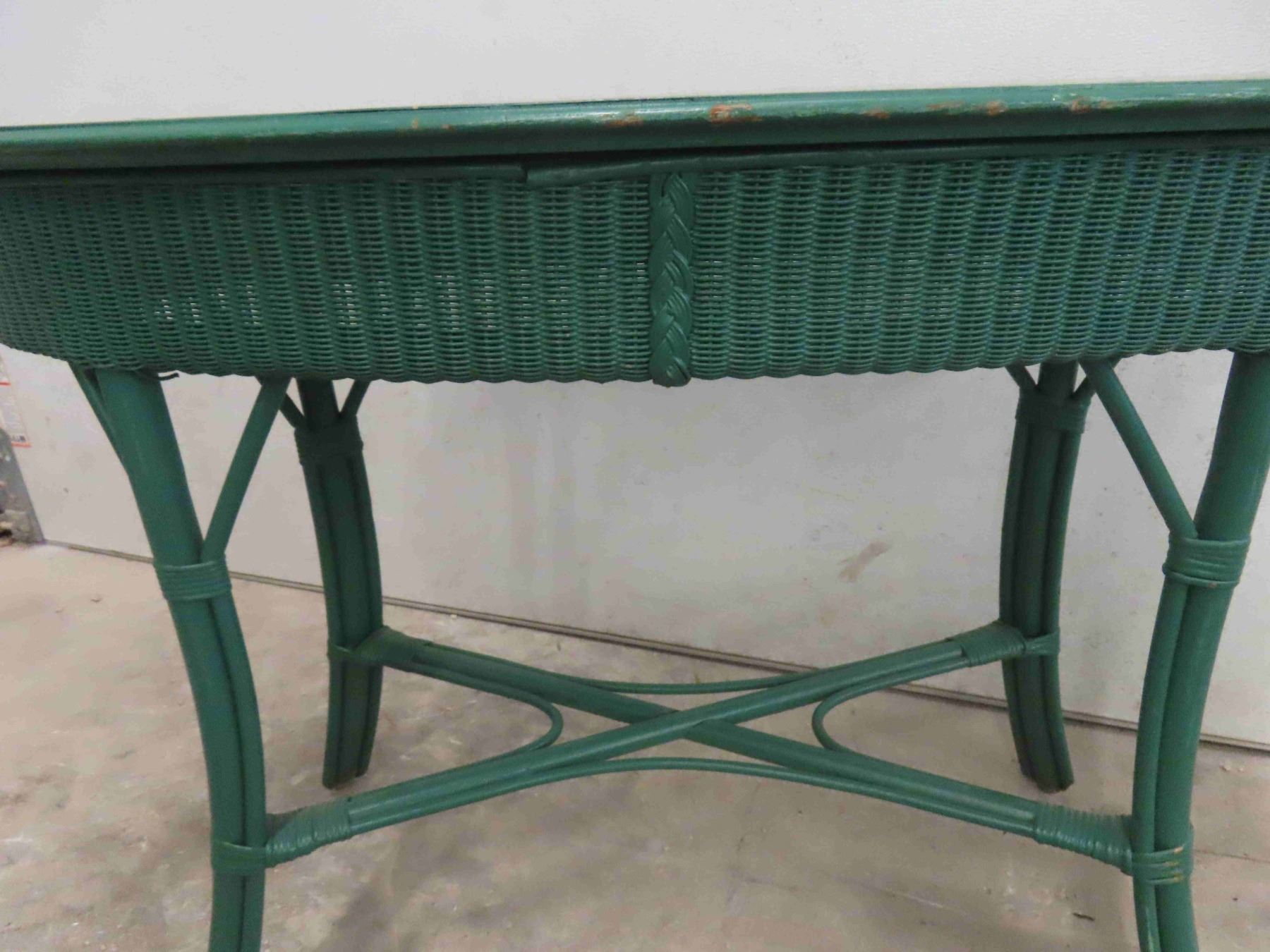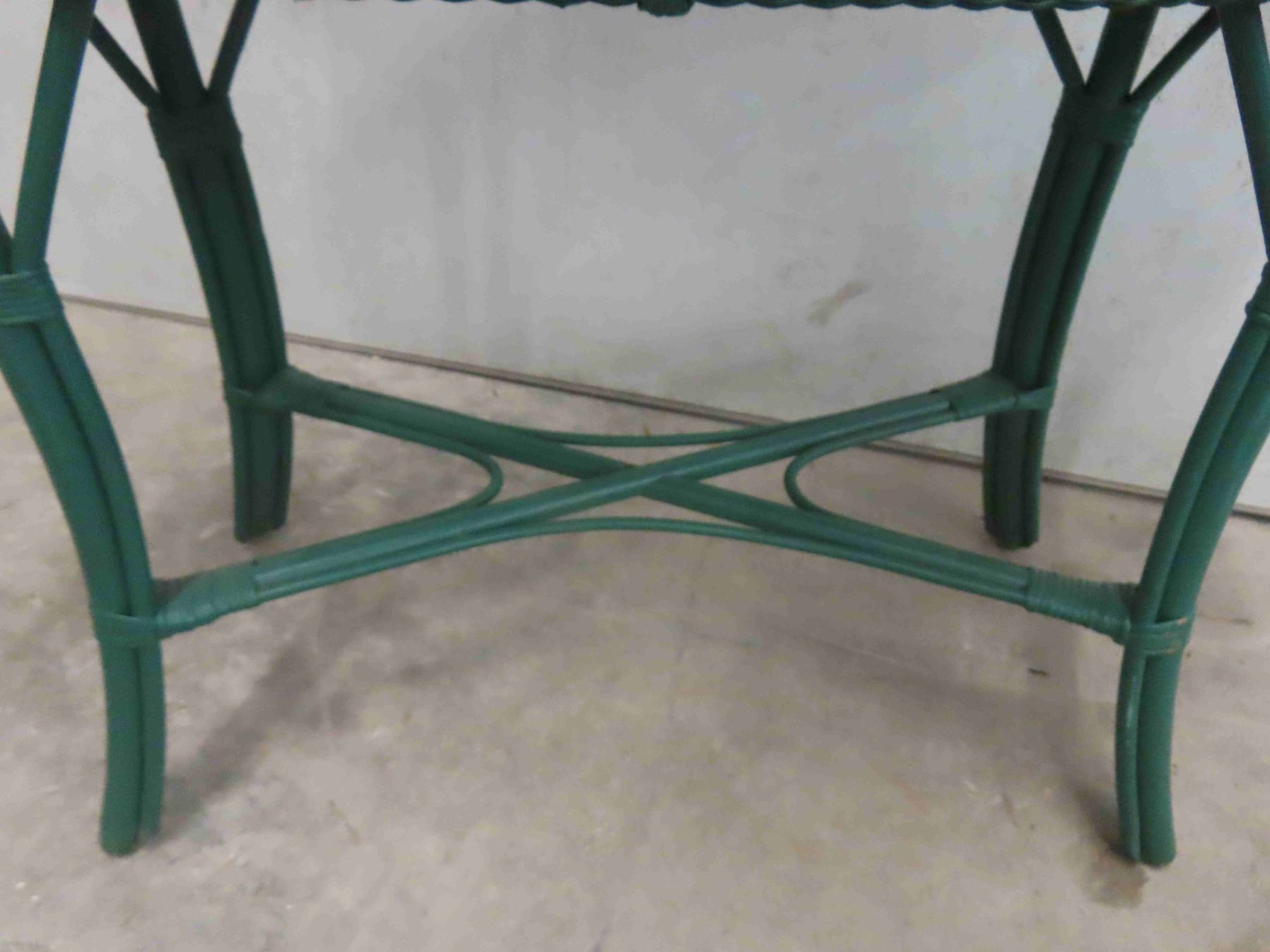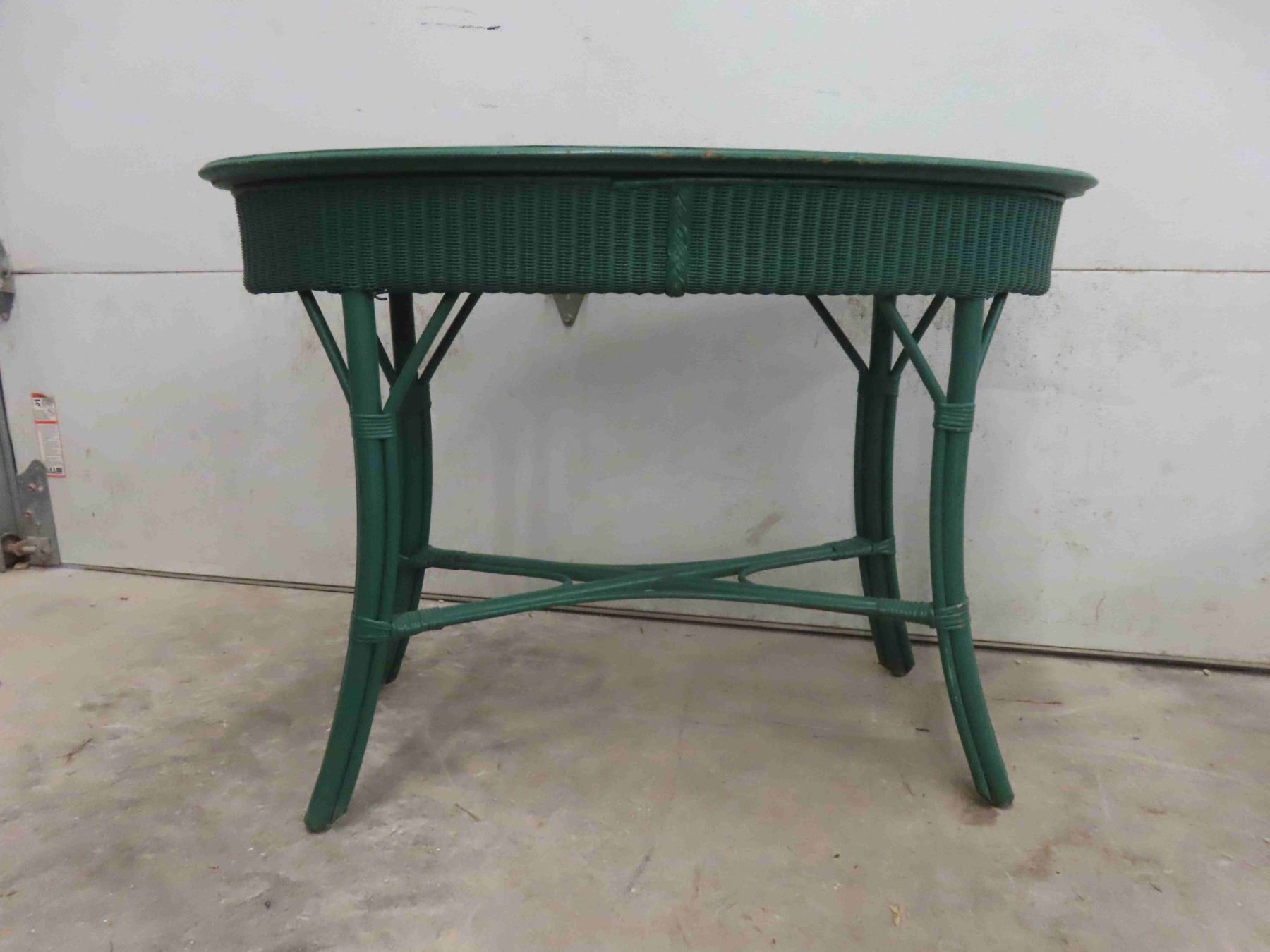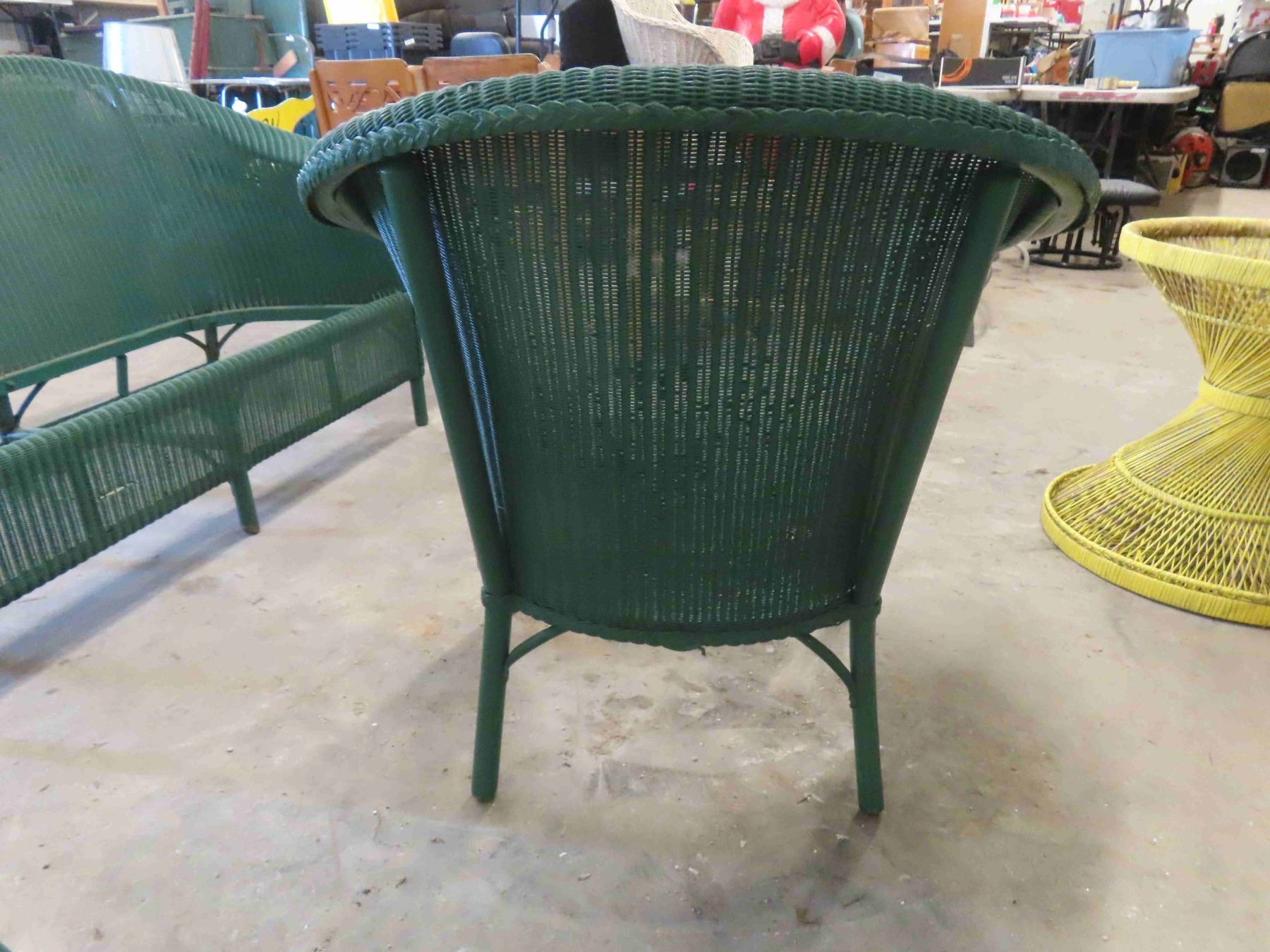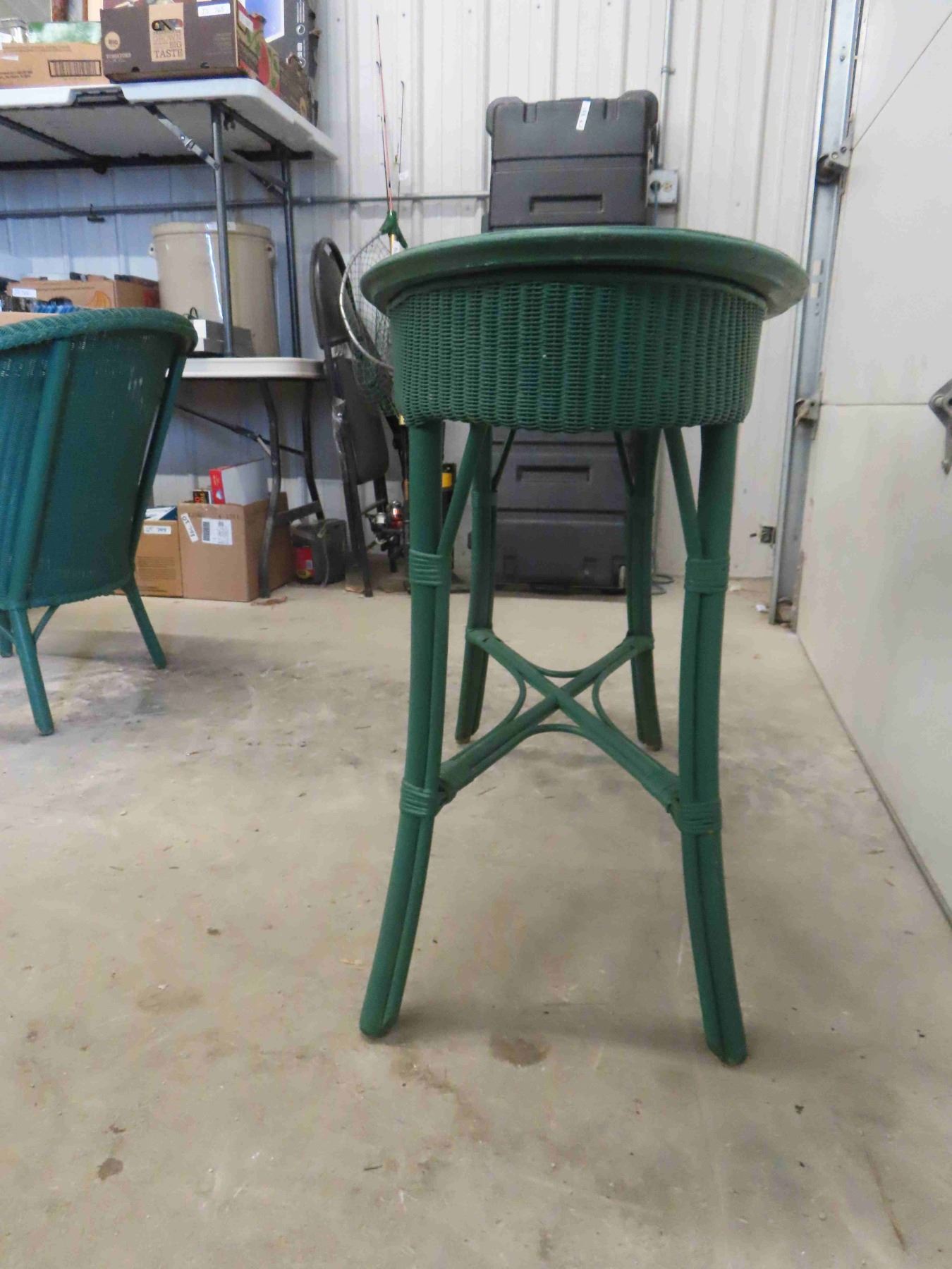 3pc Wicker Set ; Love Seat 29" x 32" x 57"pl, Chair & Sofa Table 18.5" x 29" x 41" - both missing Seat Support + Cushions
