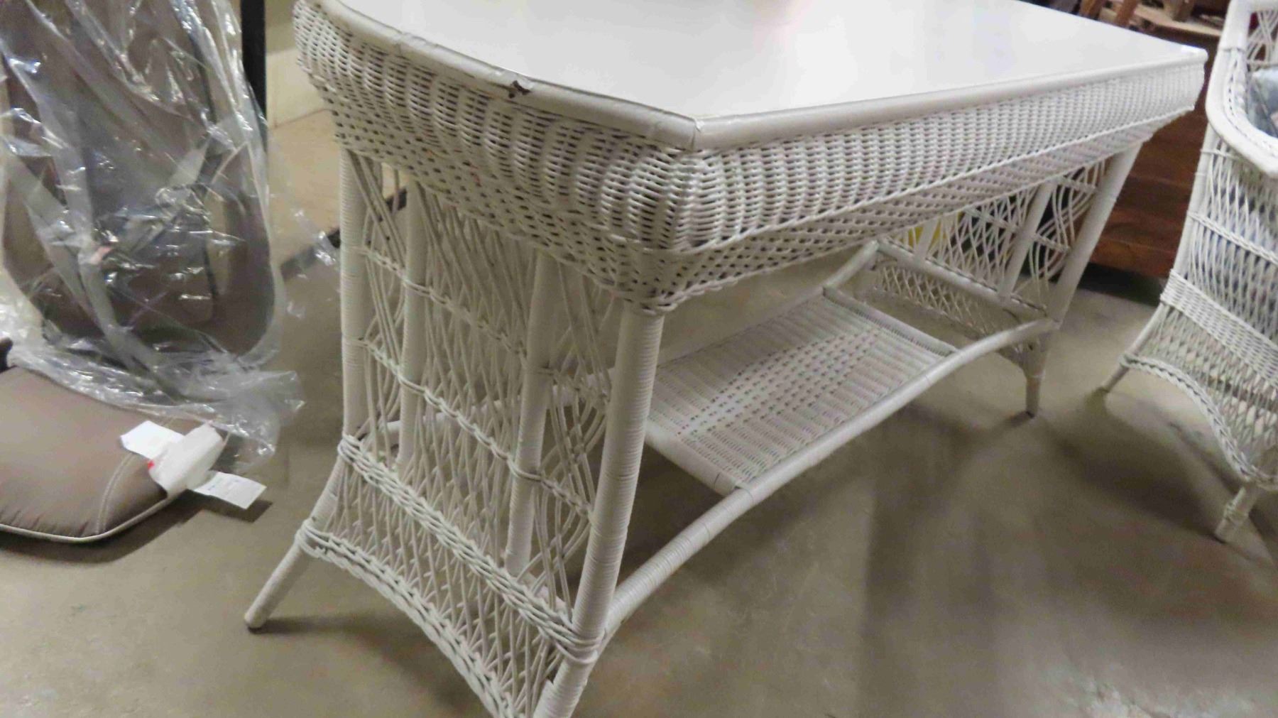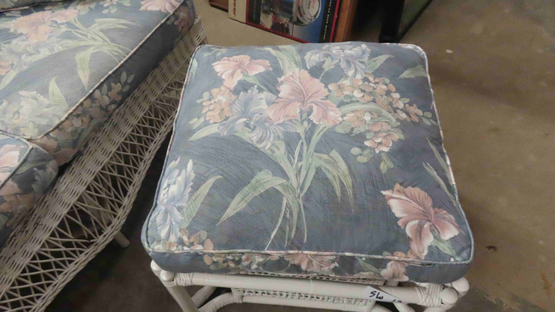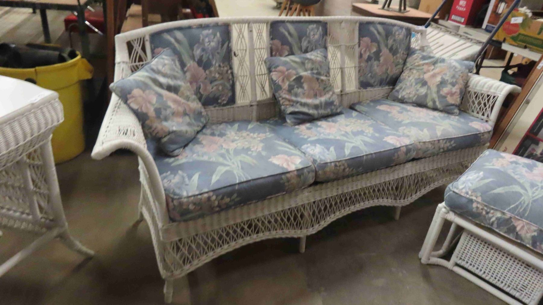 3pc Wicker Sunroom Furniture ; Settee 84" Wide, Ottoman, Stand 19" x 30" x 56"