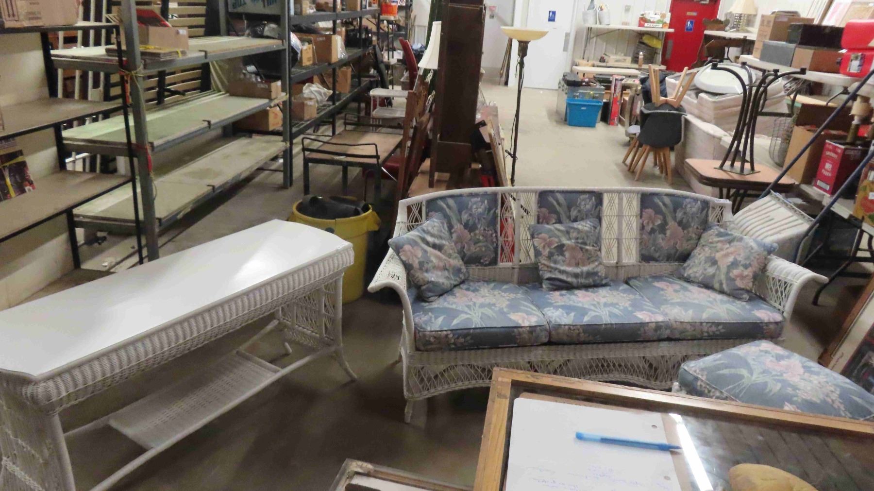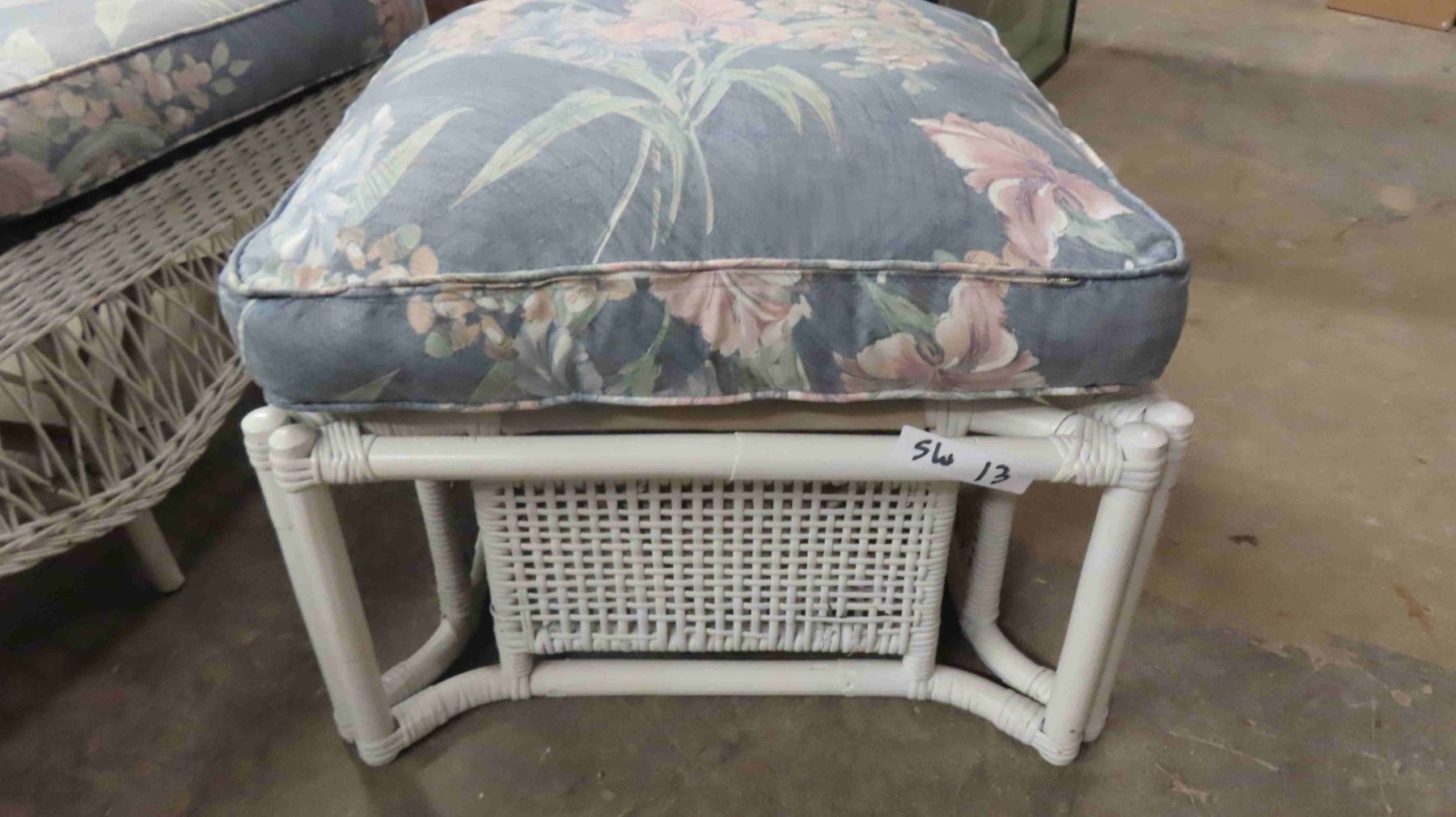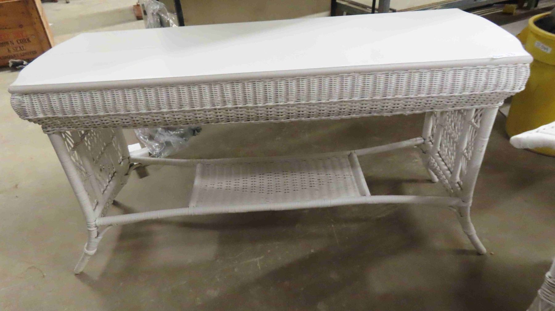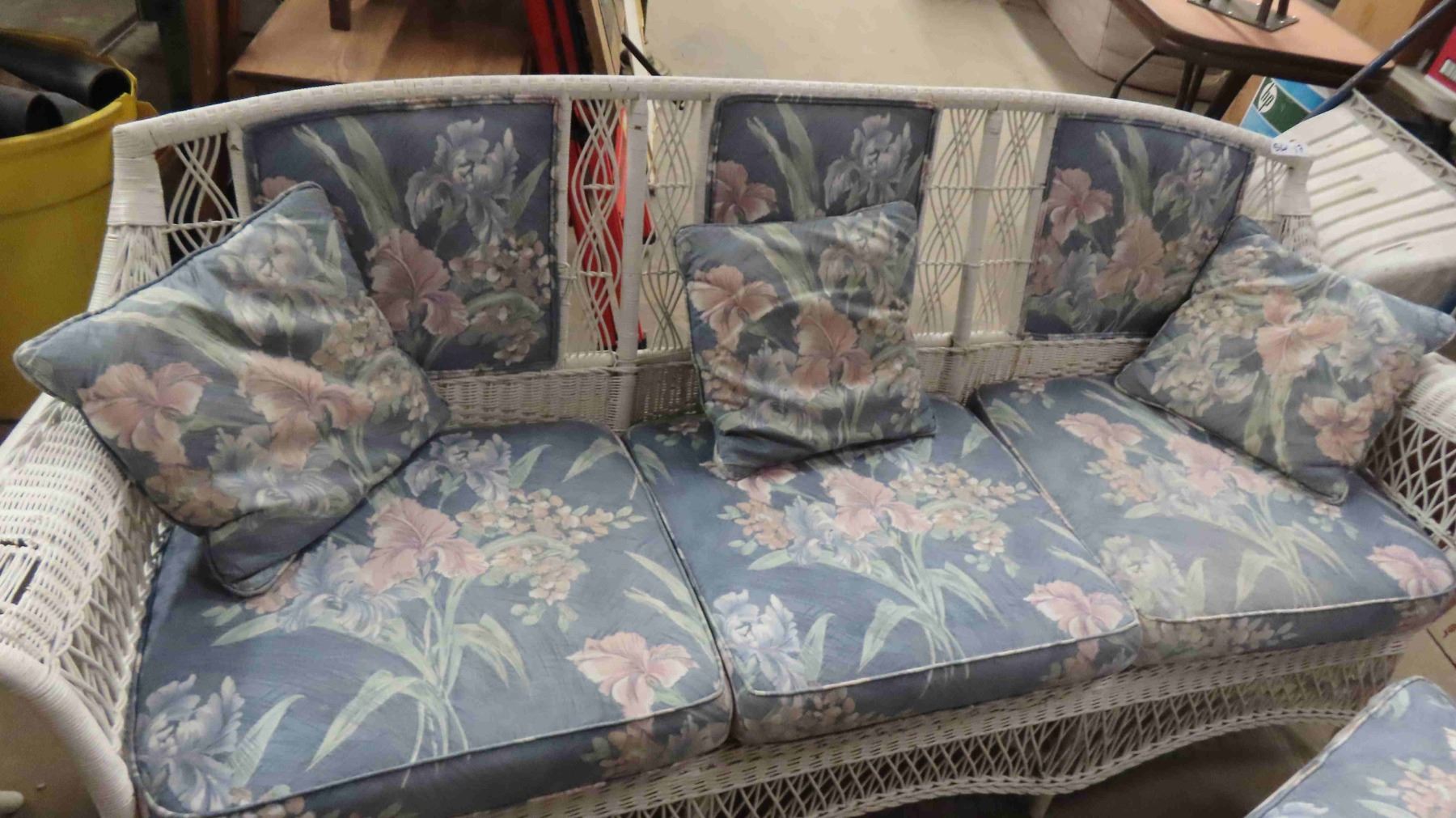 3pc Wicker Sunroom Furniture ; Settee 84" Wide, Ottoman, Stand 19" x 30" x 56"