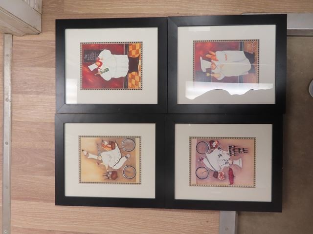 4- 12.5" x 15" Framed Chef Pictures By Jennifer Garant (Have Info Cards on Back of Each)