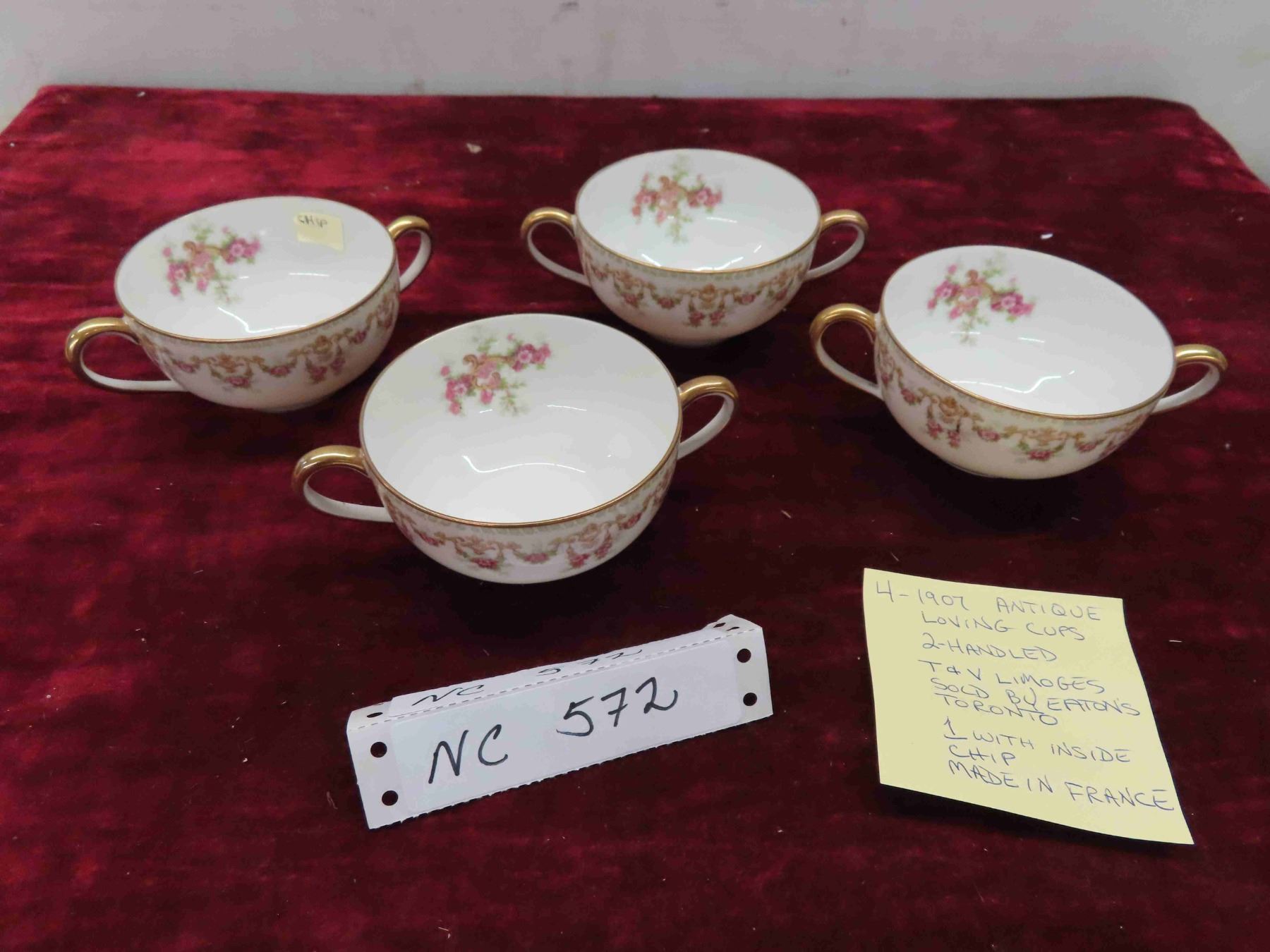 (4) 1907 Antique 2 Handle Loving Cups - T&V Limoges Sold Ateations , 1 Has Chip