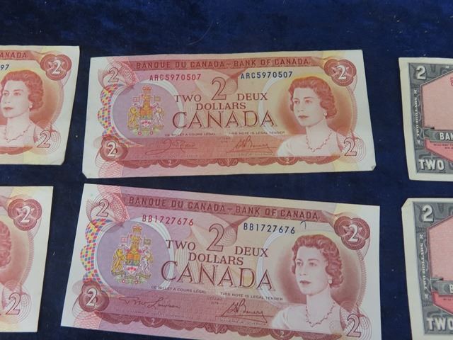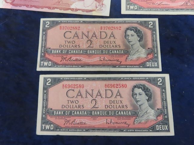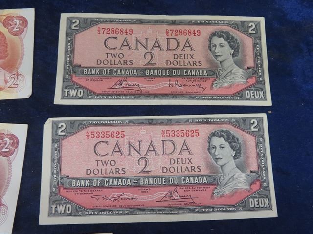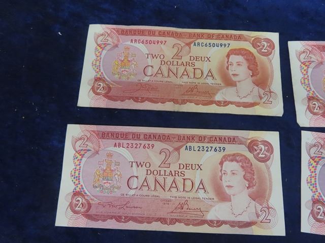 4-1954 Canadian $2 Bills & 2 -1974 $2 Bills