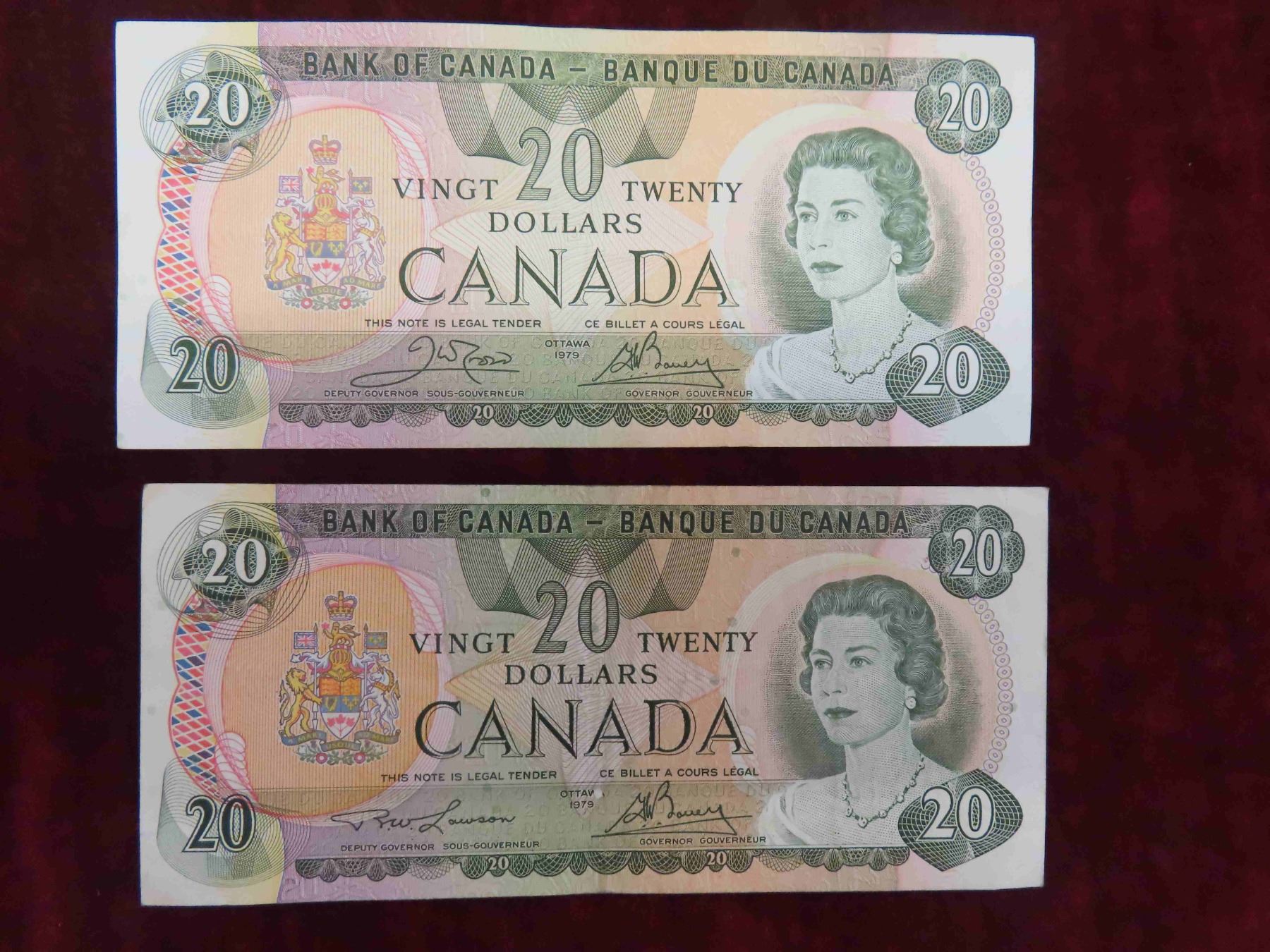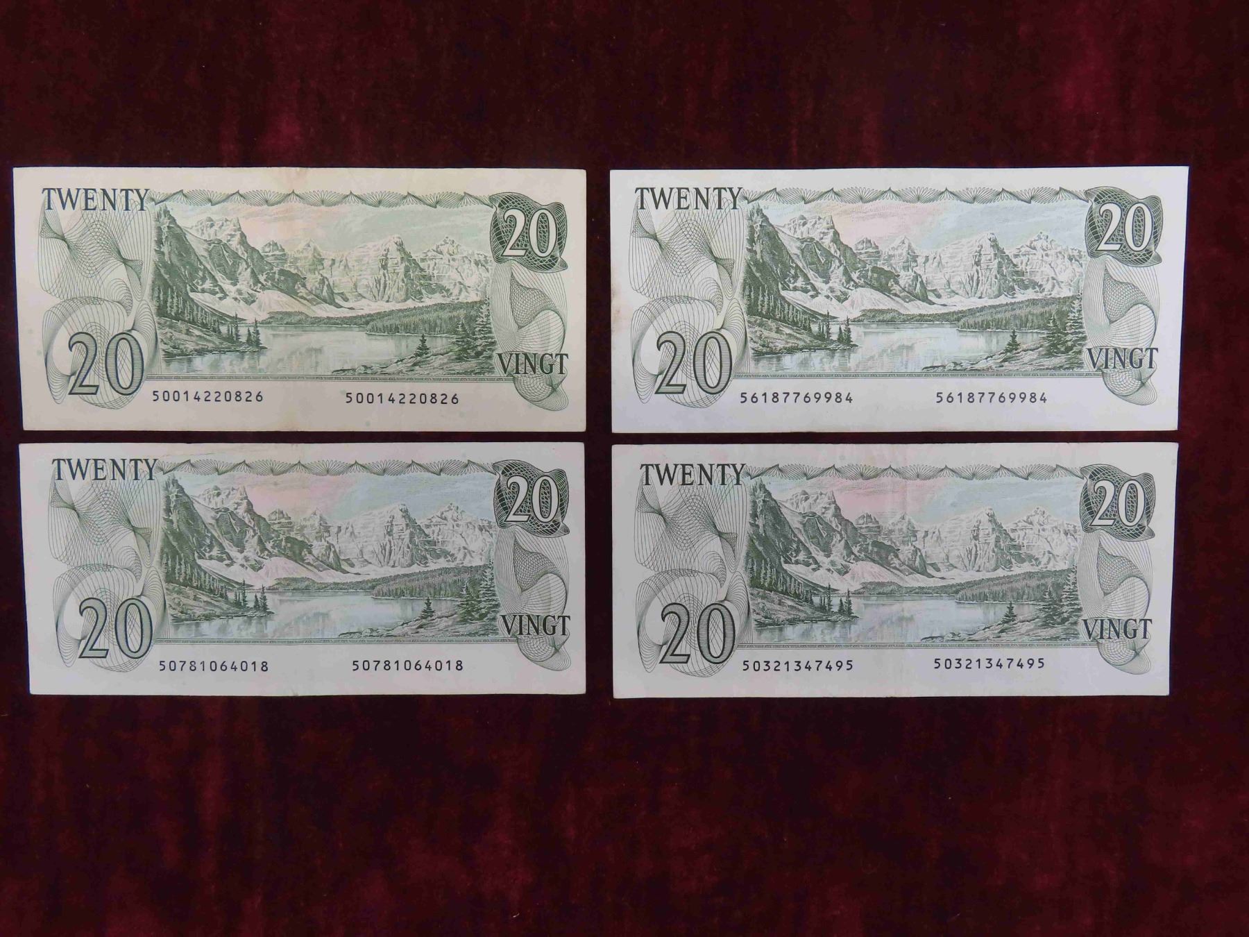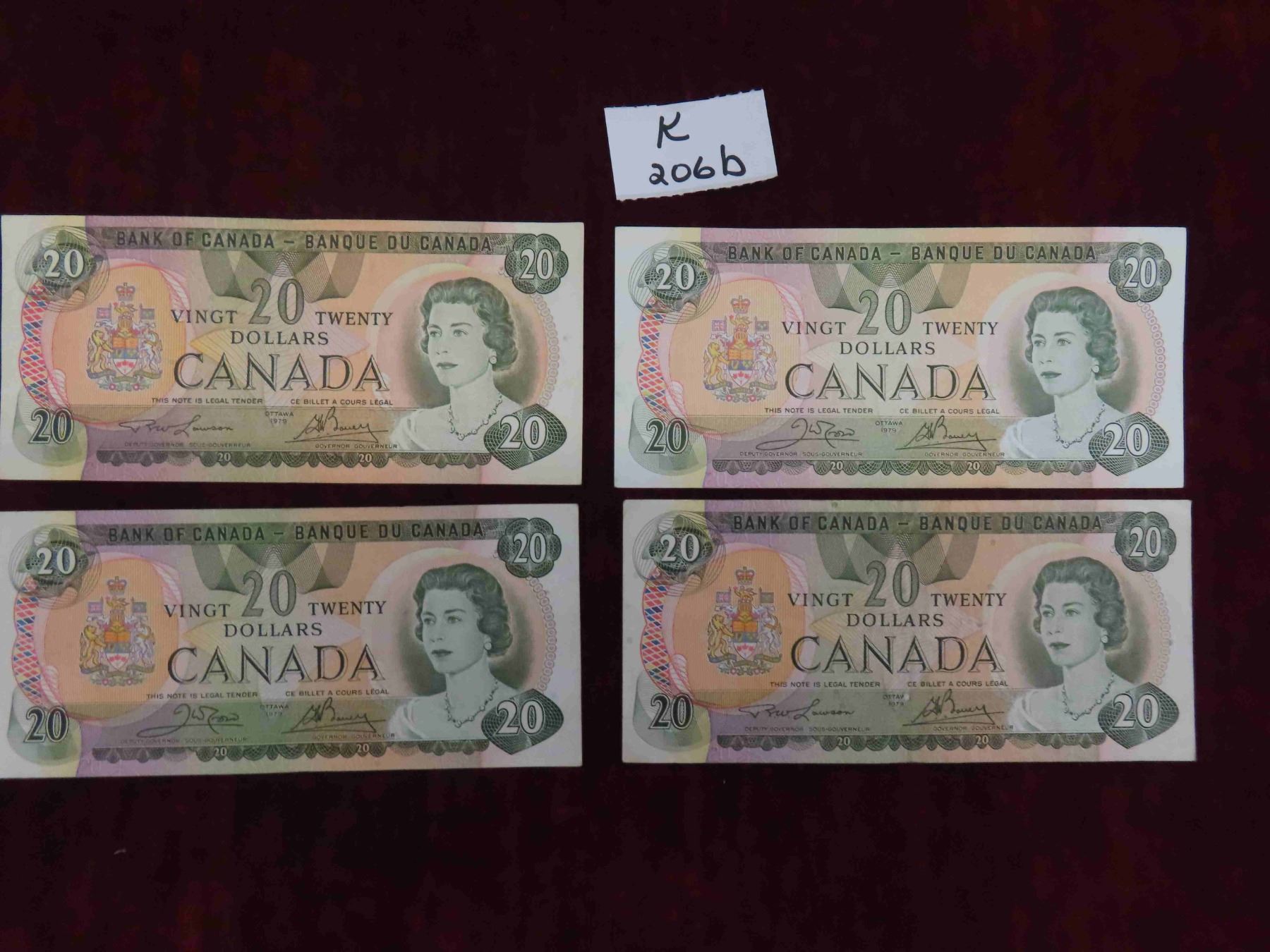 (4) 1979 Canadian $20.00 Bills