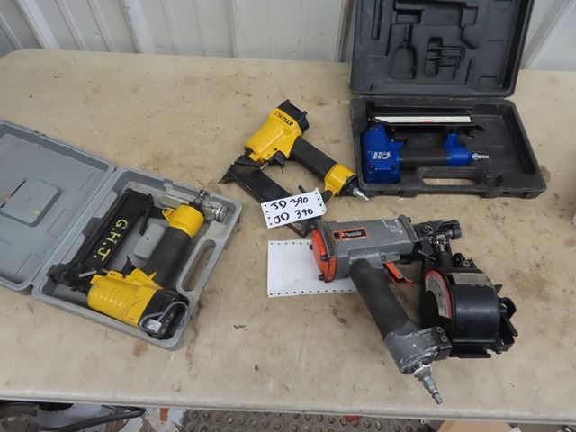 4 Air Tools - Paslode Coil Roofing Nailer, & 3 Brad Nailers
