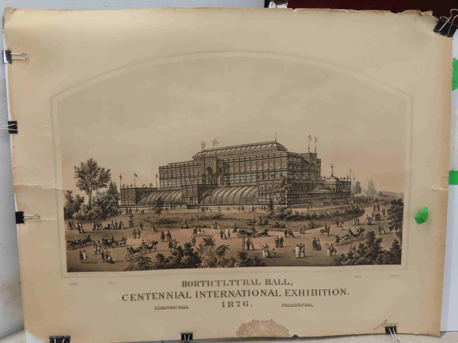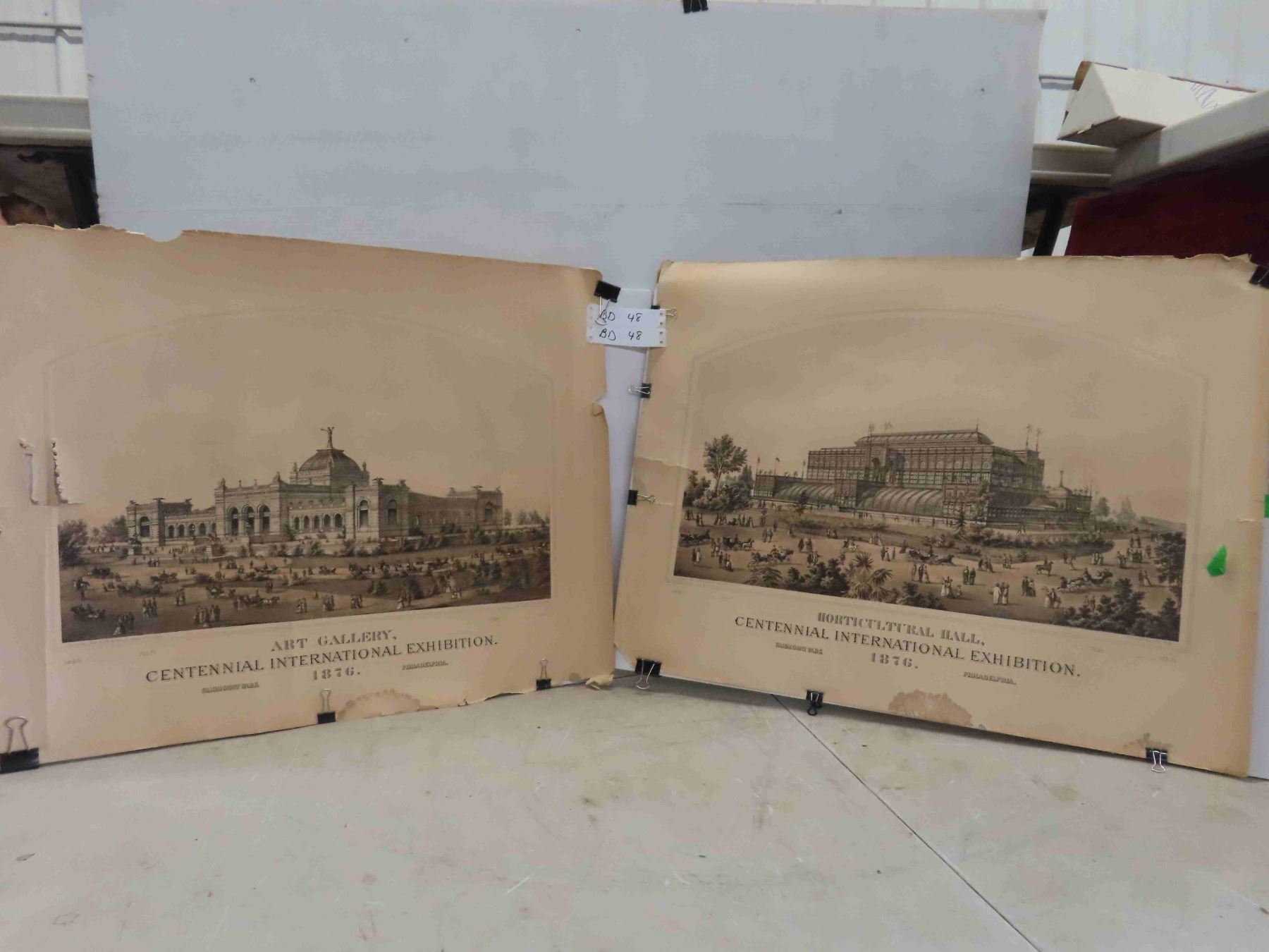 4 Antique H.J. Toudy + Co. Large Lithograph Prints 1874 Centennial International Exhibition Philadelphia 21'' x 27''