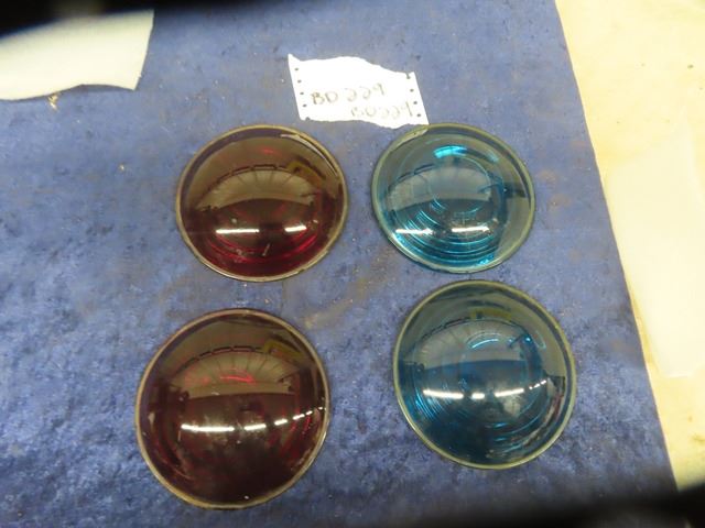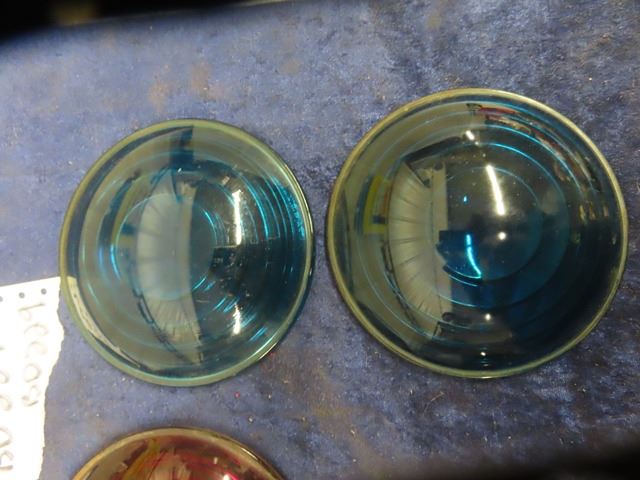 4 Antique Railway Lamp/Switch Lantern Glass Lenses - Blue + Red - No Cracks or noticeable defects