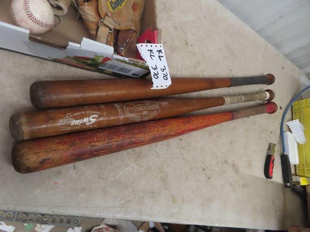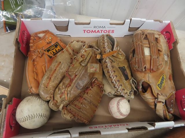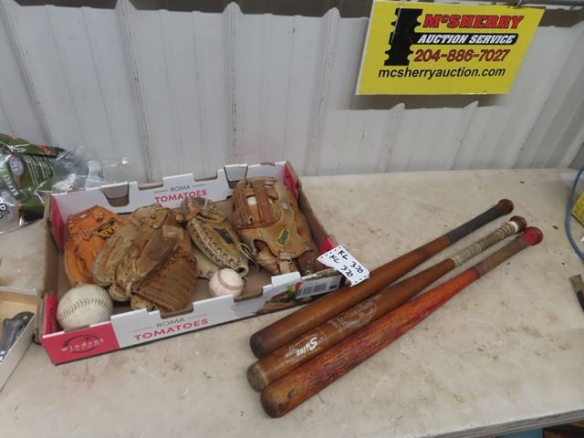 4 Baseball Gloves, 3 Wooden Bats, 2 Balls