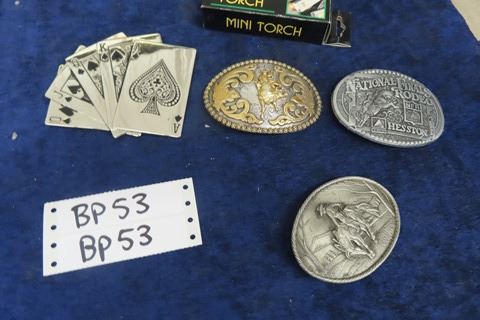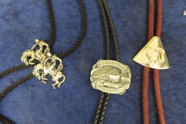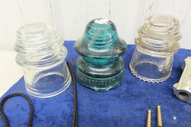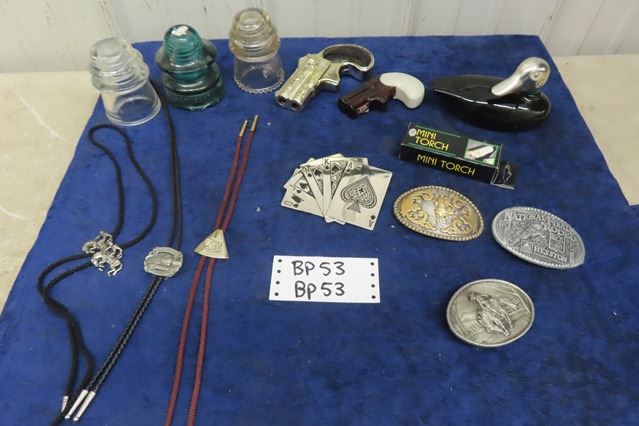 4 Belt Buckles, 3 Bollo Ties, 3 Glass Insulators, 3 Avon Bottles