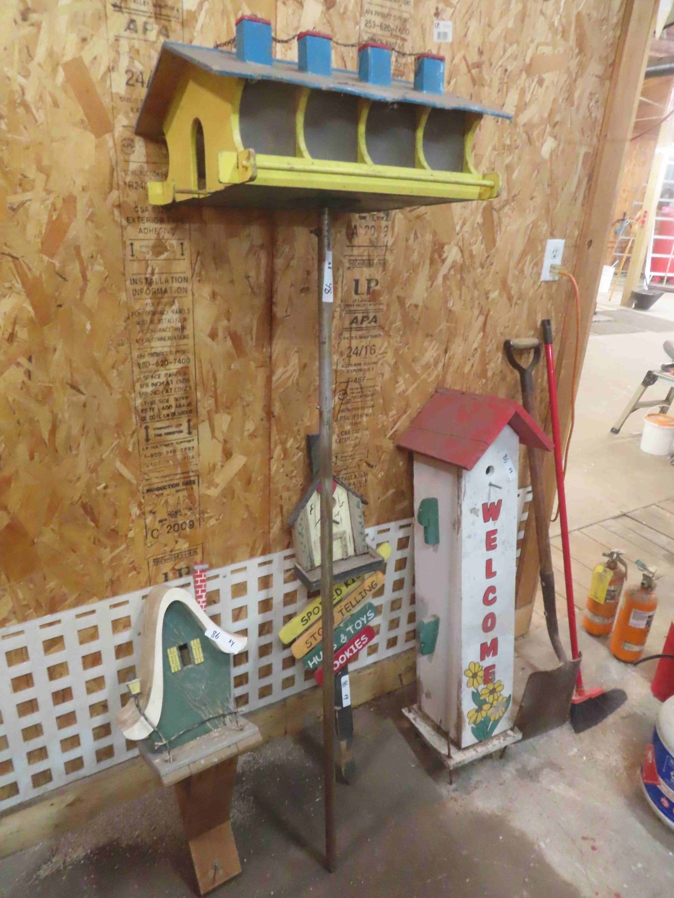 4 Bird Feeders, Bird Houses, Shepherds Hook