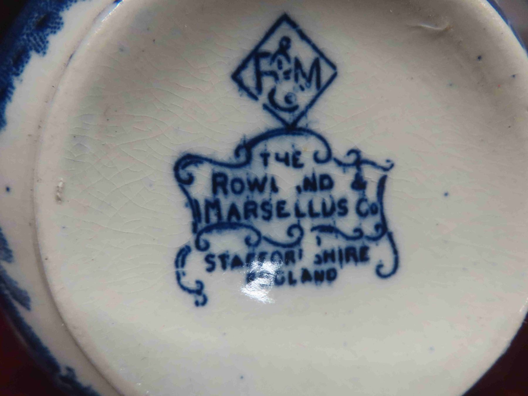 4 Blue Japan Cups with Saucers, Staffordshire Bowl