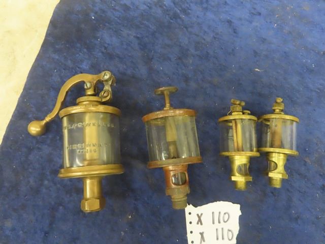 4 Brass & Glass Oilers- 1) Embossed Glass WM Powell