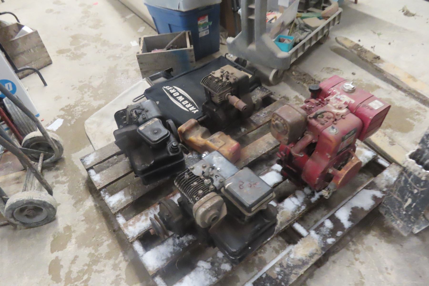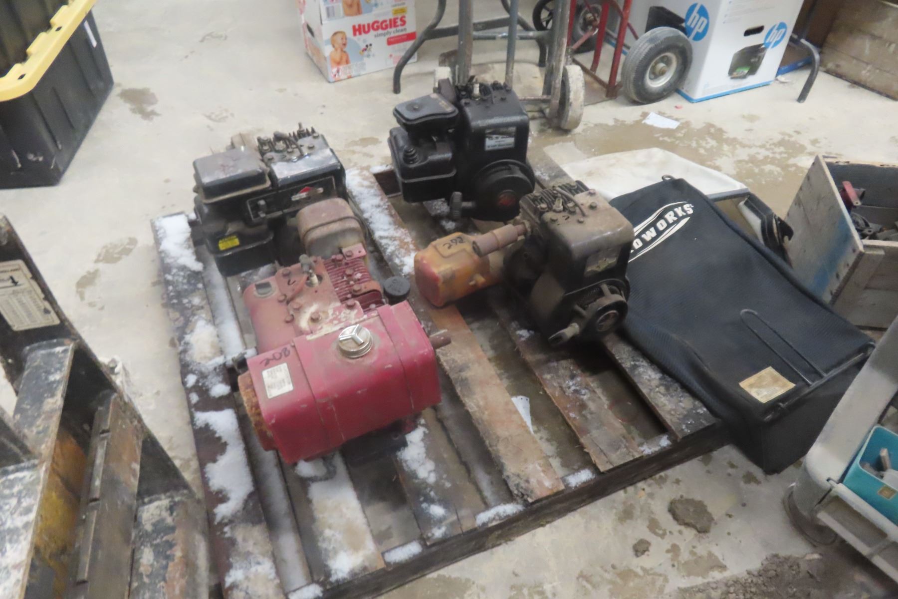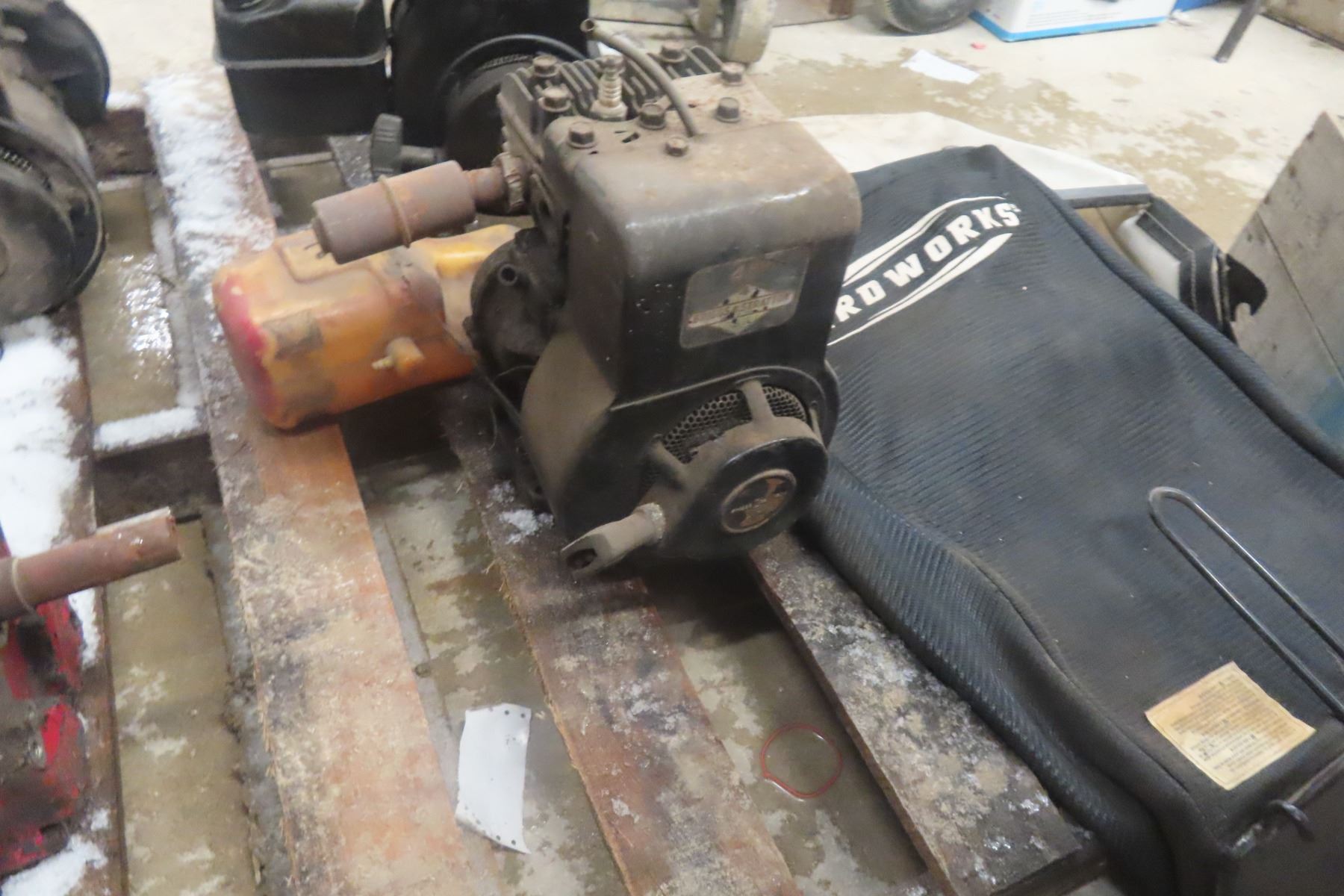 4 Briggs & Stratton Engines: 8 Hp, 4 Hp, And 2x 5 Hp;Grass Catch For Push Mower And Misc Parts