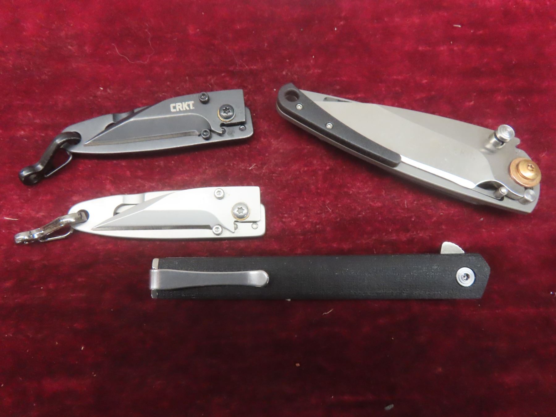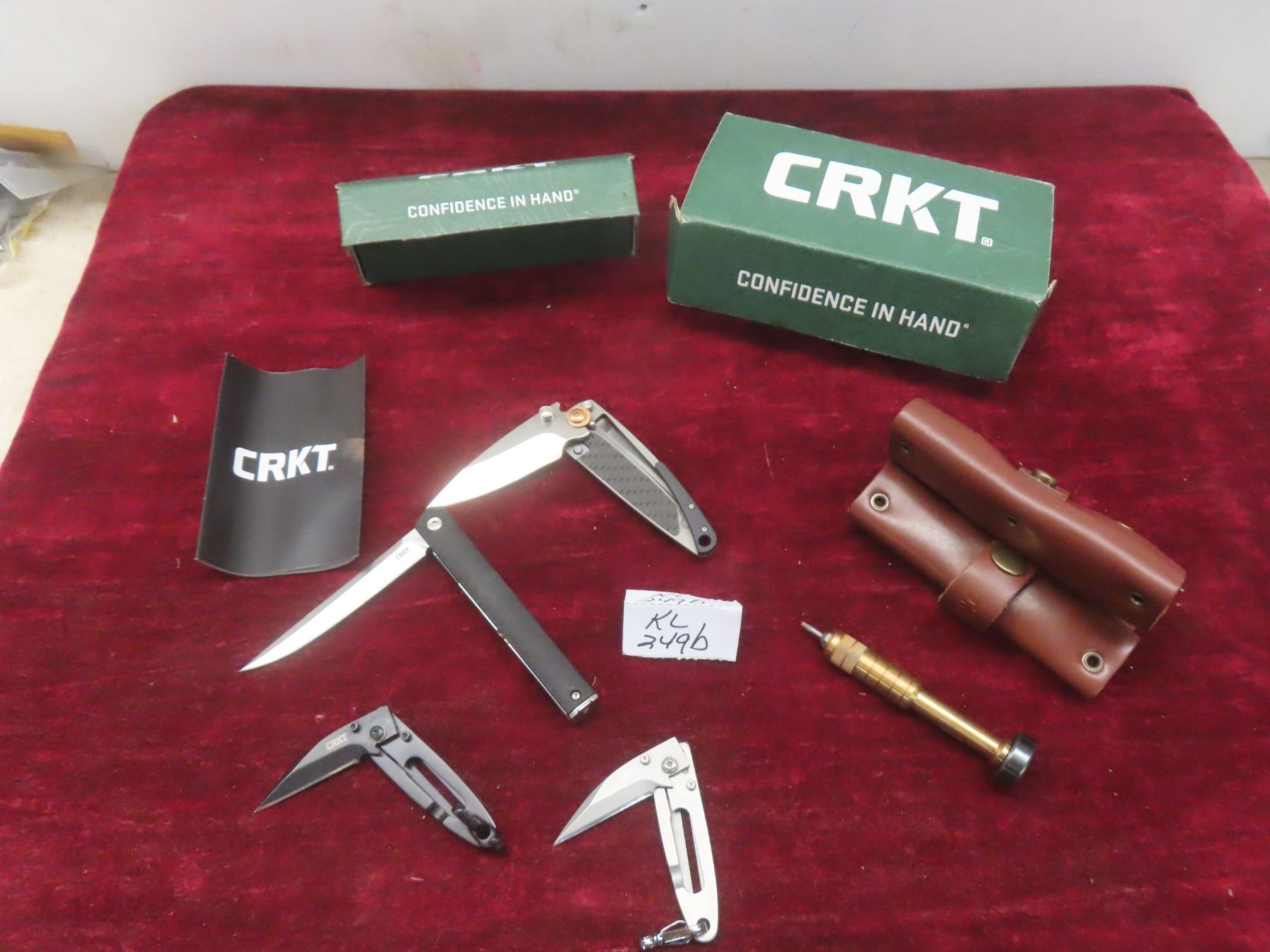 4 CRKT Folding Knives And A CRKT Travel Screwdriver With Driver Bits.