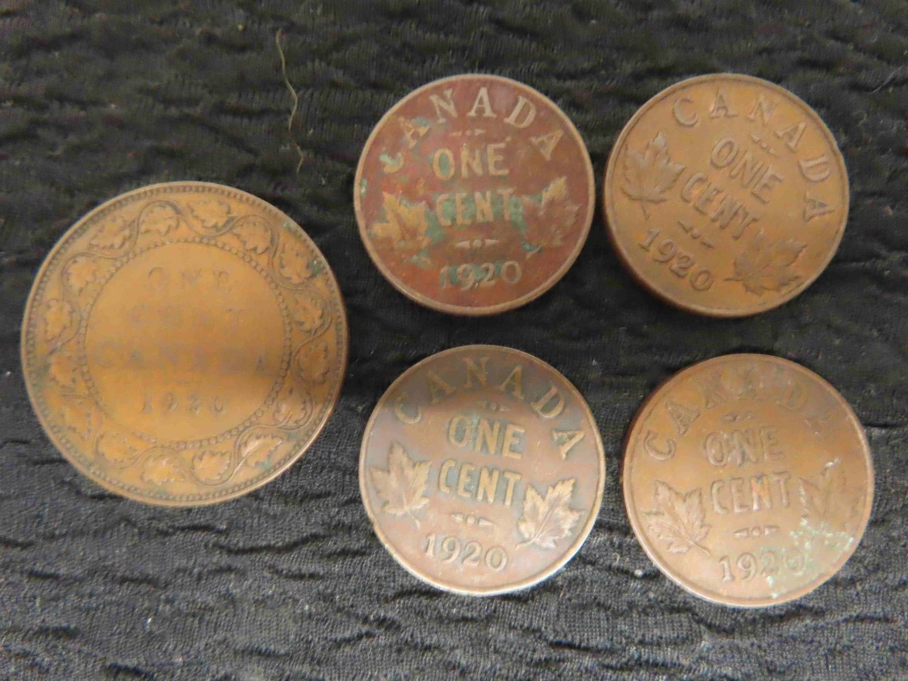 4 Canadian 1920 Pennies + 1920 Large Cent