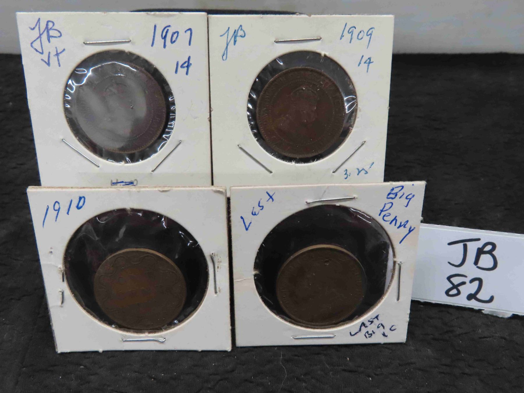(4) Canadian Large Cents 1907,1909,1910,1920 Last Year For The Large Penny