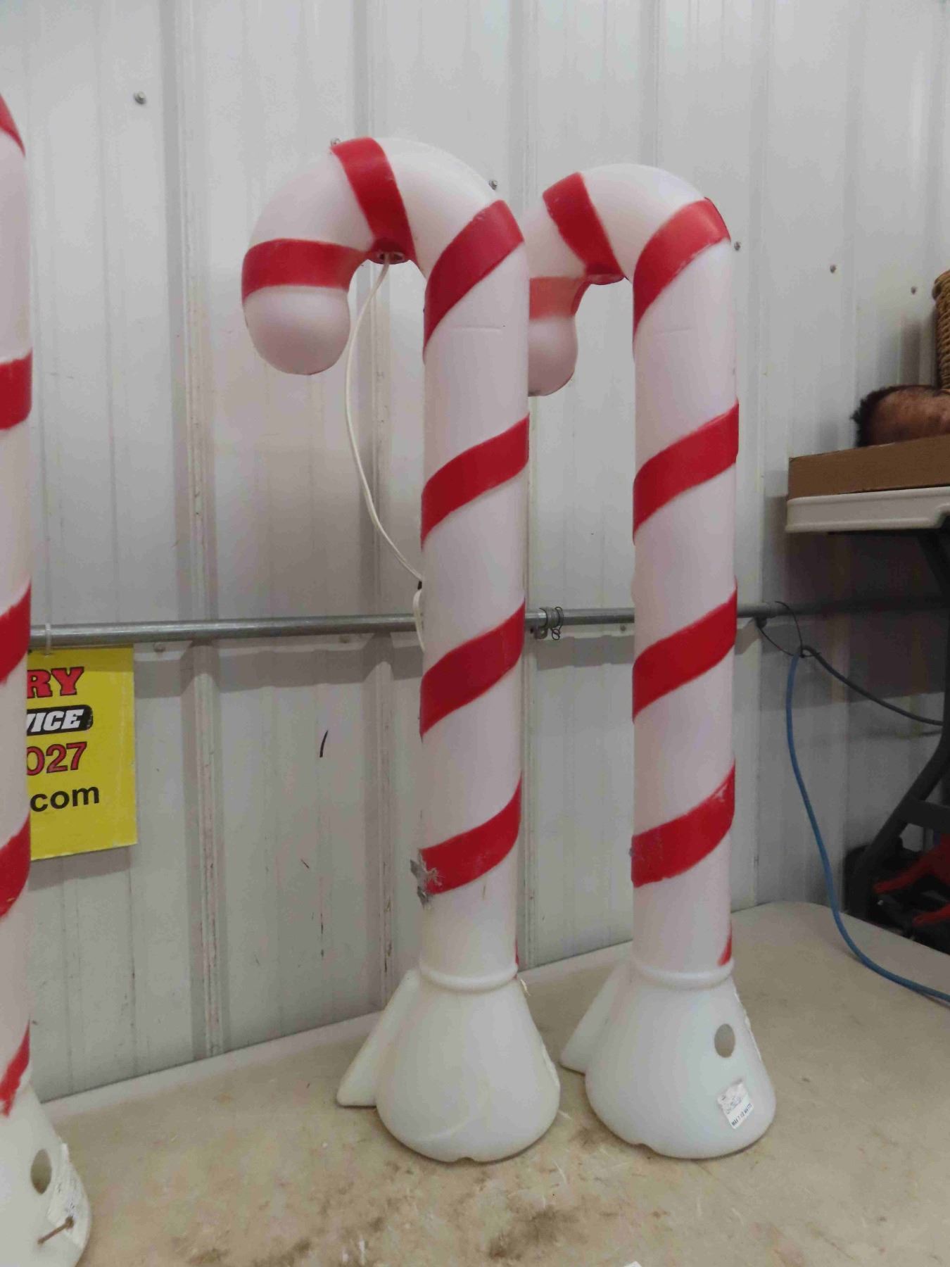 4 Candy Cane Blow Molds 39" Tall - only 1 has light