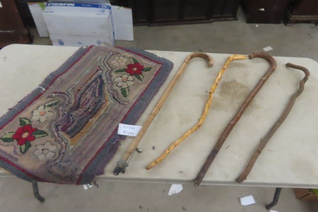 4 Canes 1800's Hooked Rug