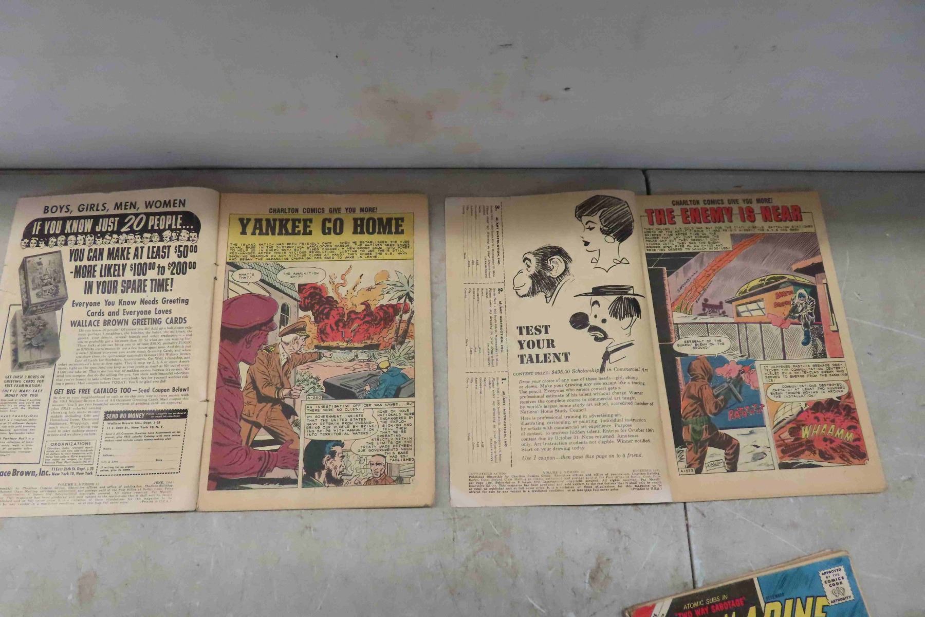 4 Charlton Comic Groups 1961 Comic Books, Priced at 10cents, War at Sea #42 Battlefield Action #39, Submarine Attack #31, US AirForce #19 All Comics Have a Musty Odor