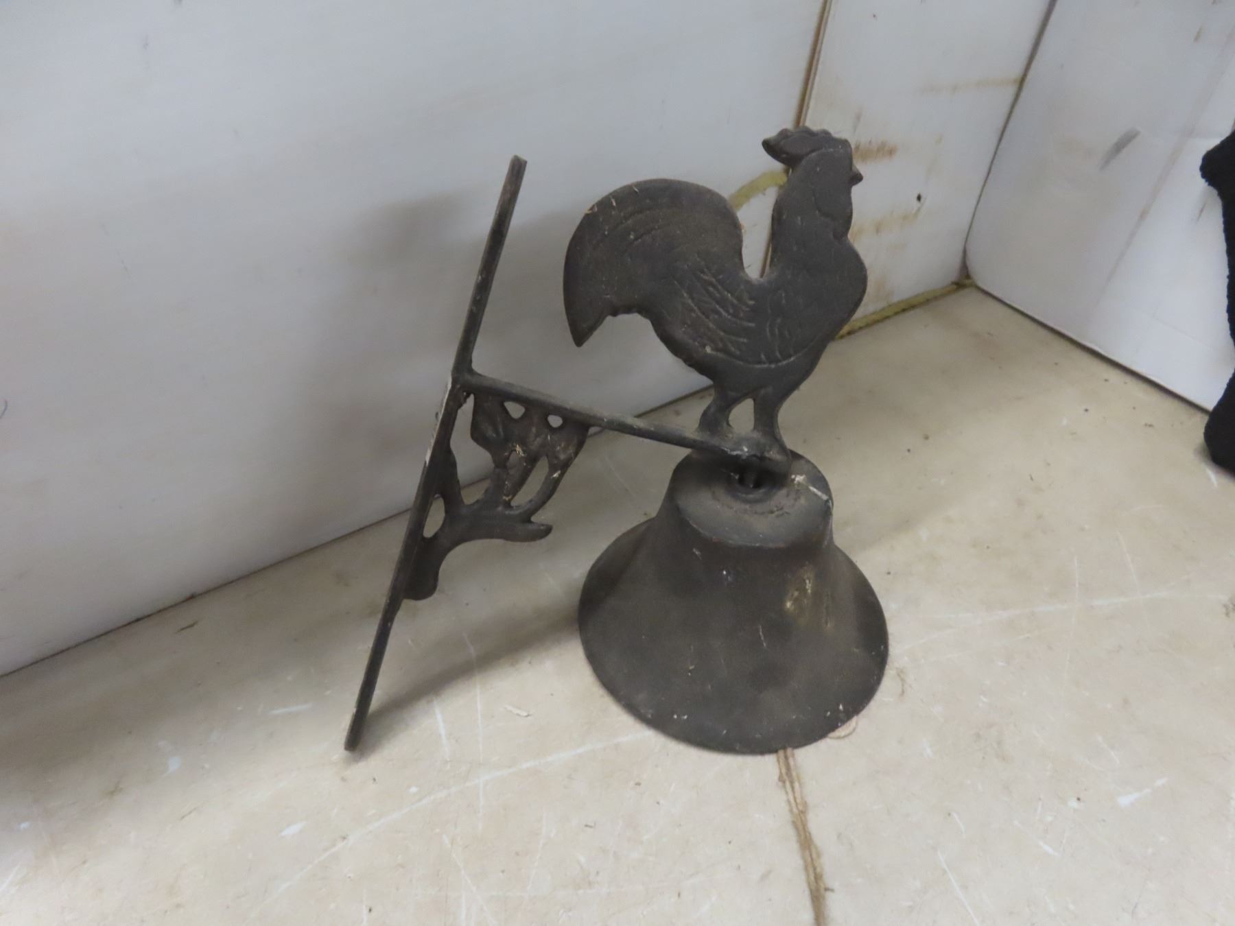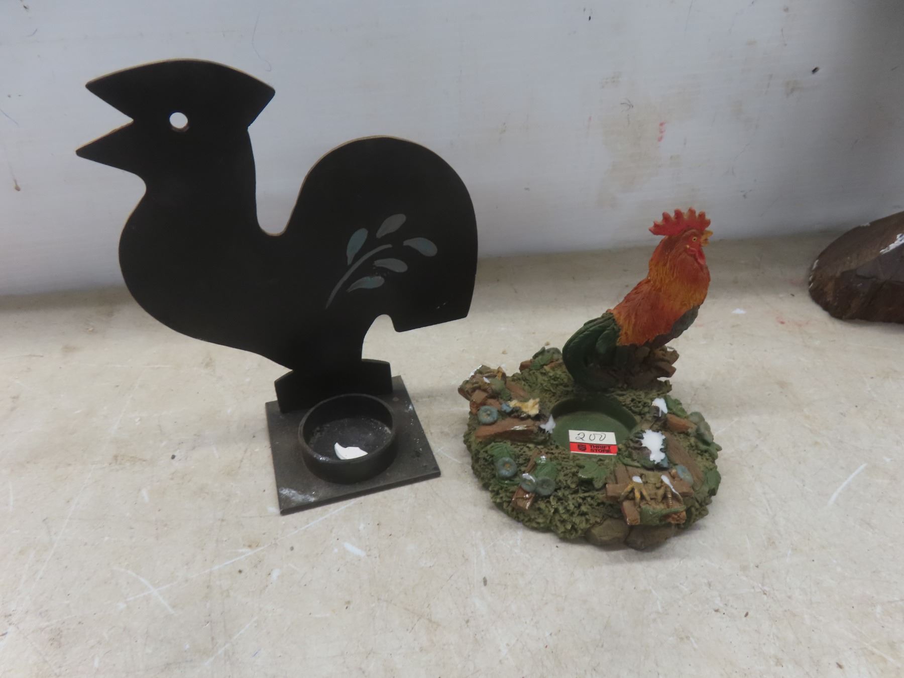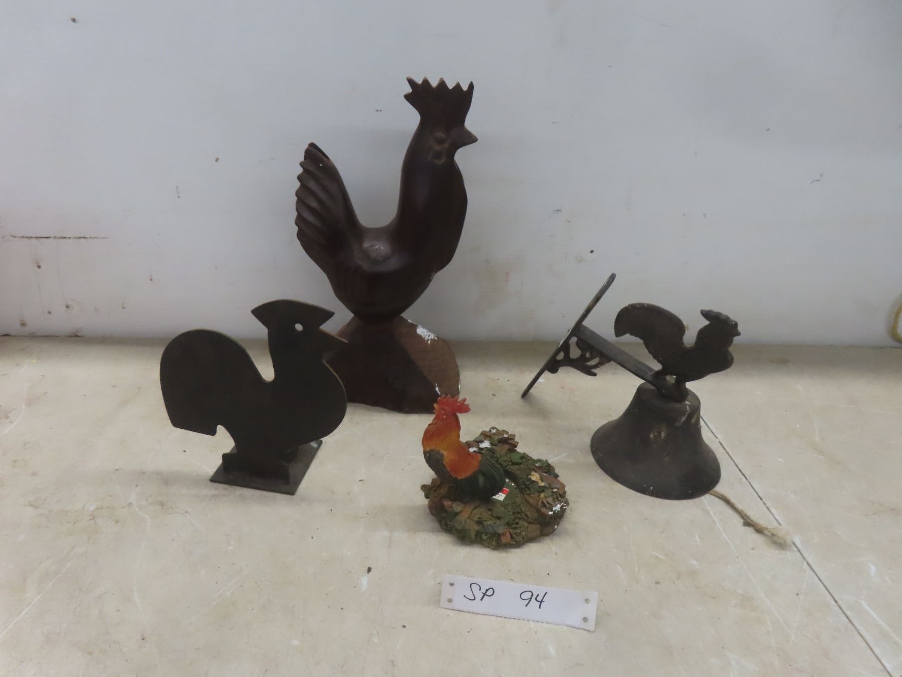 4 Chickens: Wood Carved 12", Cast Bell, 2 Tealight Holders