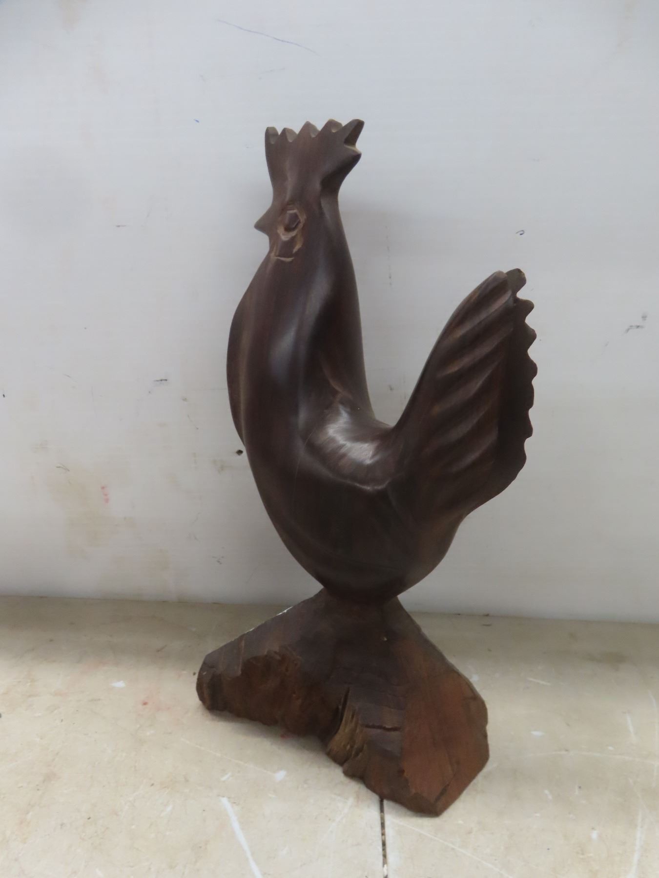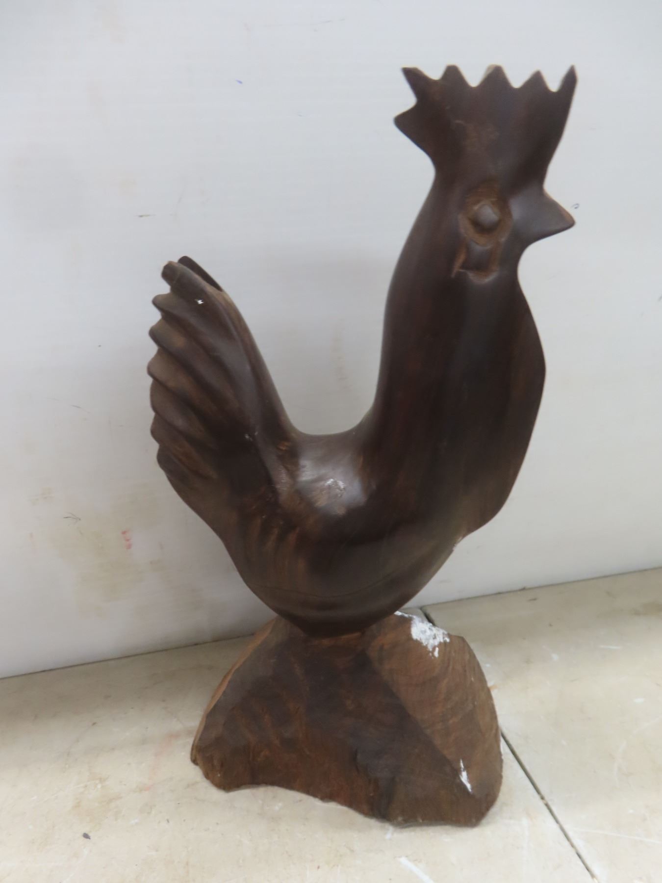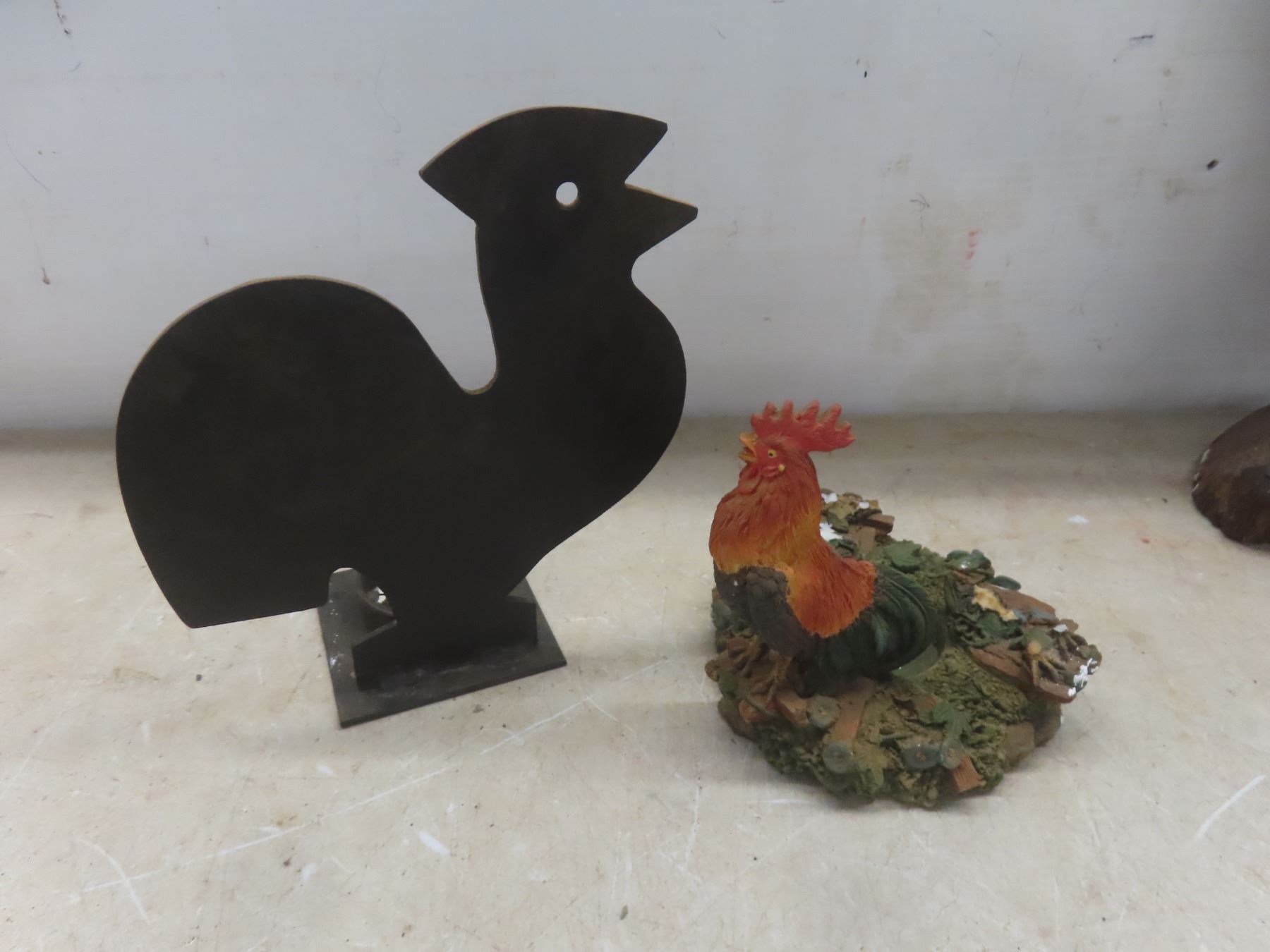 4 Chickens: Wood Carved 12", Cast Bell, 2 Tealight Holders