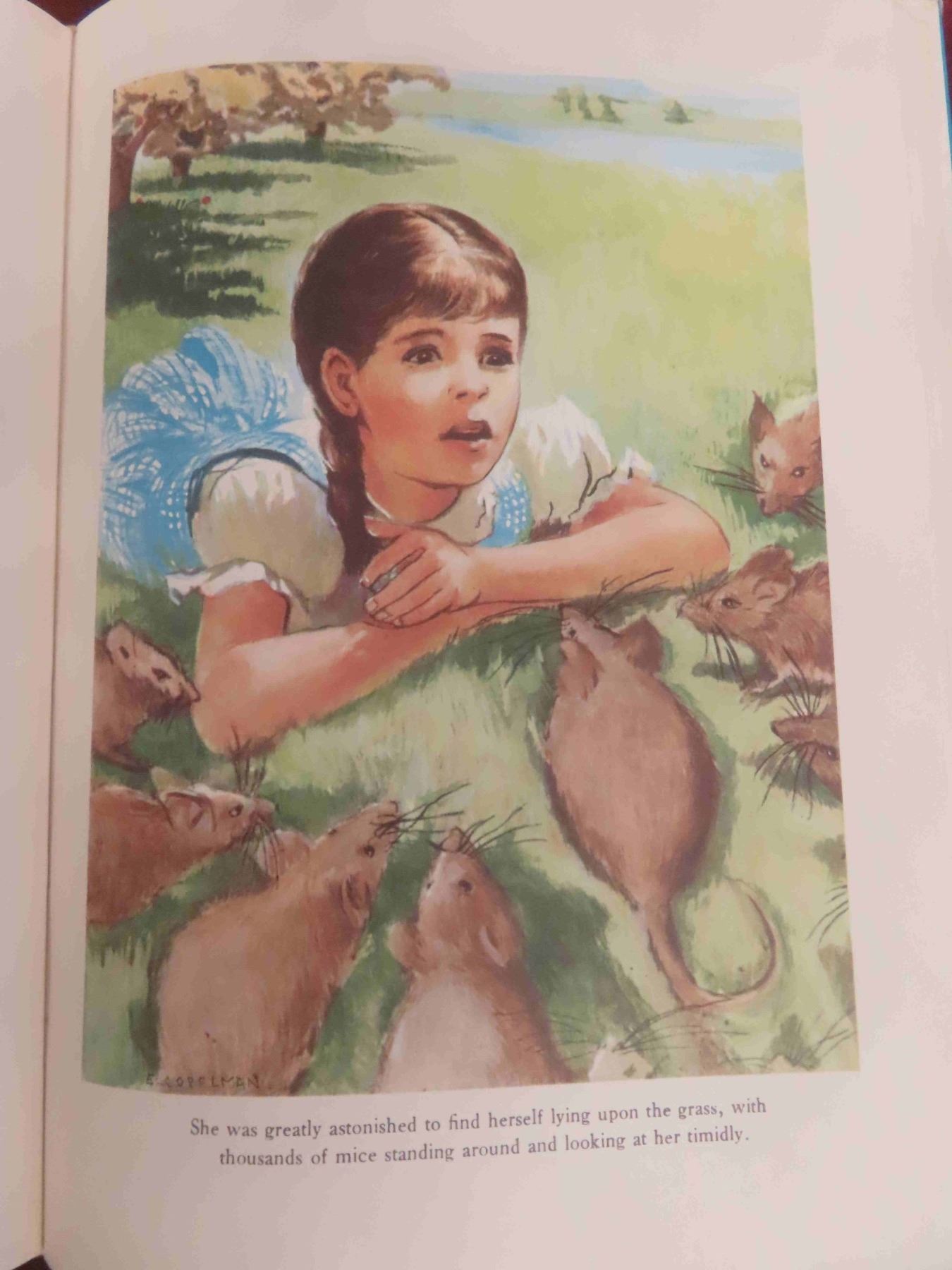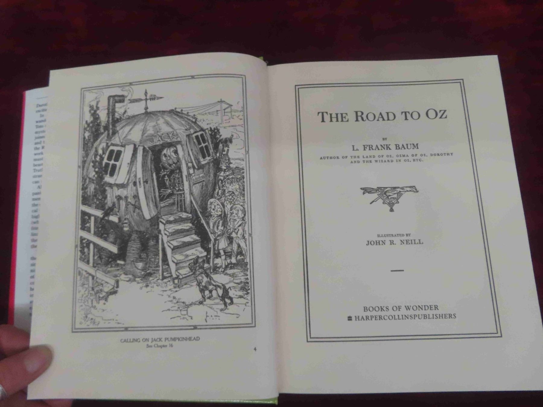 4 Childrens Books : 1920s Alice in Wonderland , 1996 Looking Through the Glass with Beautiful Colored Illustrations, 1991 The Road to Oz, 1944 The New Wizard of Oz with Dust Jacket Called the Wizard of Oz