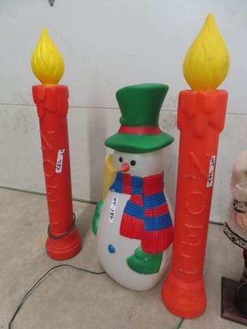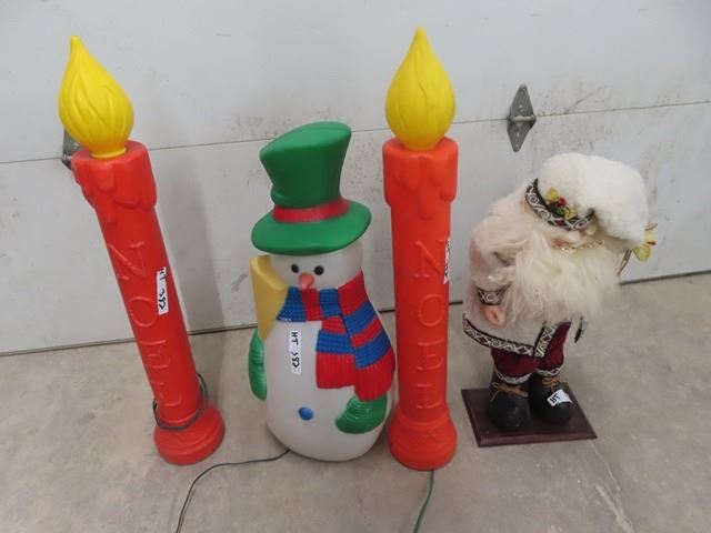 4 Christmas Ornaments, - 3 Are Blow Mould - Snowman & 2 Canldes, & Cloth Santa Ornament