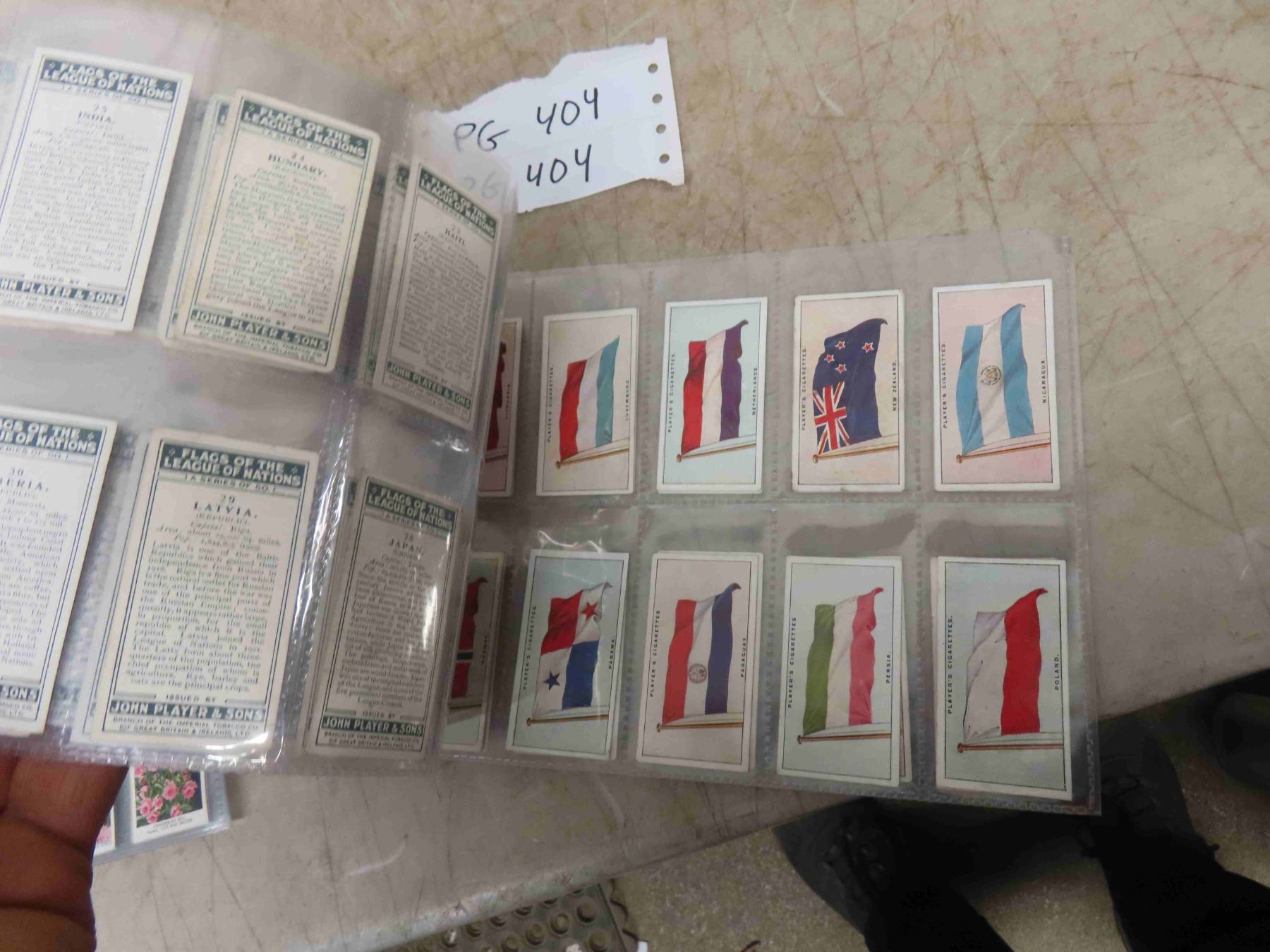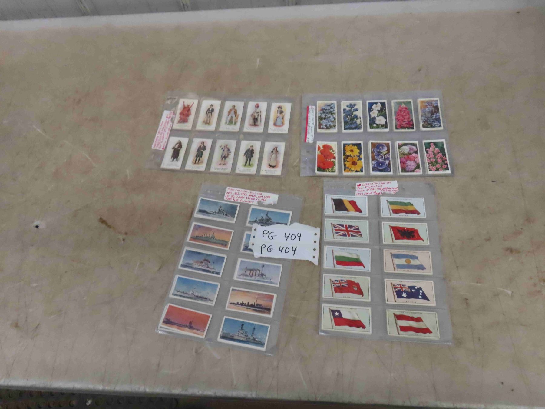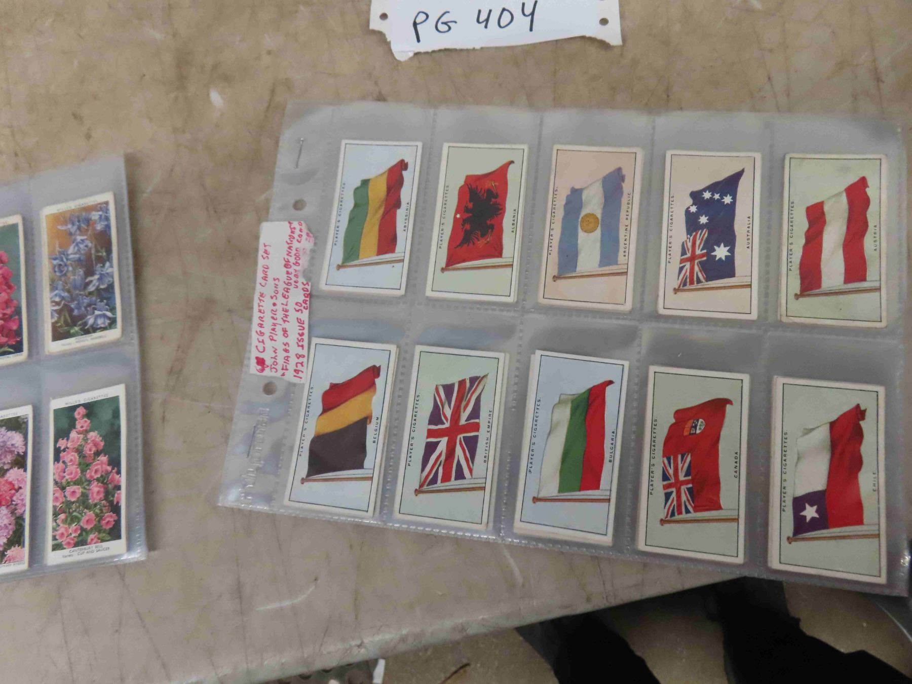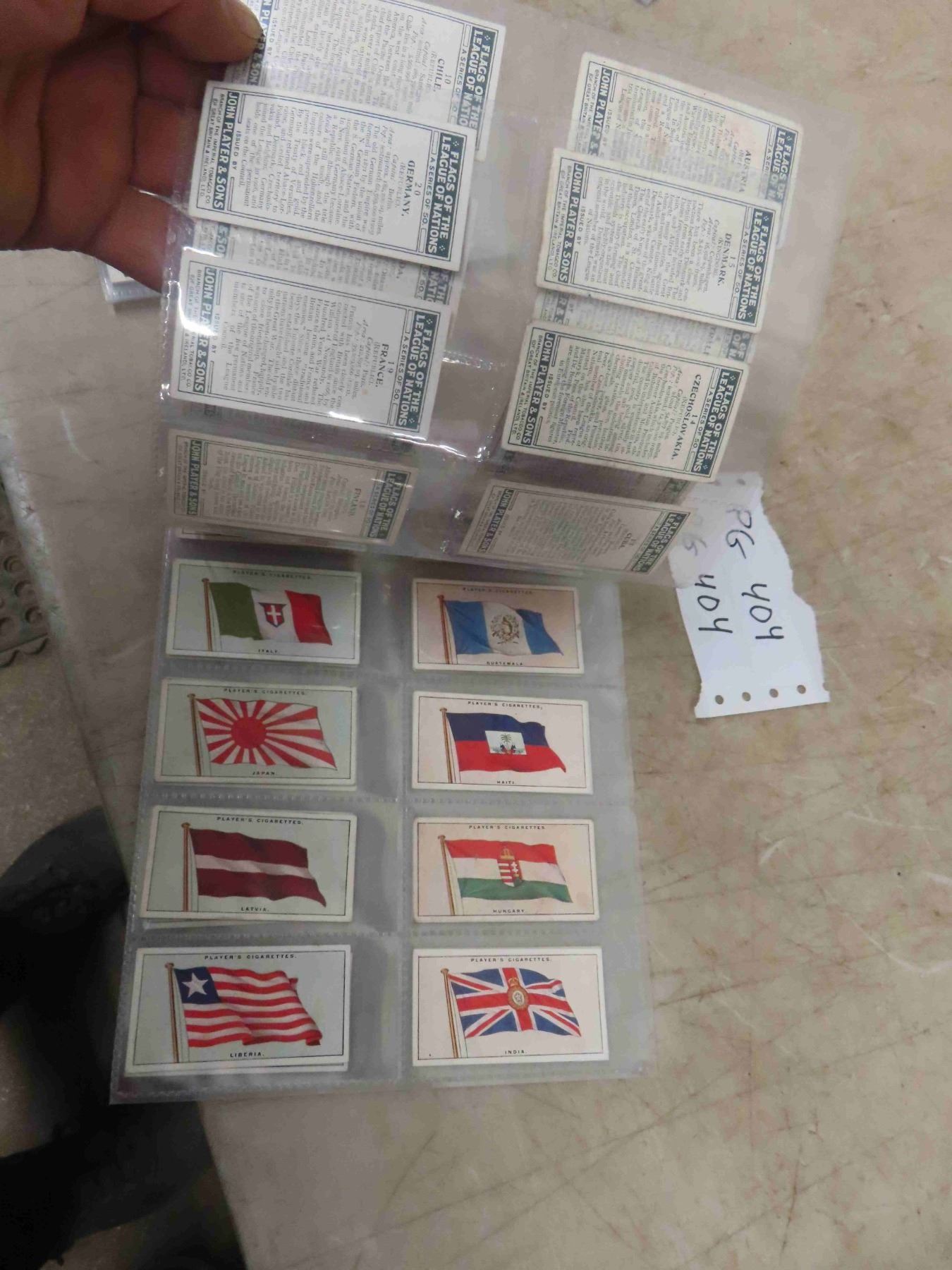 4 Complete Sets of Cigarette Card/ Lyons Tea Cards ; Lyons Tea Cards 1962 Issue, 1928 John Payer's Flags of the league or Nations - 50 Cards, 1916 John Players Set of 25, 1939 WD+ HO Wills Garden Flowers - 50 Cards - (more cards then pictures)