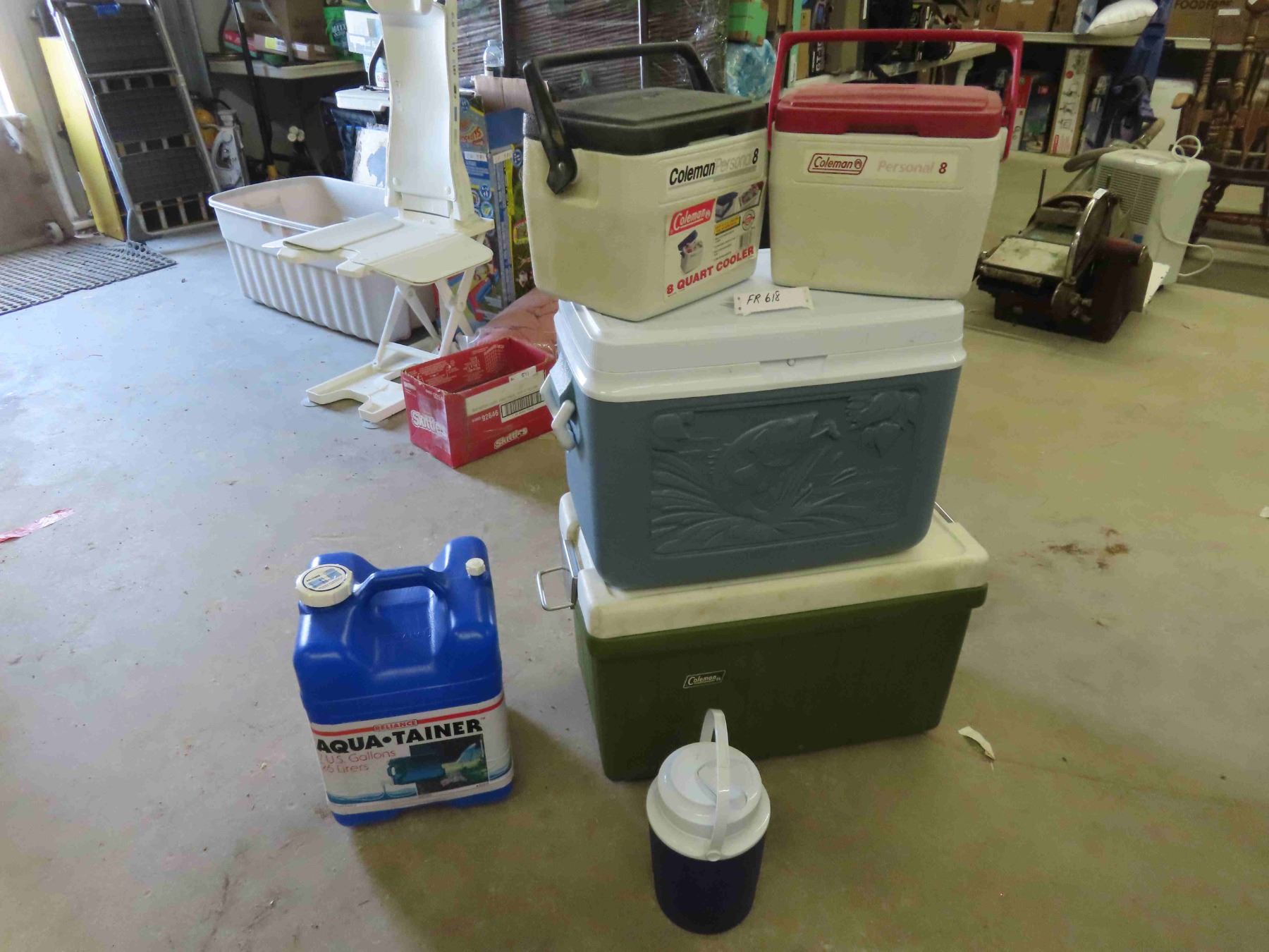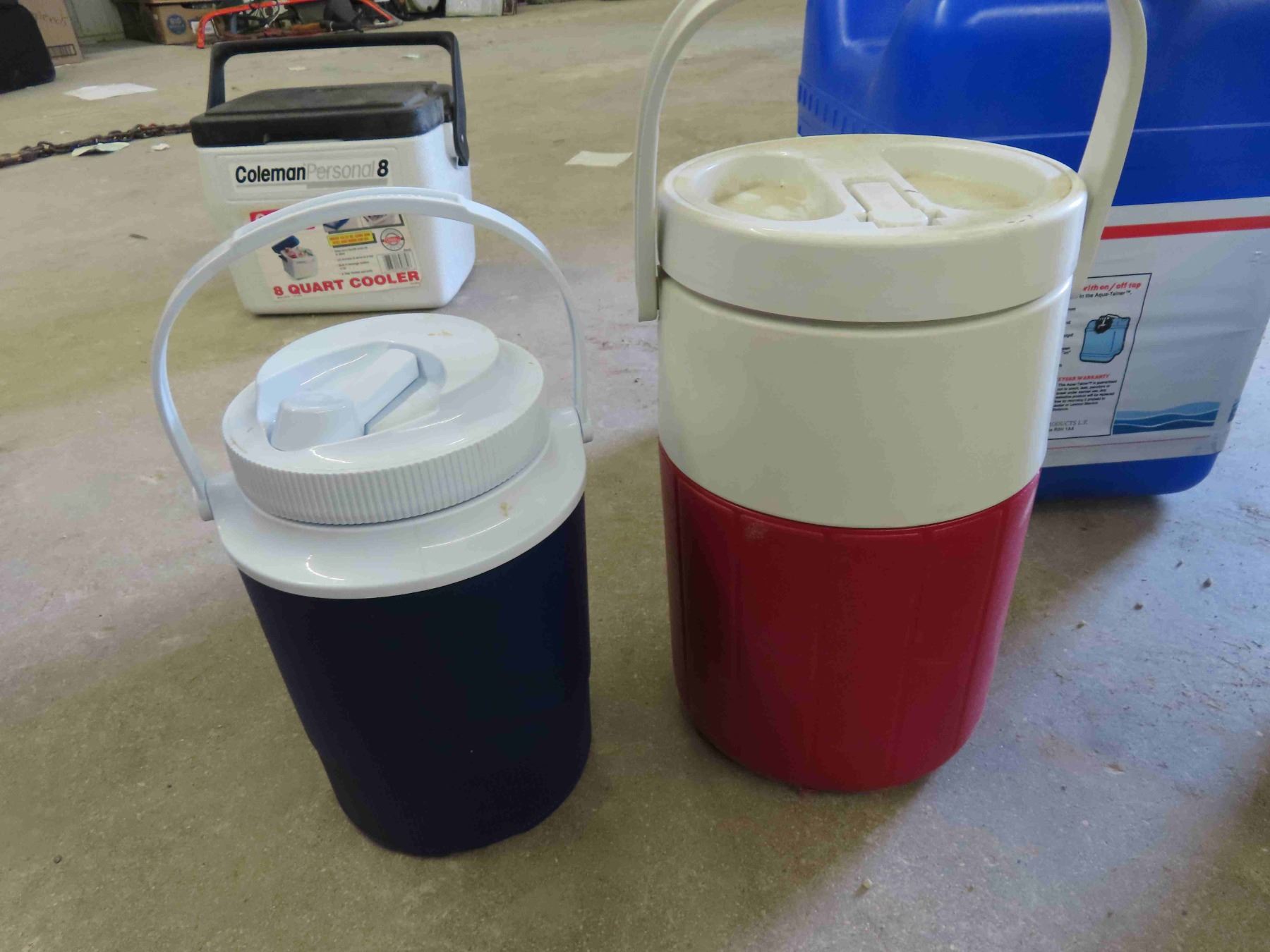4 Coolers, Picnic Jug, 7 Gallon Aqua Tainer