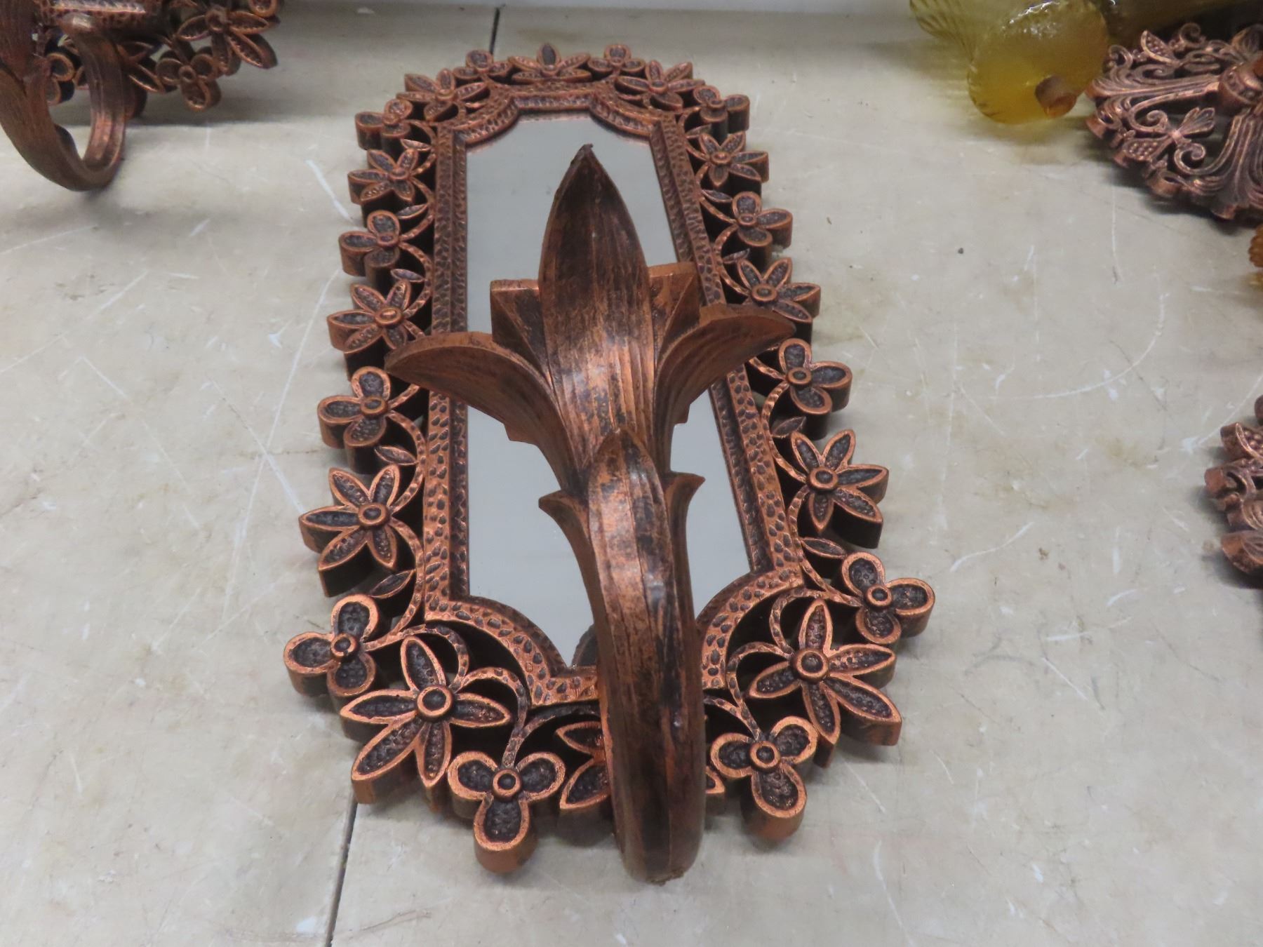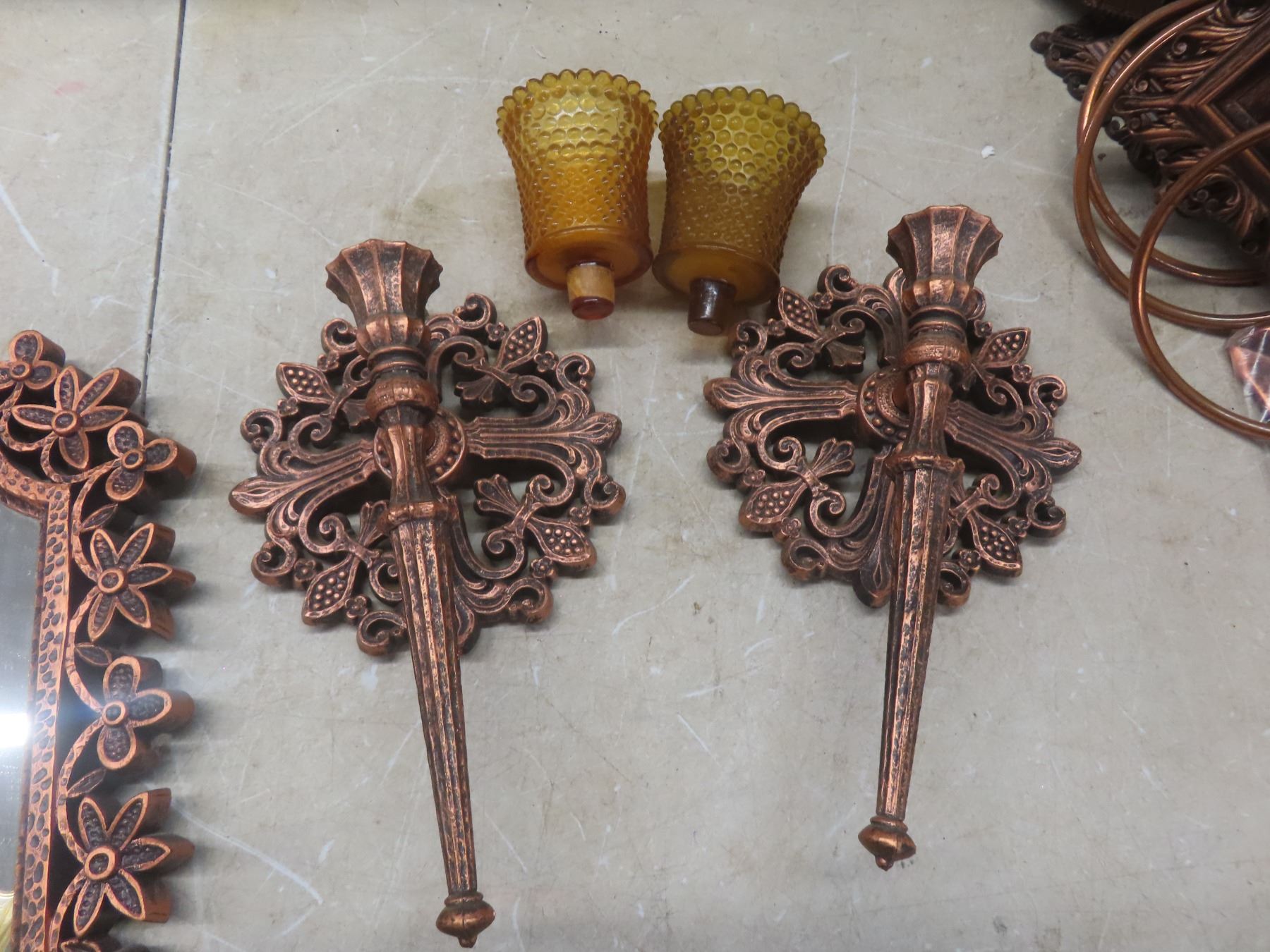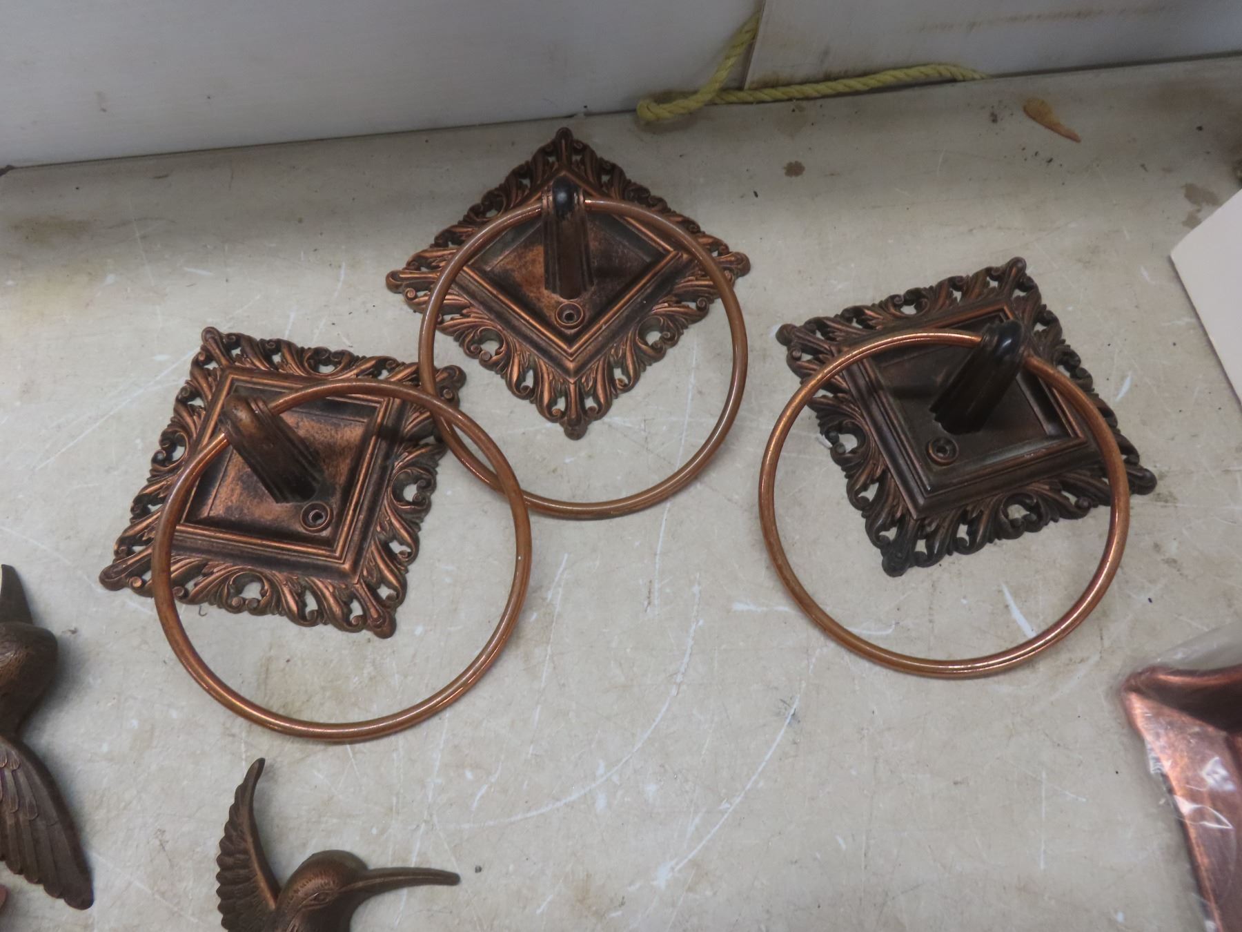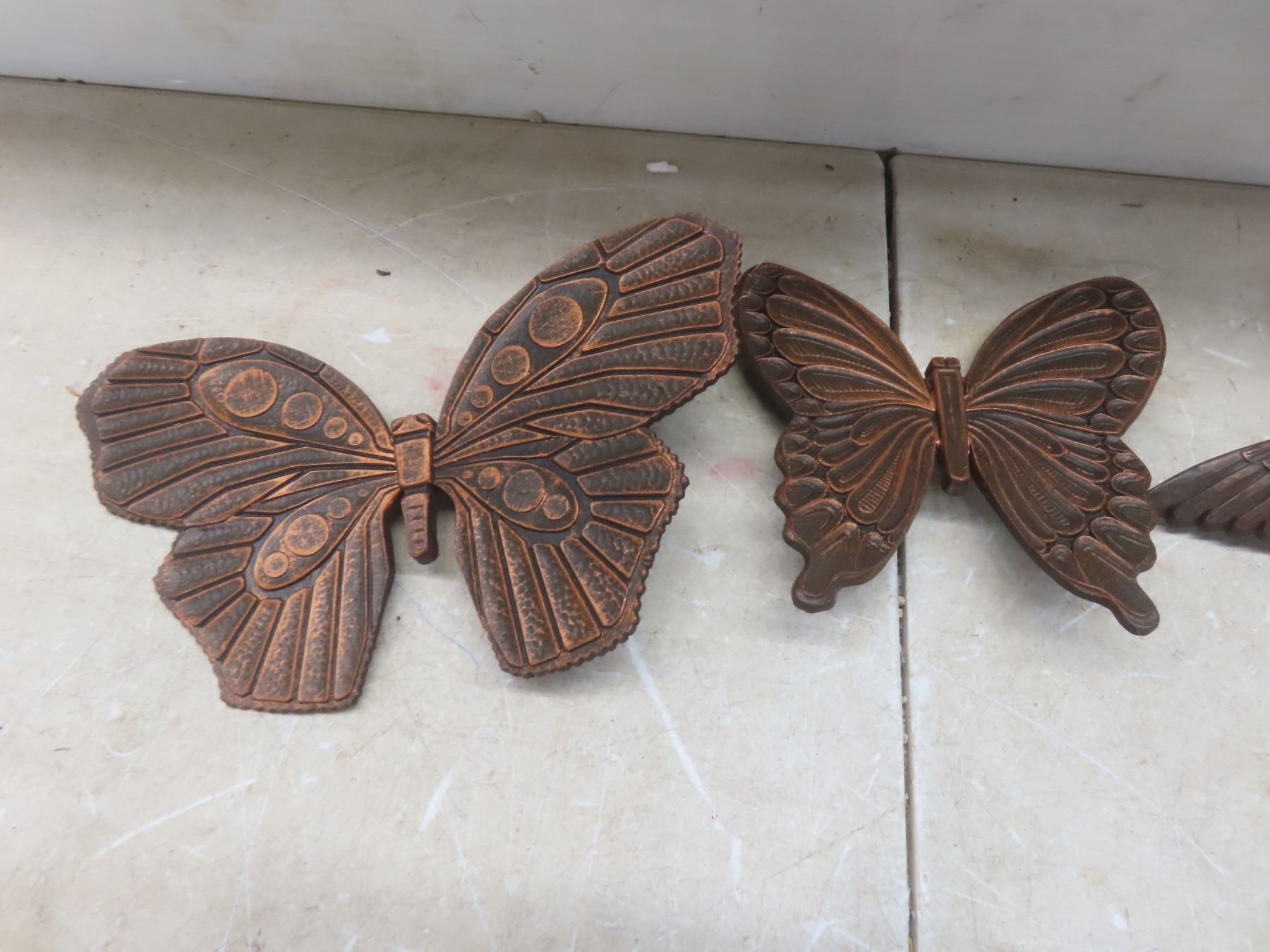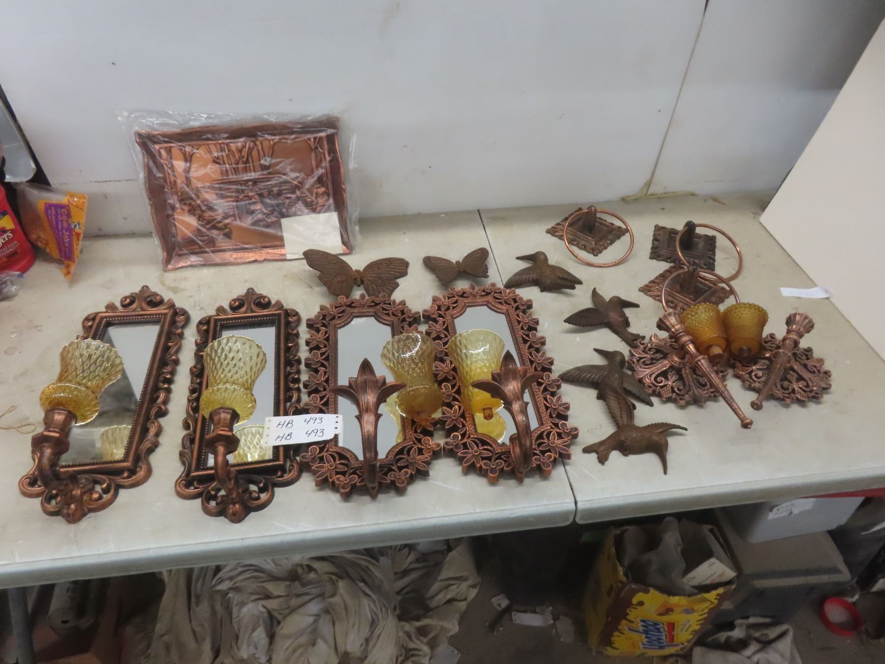 4 Coppercraft Mirrors With Candle-Holder Wall Art (Butterflies And Hummingbirds) And 3 Hand Towel Rings (Some Damage To One Mirror).