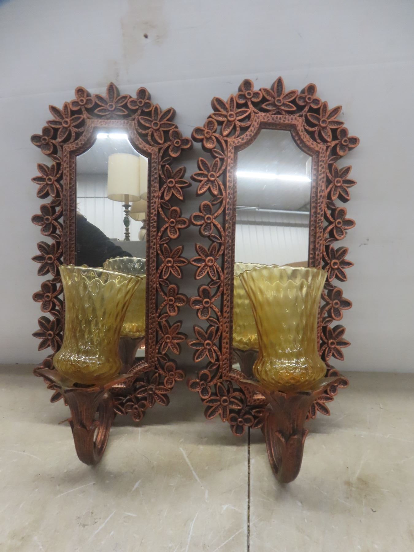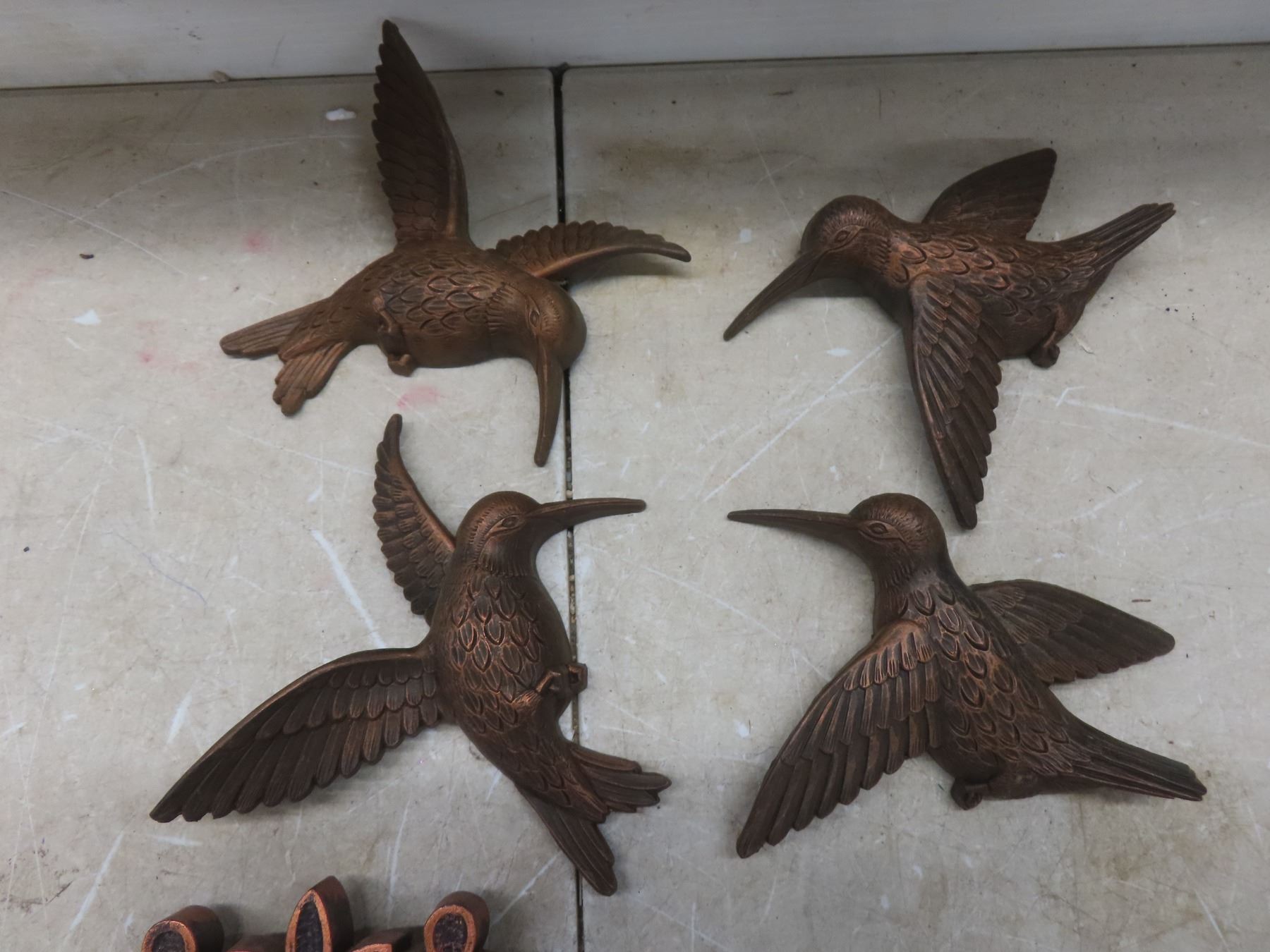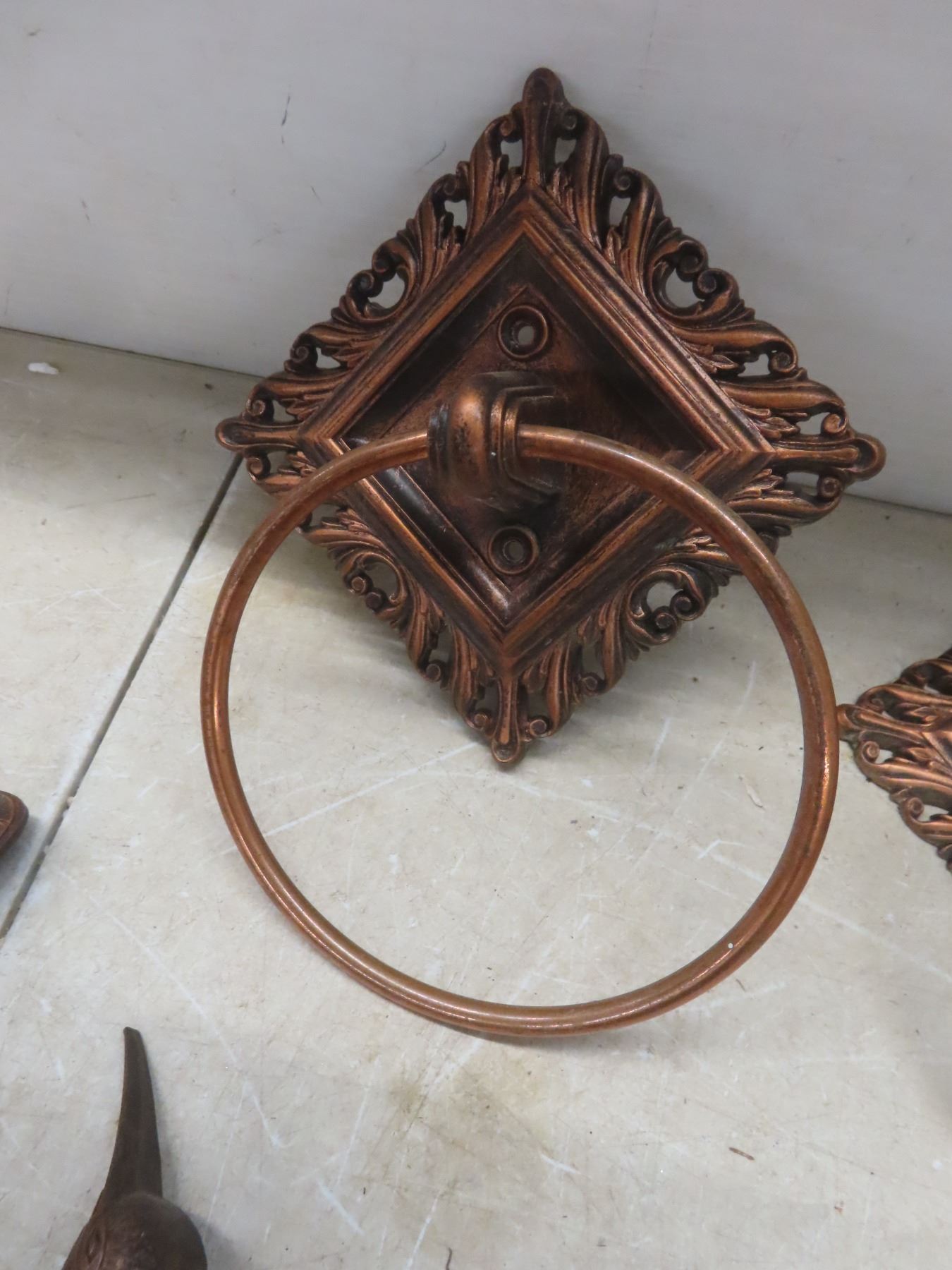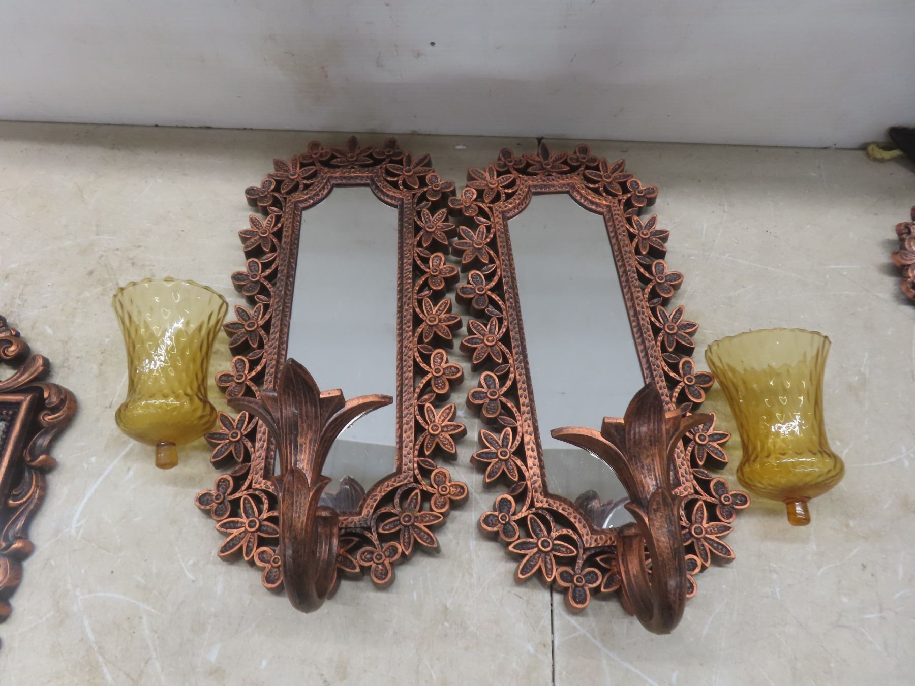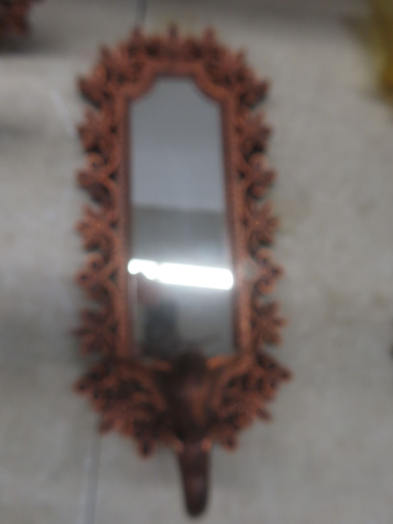 4 Coppercraft Mirrors With Candle-Holder Wall Art (Butterflies And Hummingbirds) And 3 Hand Towel Rings (Some Damage To One Mirror).