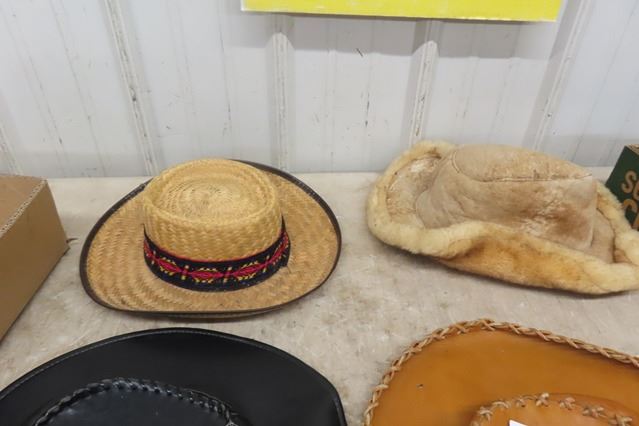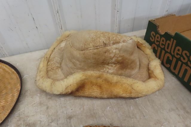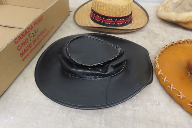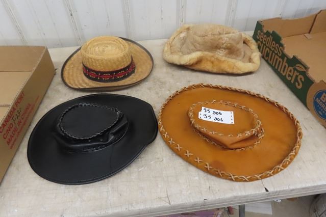 4 Cowboy Style Hats ; 2 Leather, 1 Sheep Hide, 1 Summer
