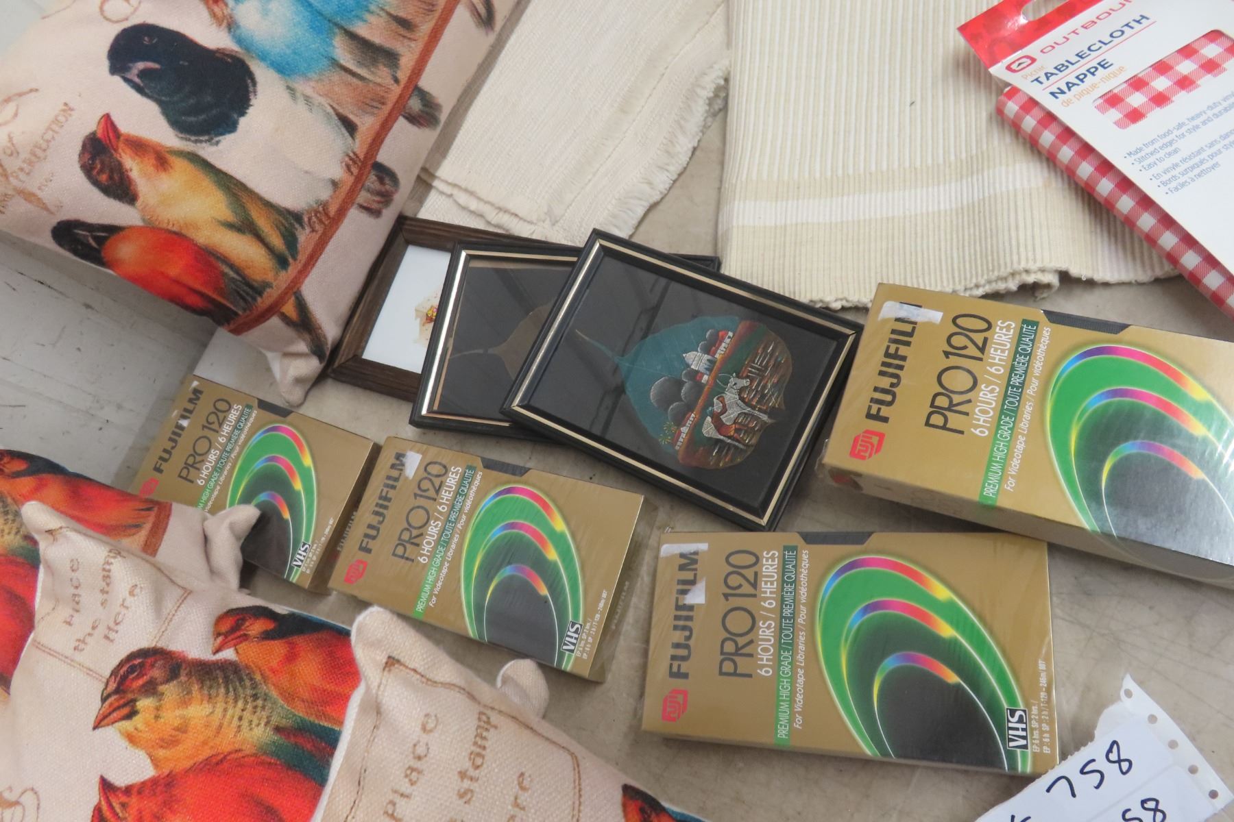4 Cushions, Sealed Blank Recording VHS Tape, Table Cloth, Pictures