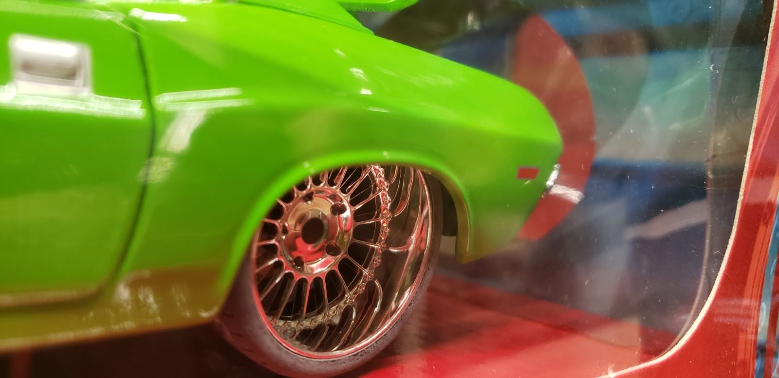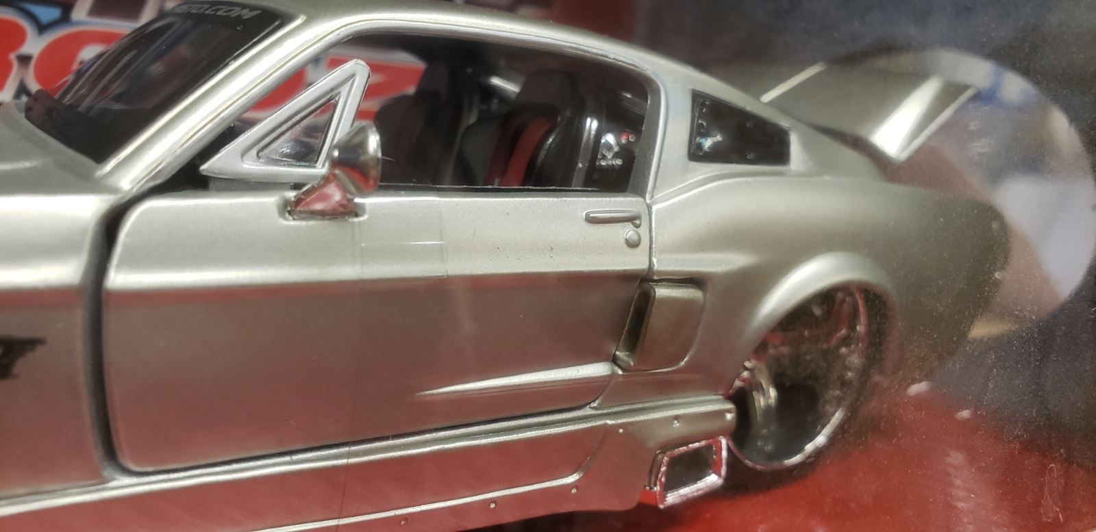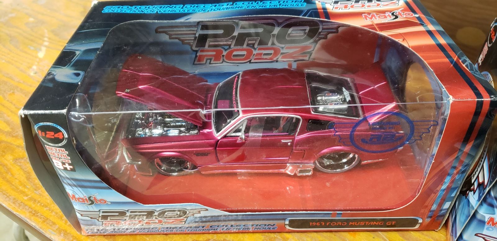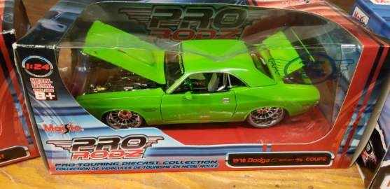 4 Diecast Cars in Boxes Scale 1:24 : 1965 Shelby Cobra , 1970 Dodge Challenger , (2) 1967 Ford Mustang