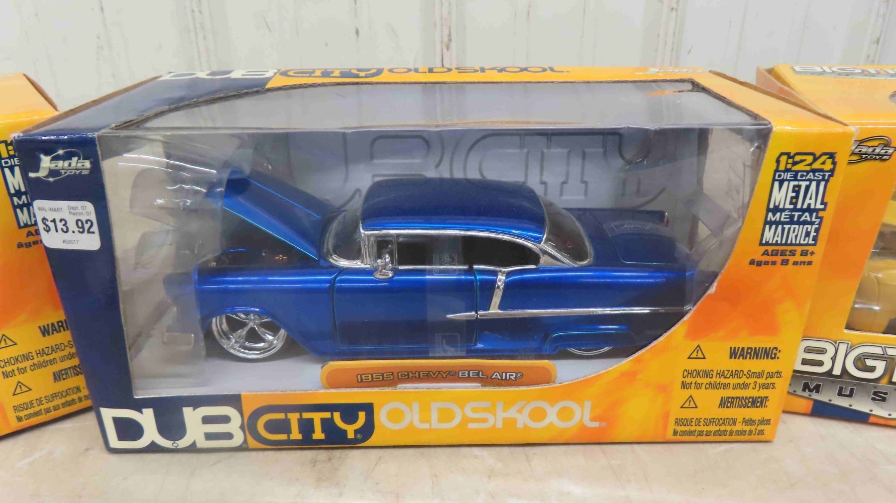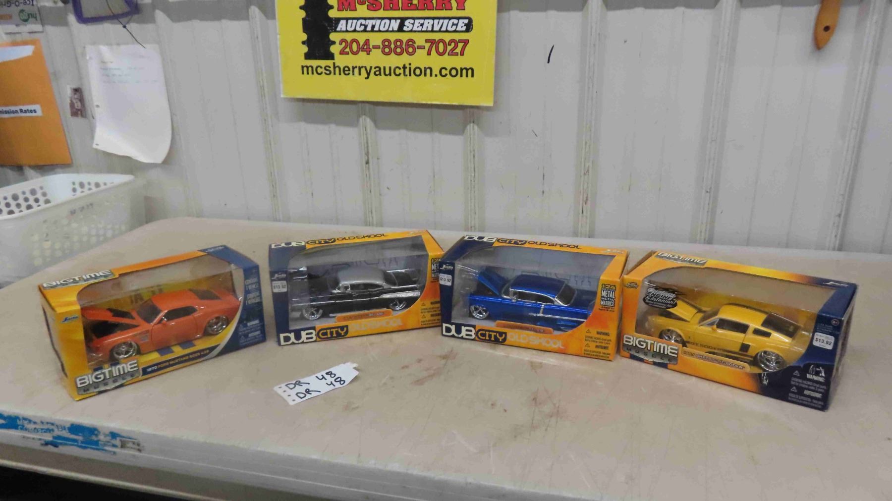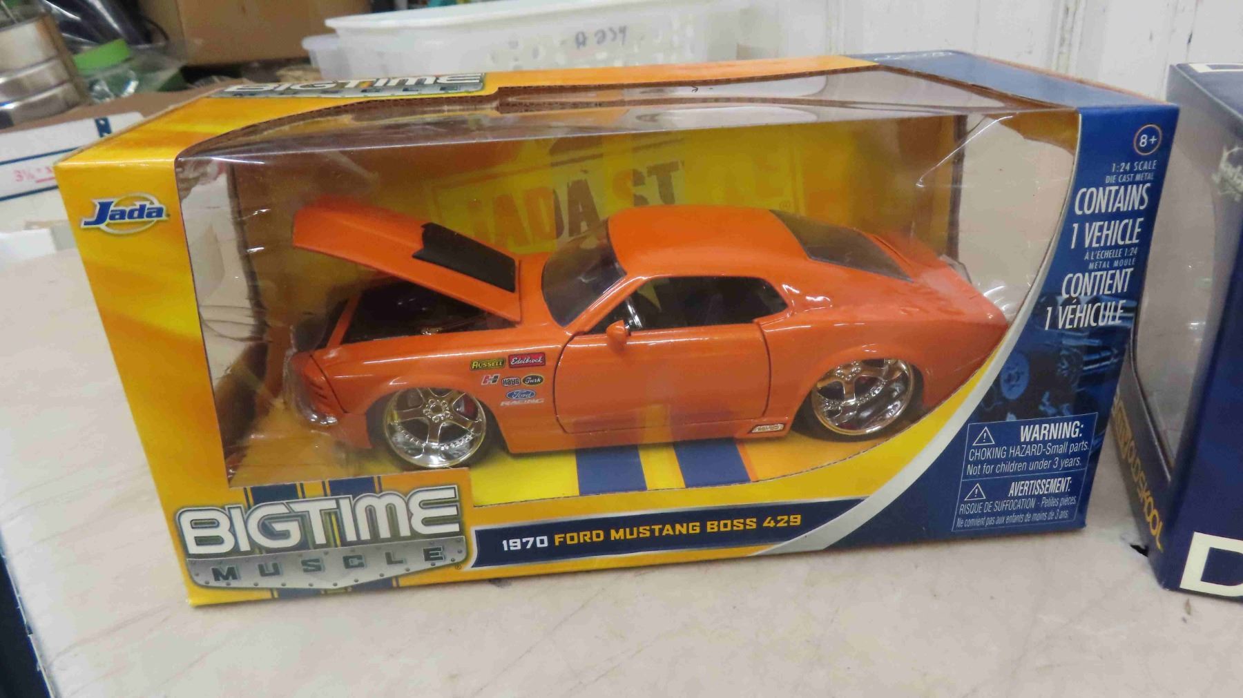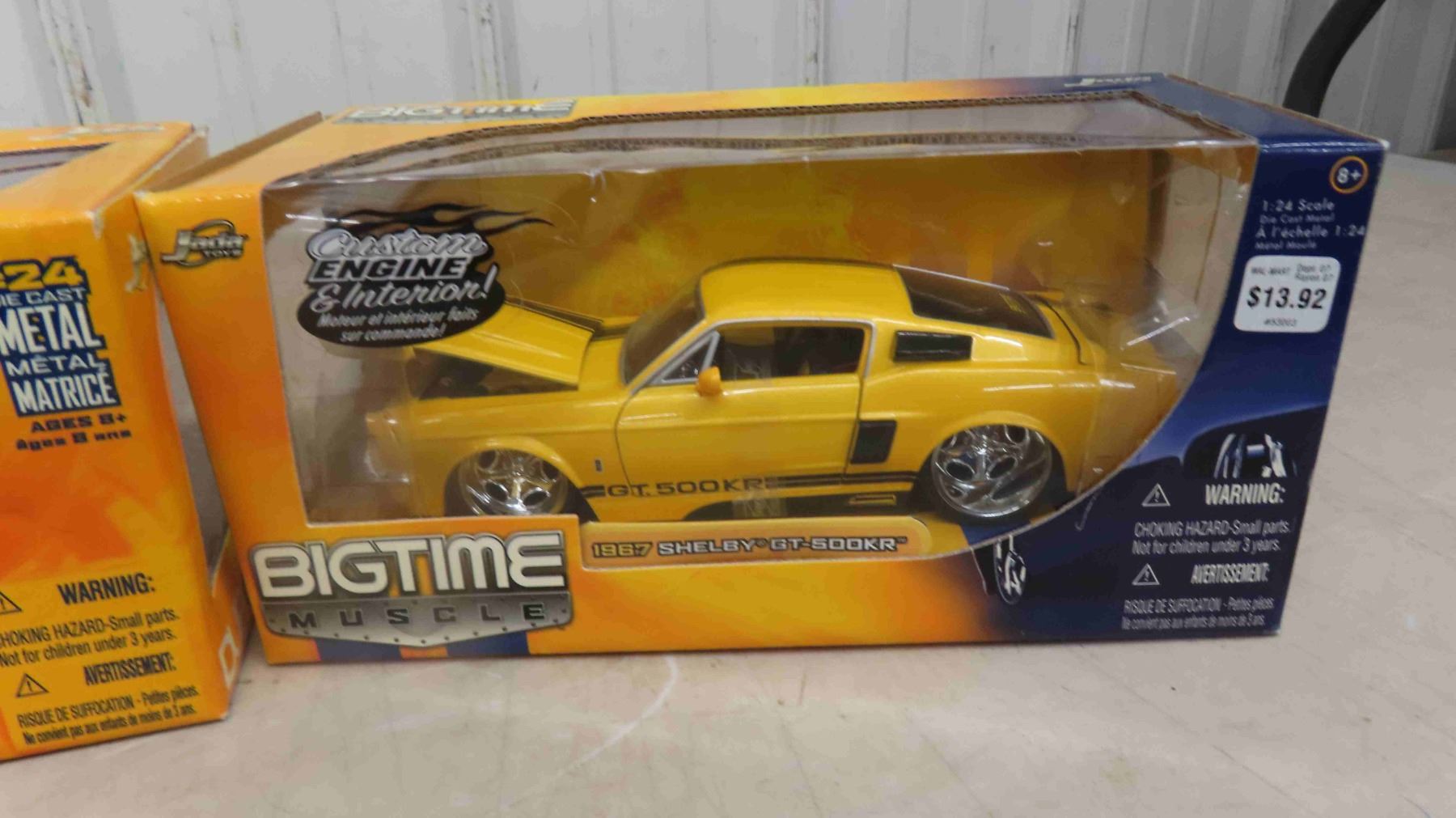 4 Diecast Cars with Boxes Scale 1:24 : 1970 Ford Mustang , 1957 Chevy Belair , 1955 Chevy Belair , 1967 Shelby GT500