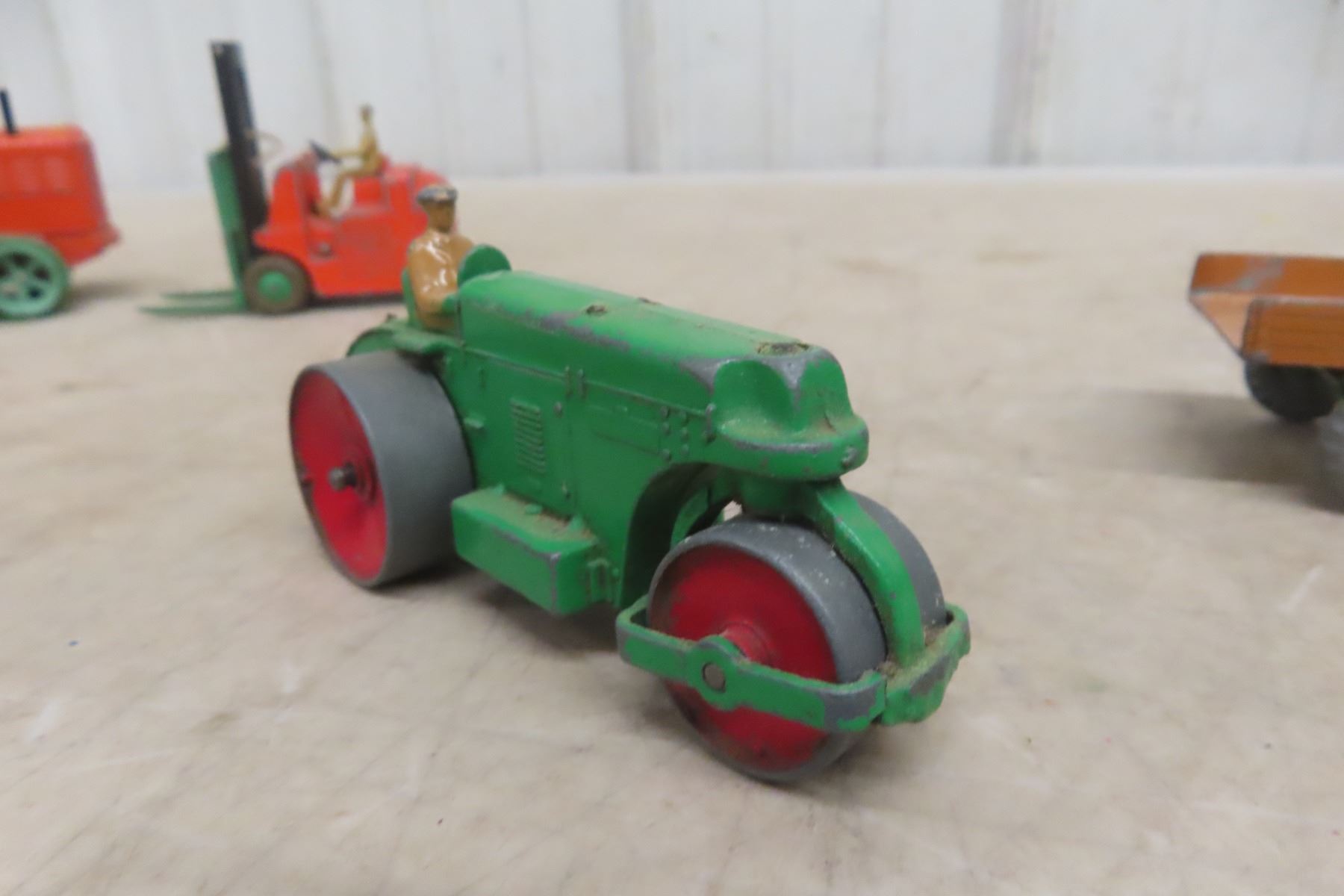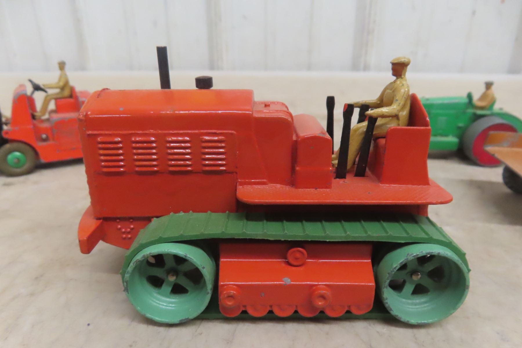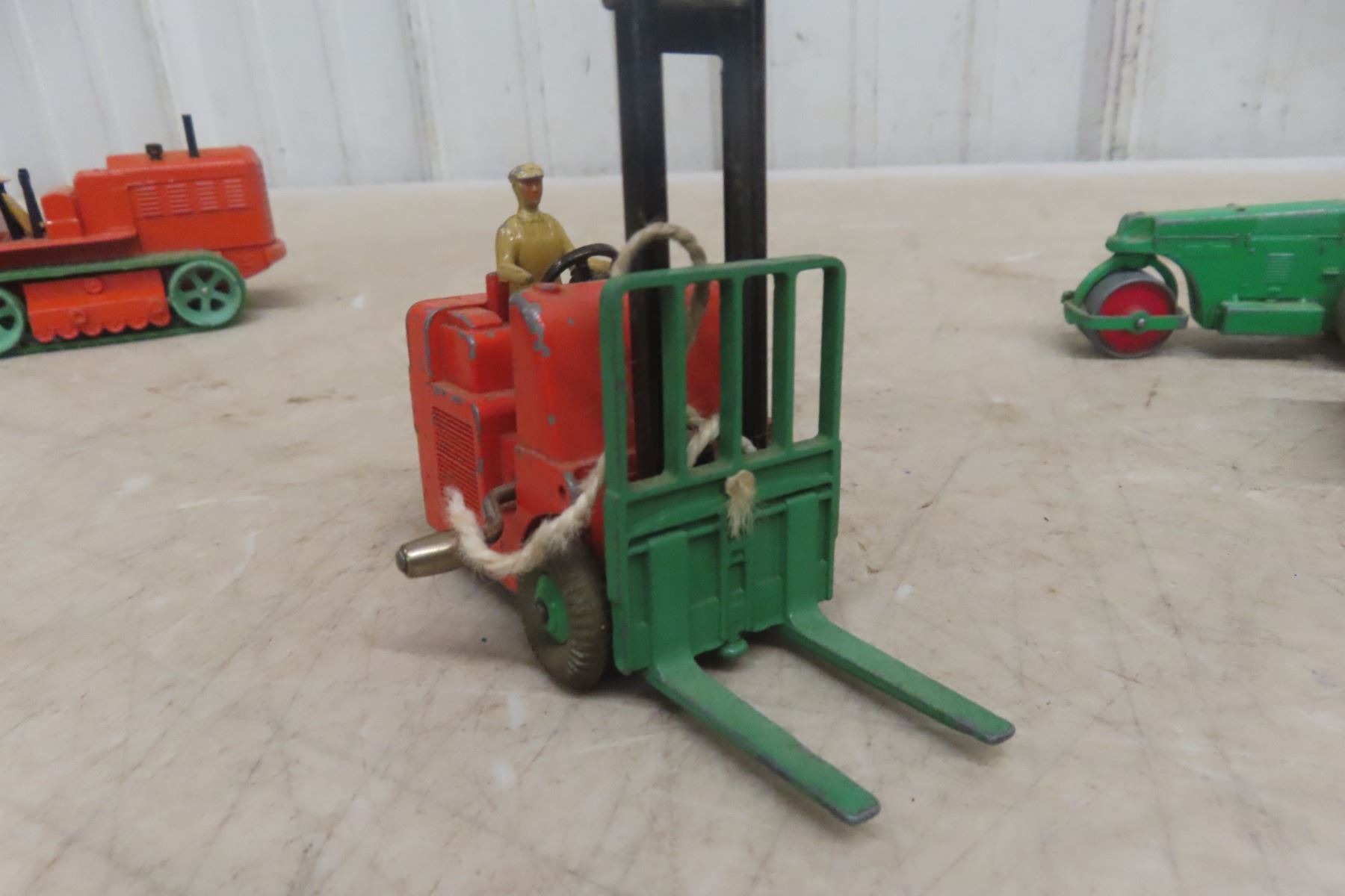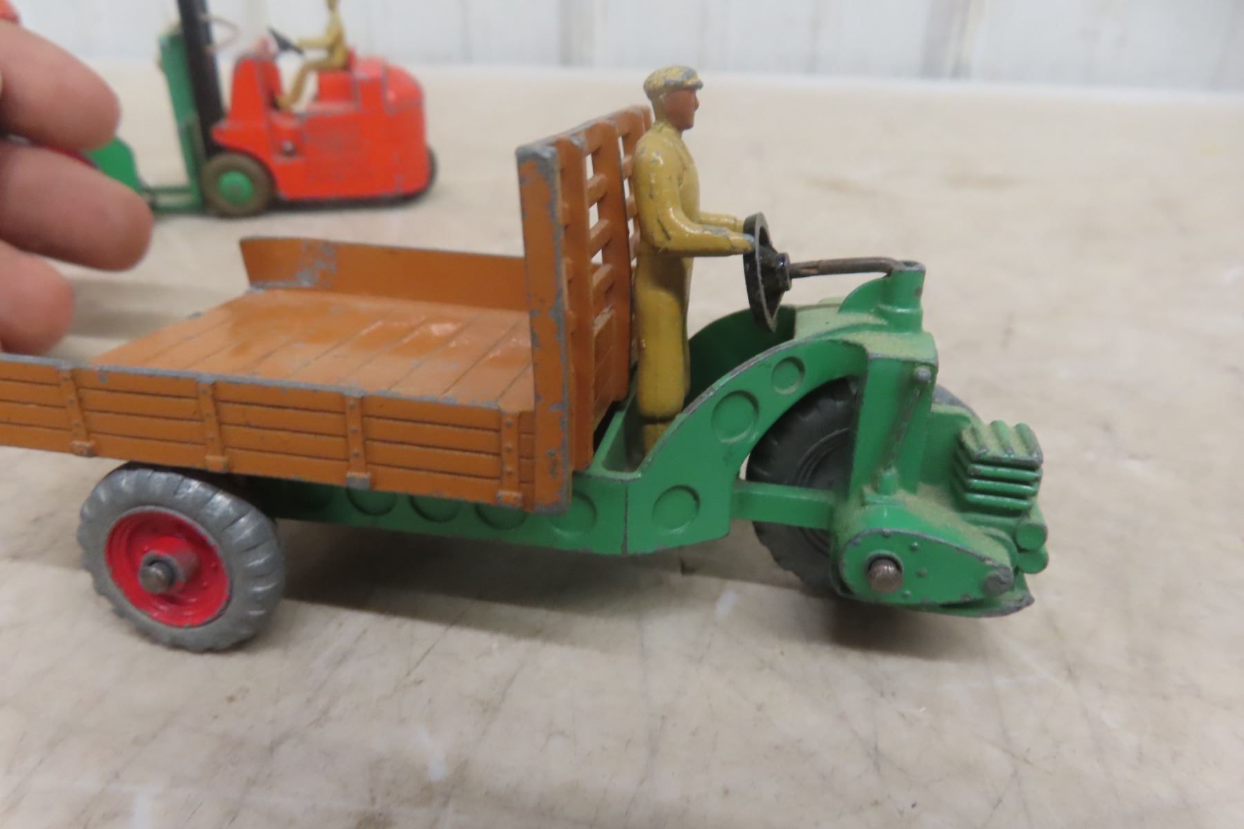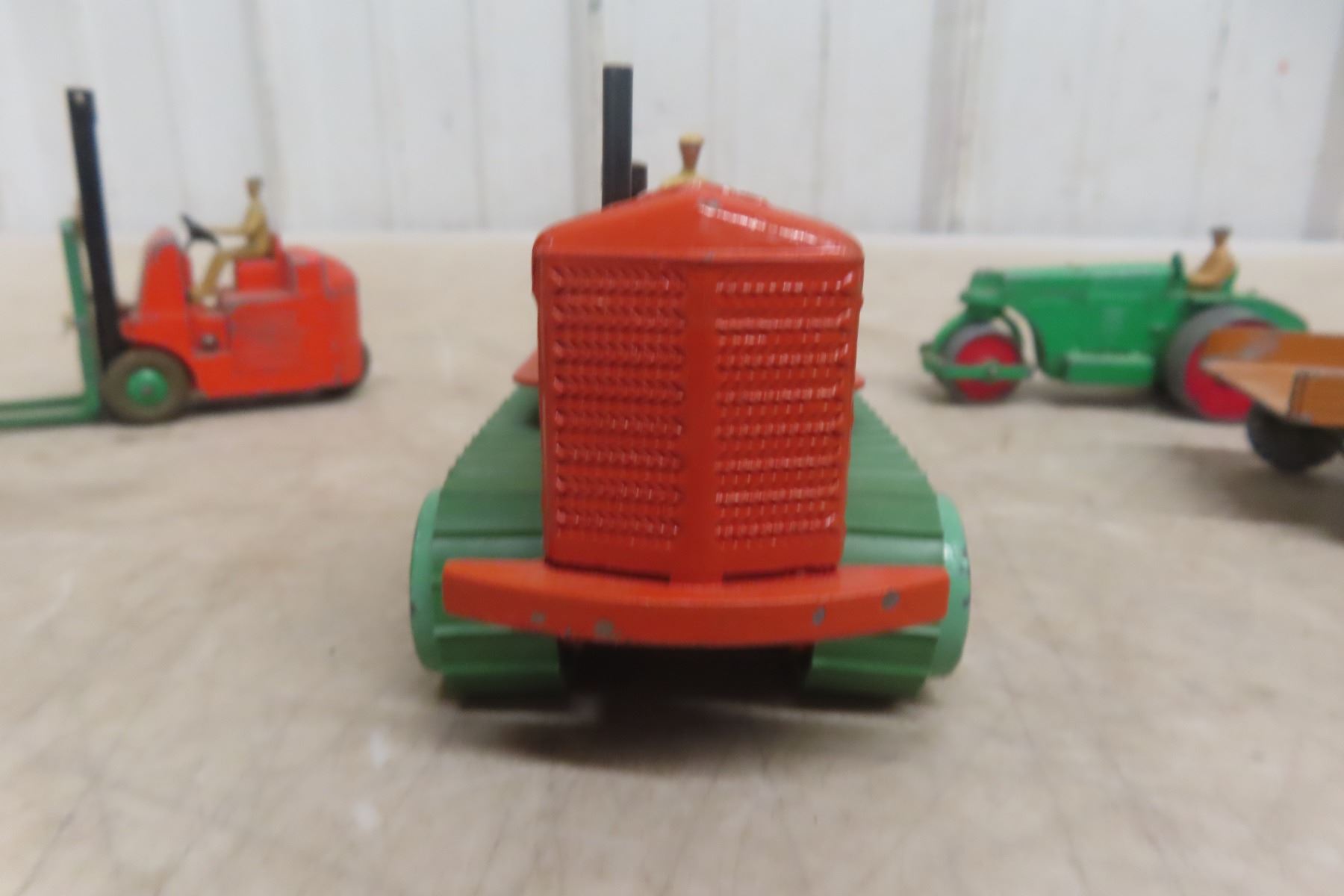 4 Dinky Toys: Heavy Crawler, Packer, Forklift and Motocart