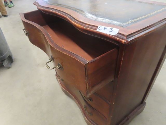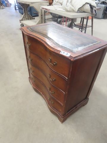 4 Drawer Night Stand with Leather Inlay + Serpentine Front