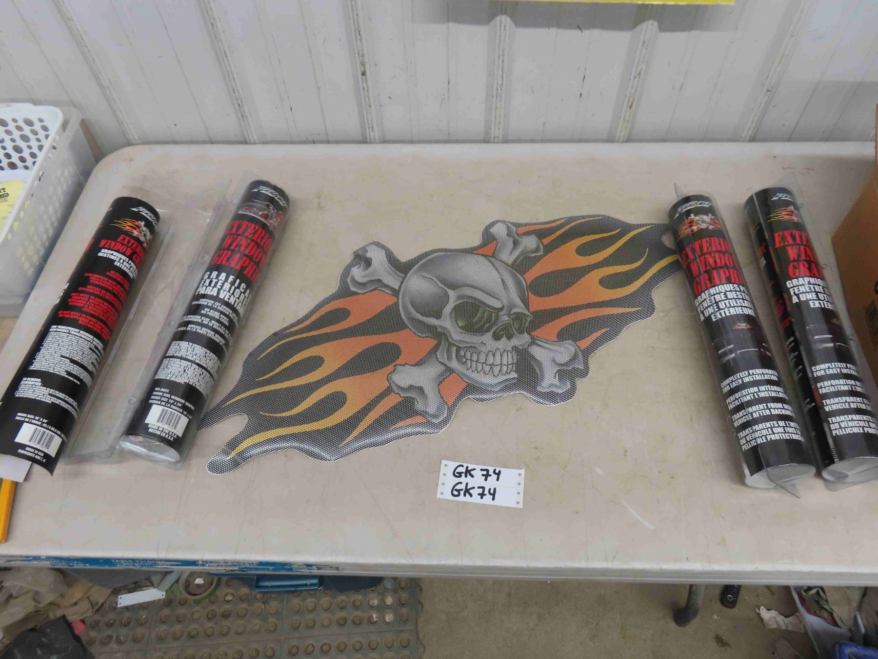4 Exterior Window Decal Graphics ; 3 Skull with Flames + 1 Other - New
