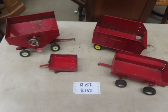 4 Farm Wagons- Pressed Tin - New Holland on 1, 1 Marked ERTL