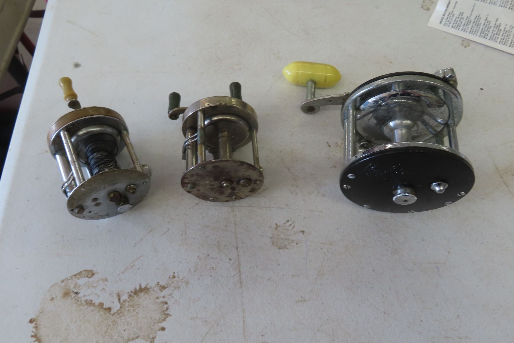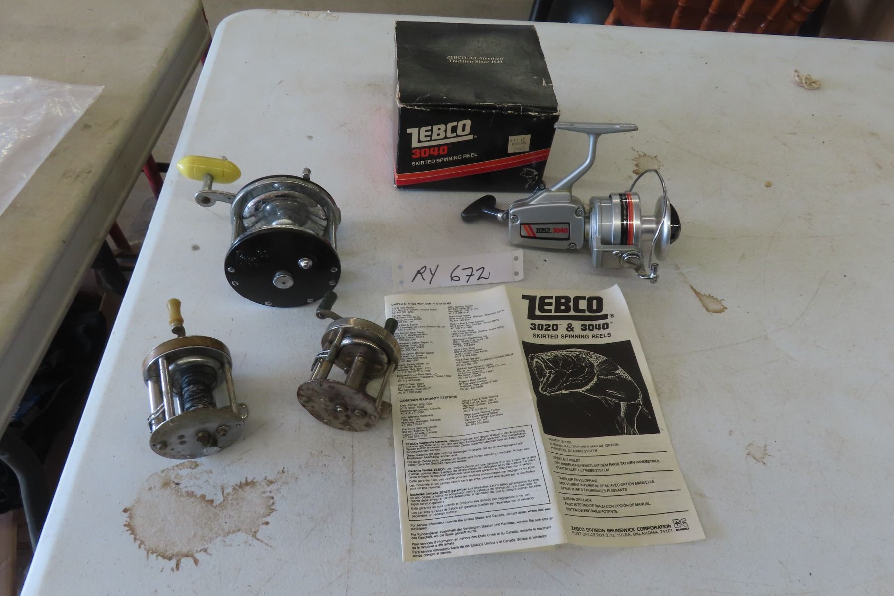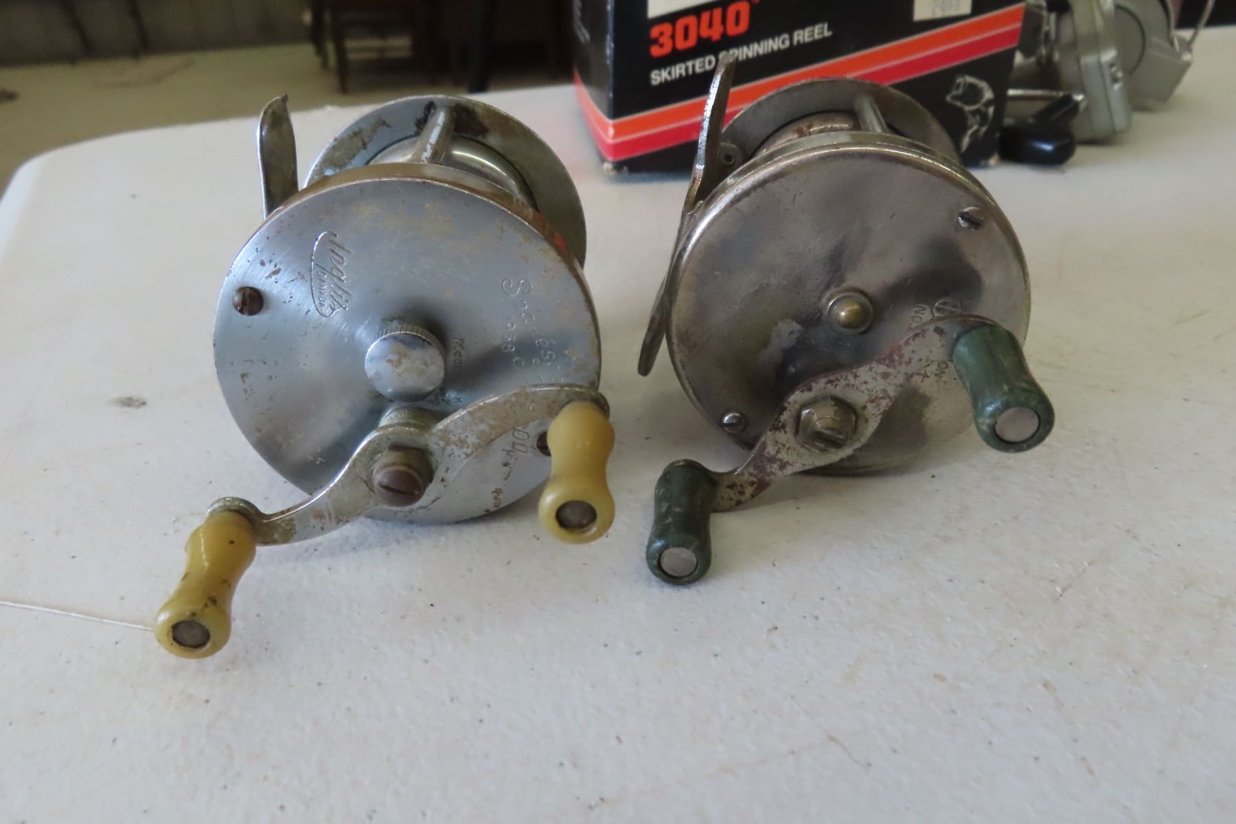 4 Fishing Reels, Inglis Shakespeare Bronson Comet, Penn Long Beach and Zebco 3040 Skirted Spinning Reel Like New