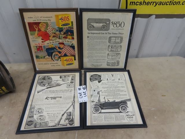4 Framed Adv Remington, SOS, & Maxwell