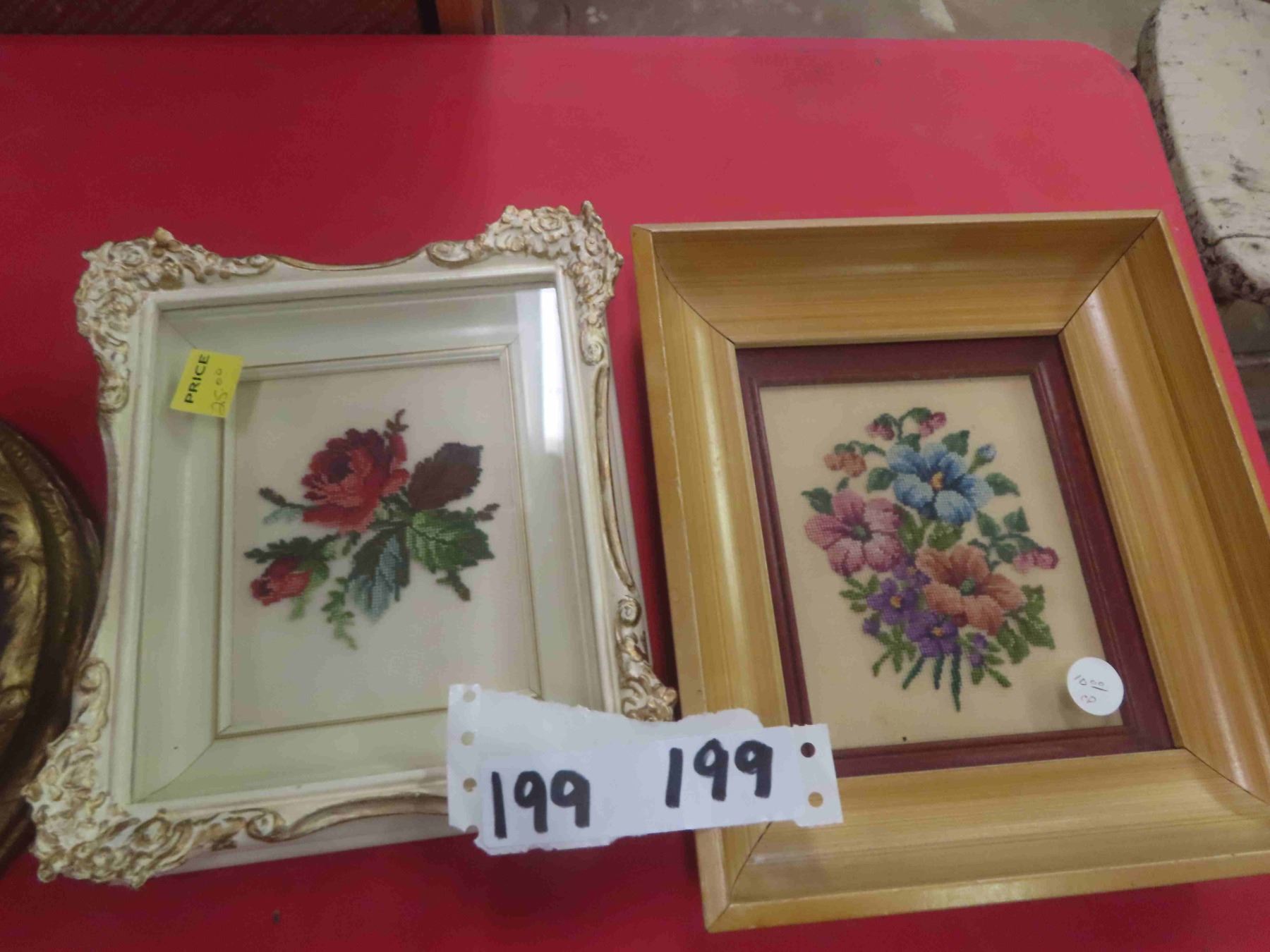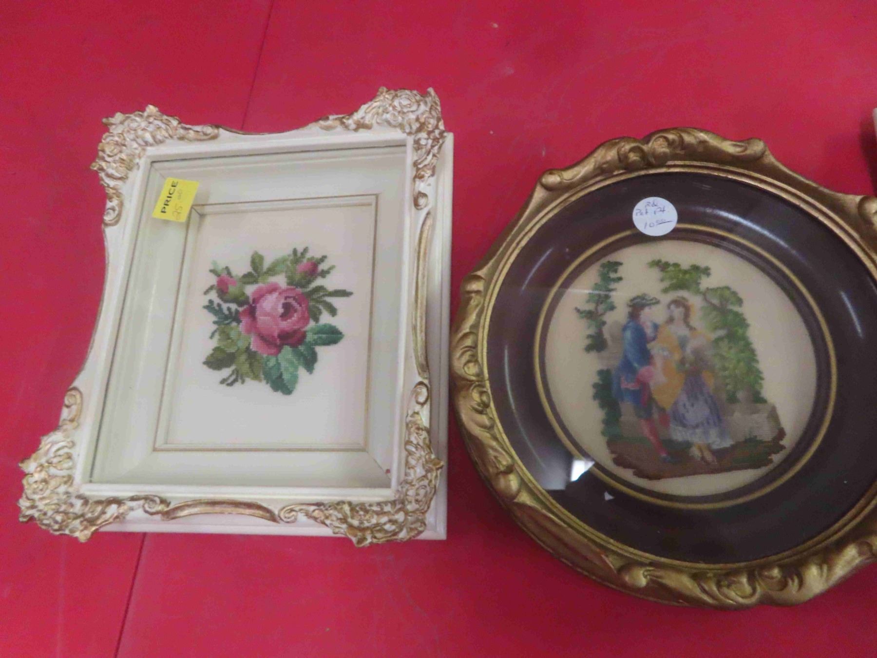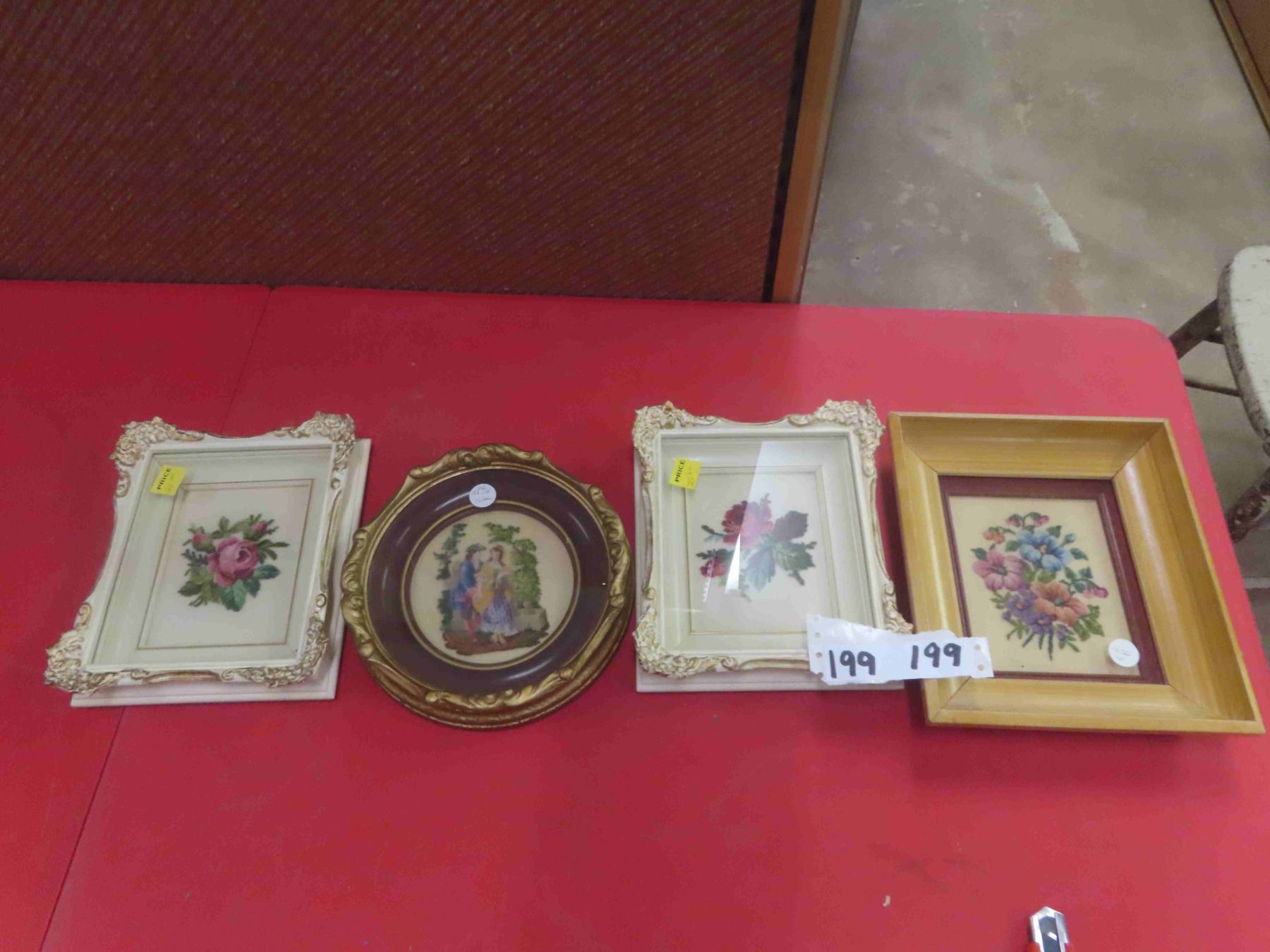 4 Framed Needle Point Pictures , Largest is 9'' x 8''