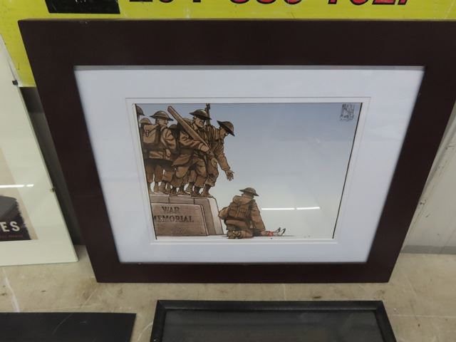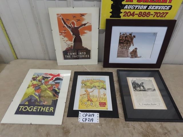 4 Framed Prints- War Time Themed- 1 Matted, Disney Silly Symphonies - Largest 12" x 16"