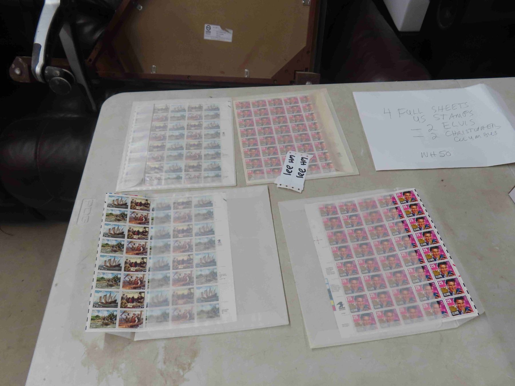 4 Full Sheets of US Stamps - 2 Elvis , 2 Christopher Columbus