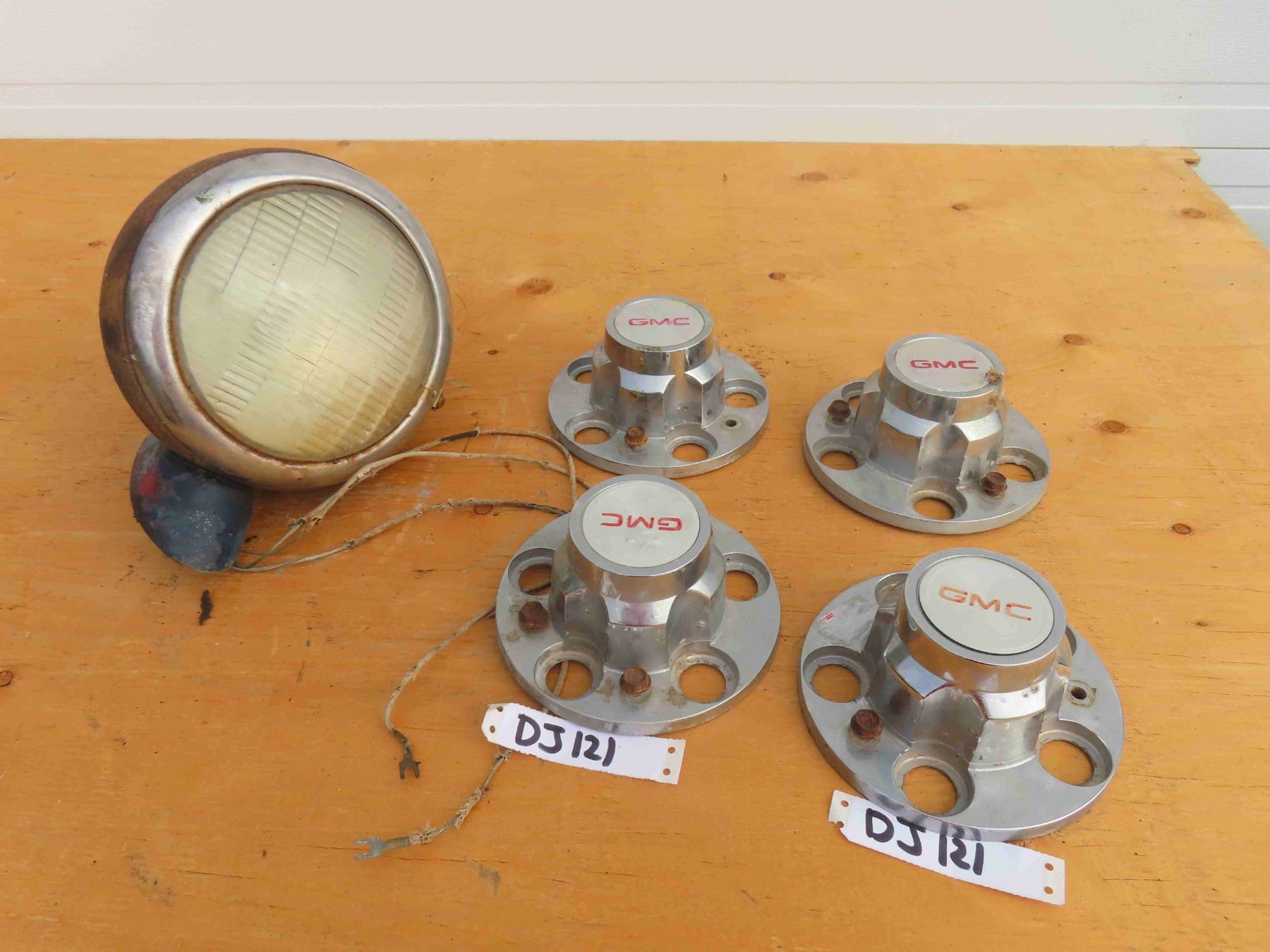 4 GMC Center Caps , Vintage Auto Head Lamps